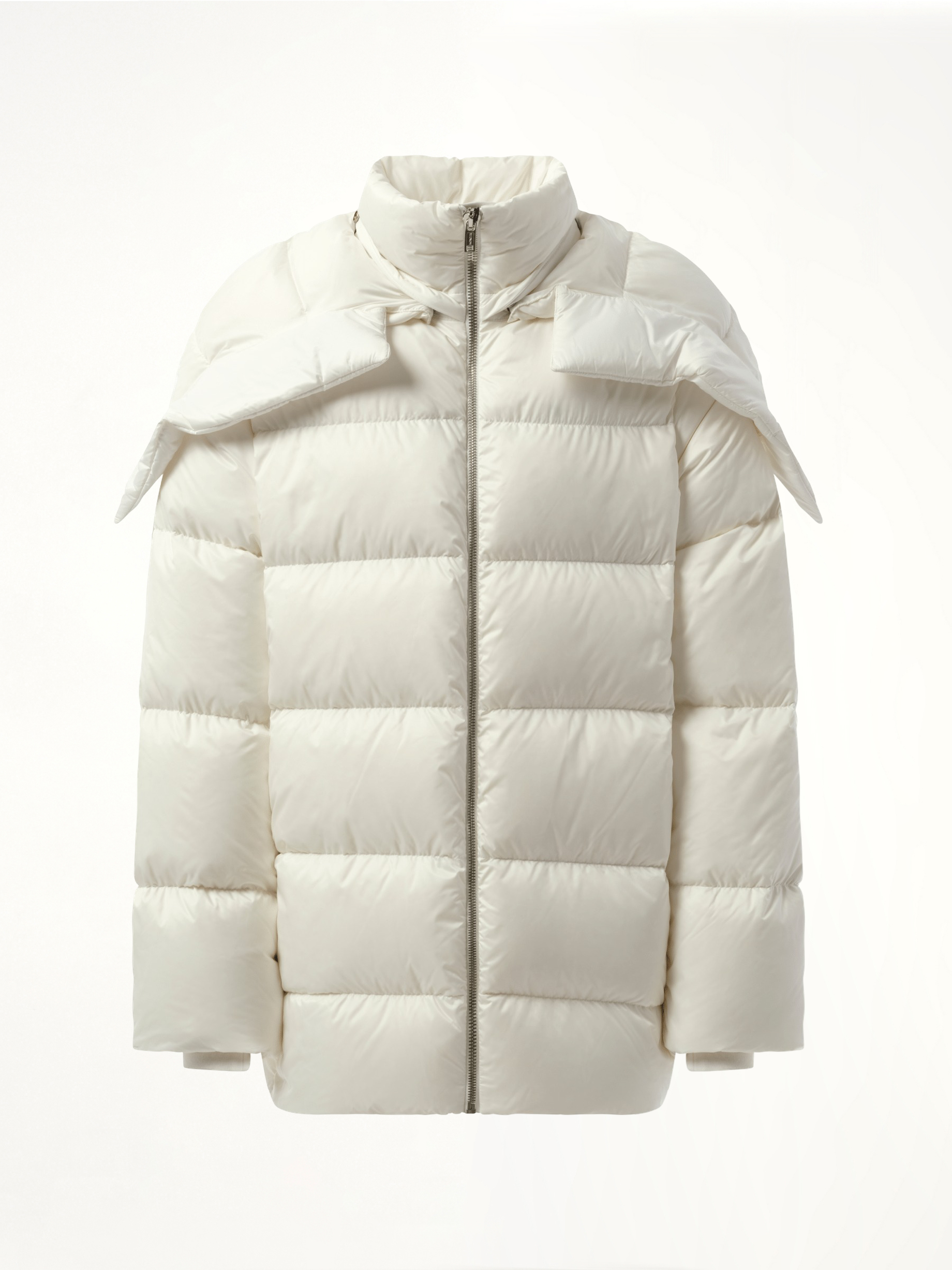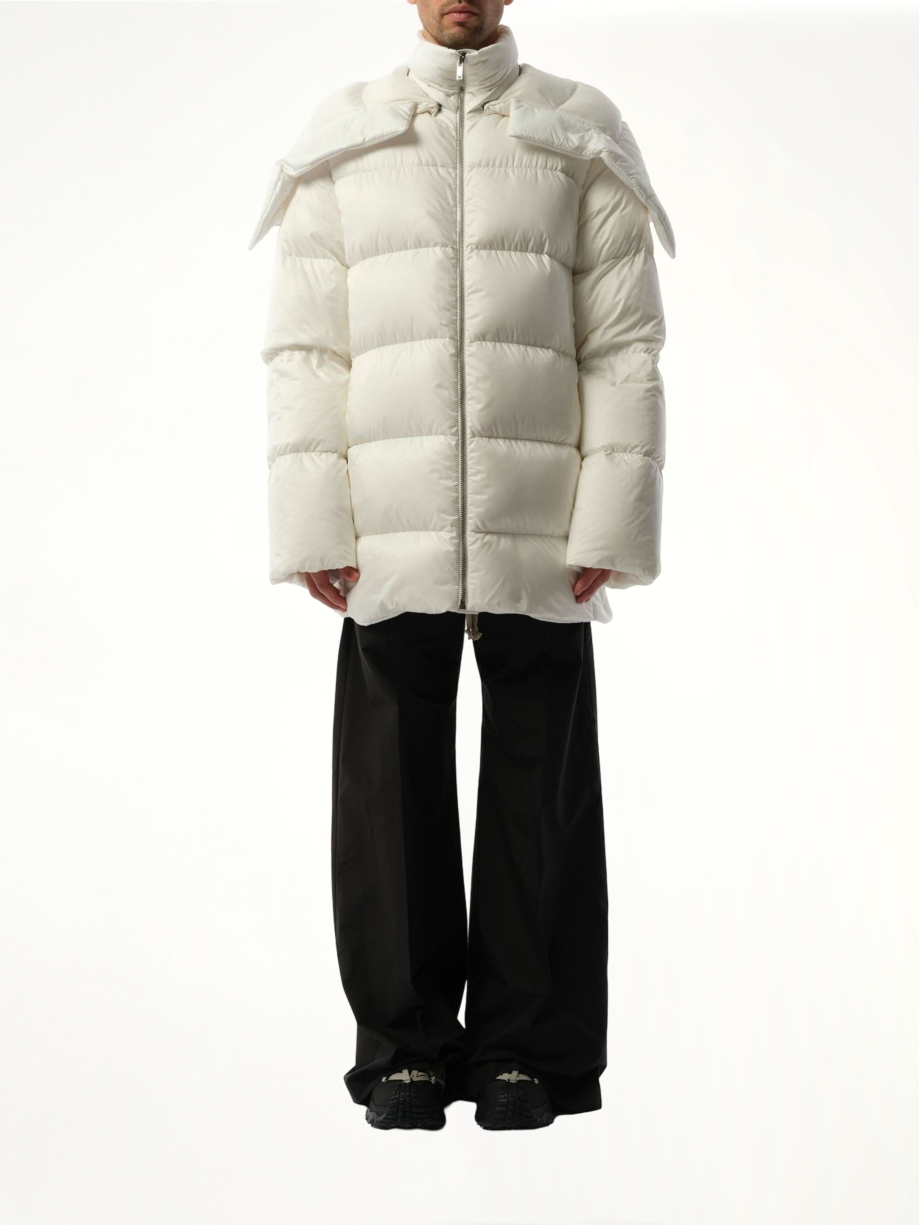 Rick Owens x Moncler Hooded Cyclopic Coat in Milk