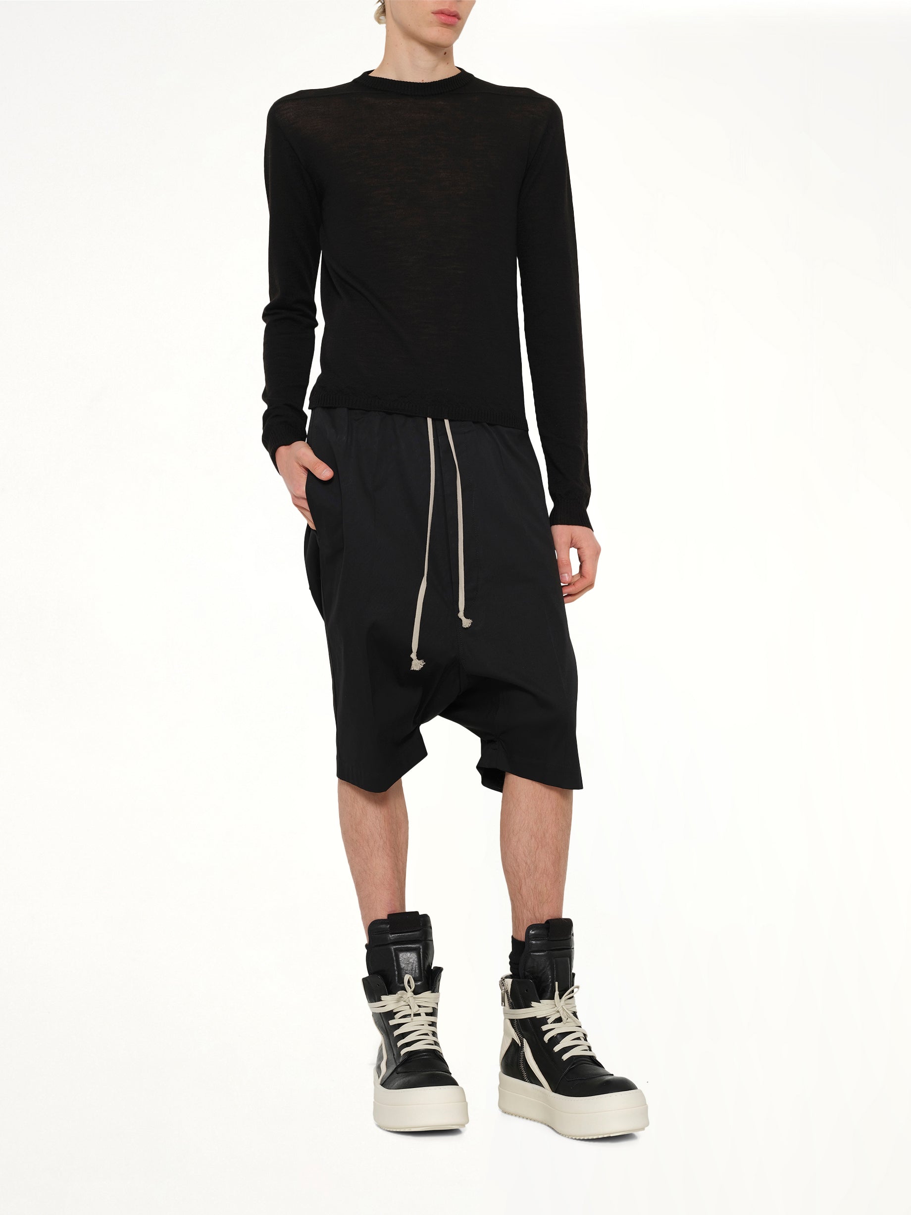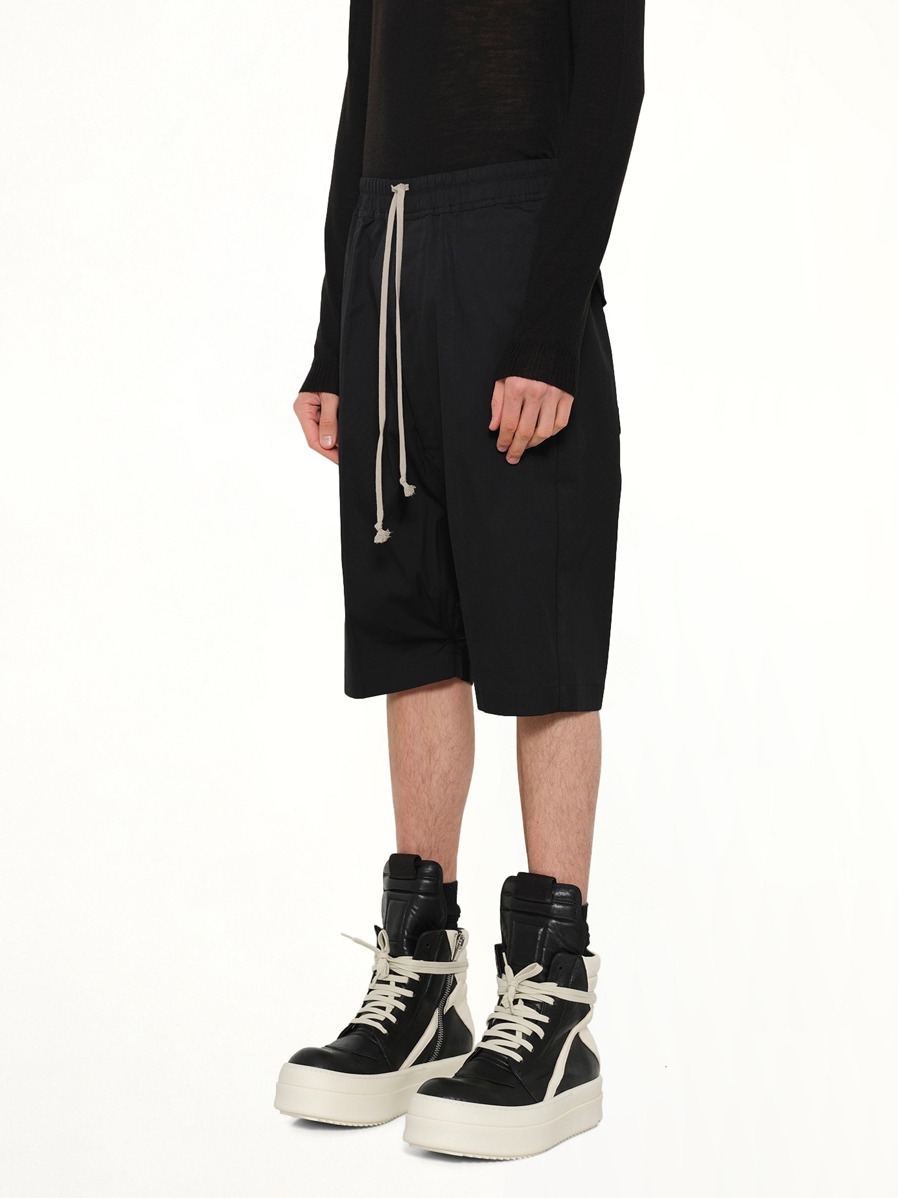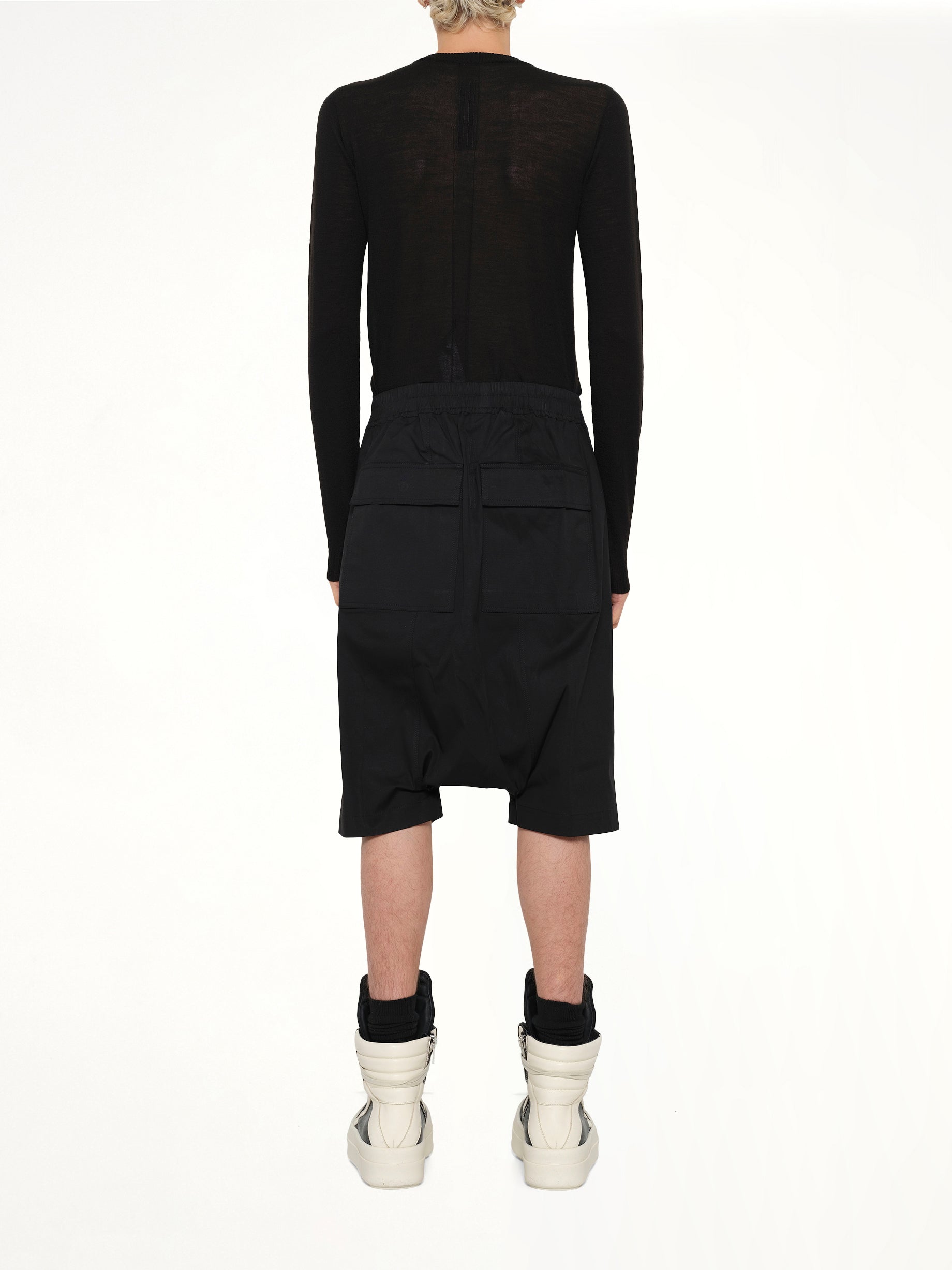 Rick Owens's Rick S Pods in Black is a distinctive piece that embodies the designer's avant-garde aesthetic. These shorts offer a unique silhouette, combining comfort with a bold fashion statement.