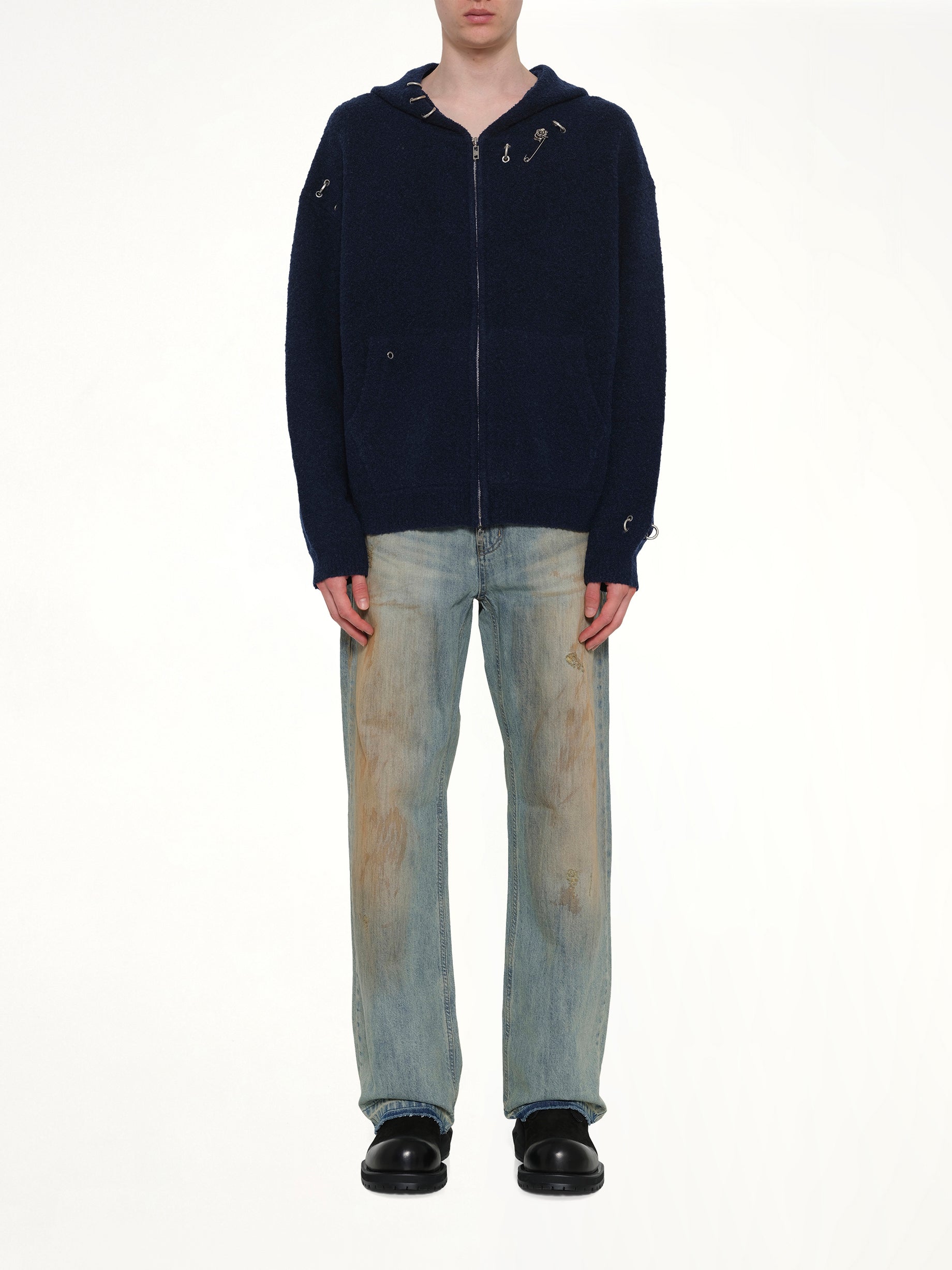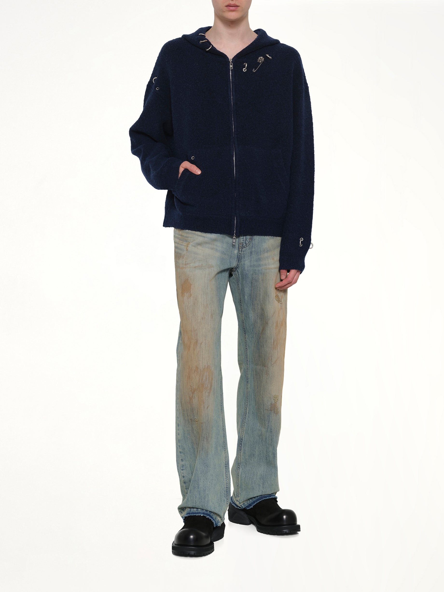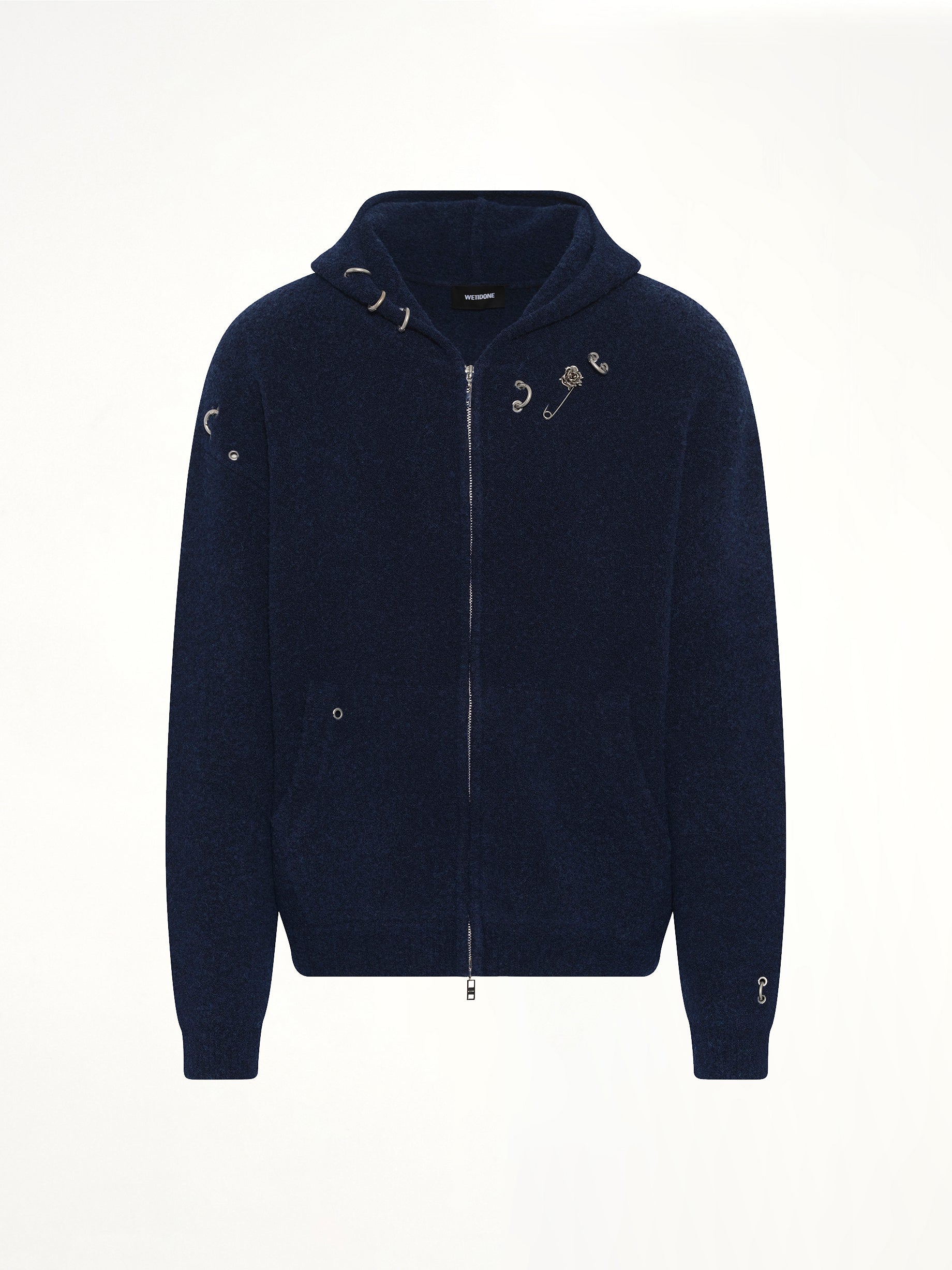 We11done's Rose with Thorns Zip-Up Hoodie in Dark Navy is a stylish and comfortable addition to any wardrobe. Featuring a unique design, this hoodie combines modern aesthetics with classic comfort.