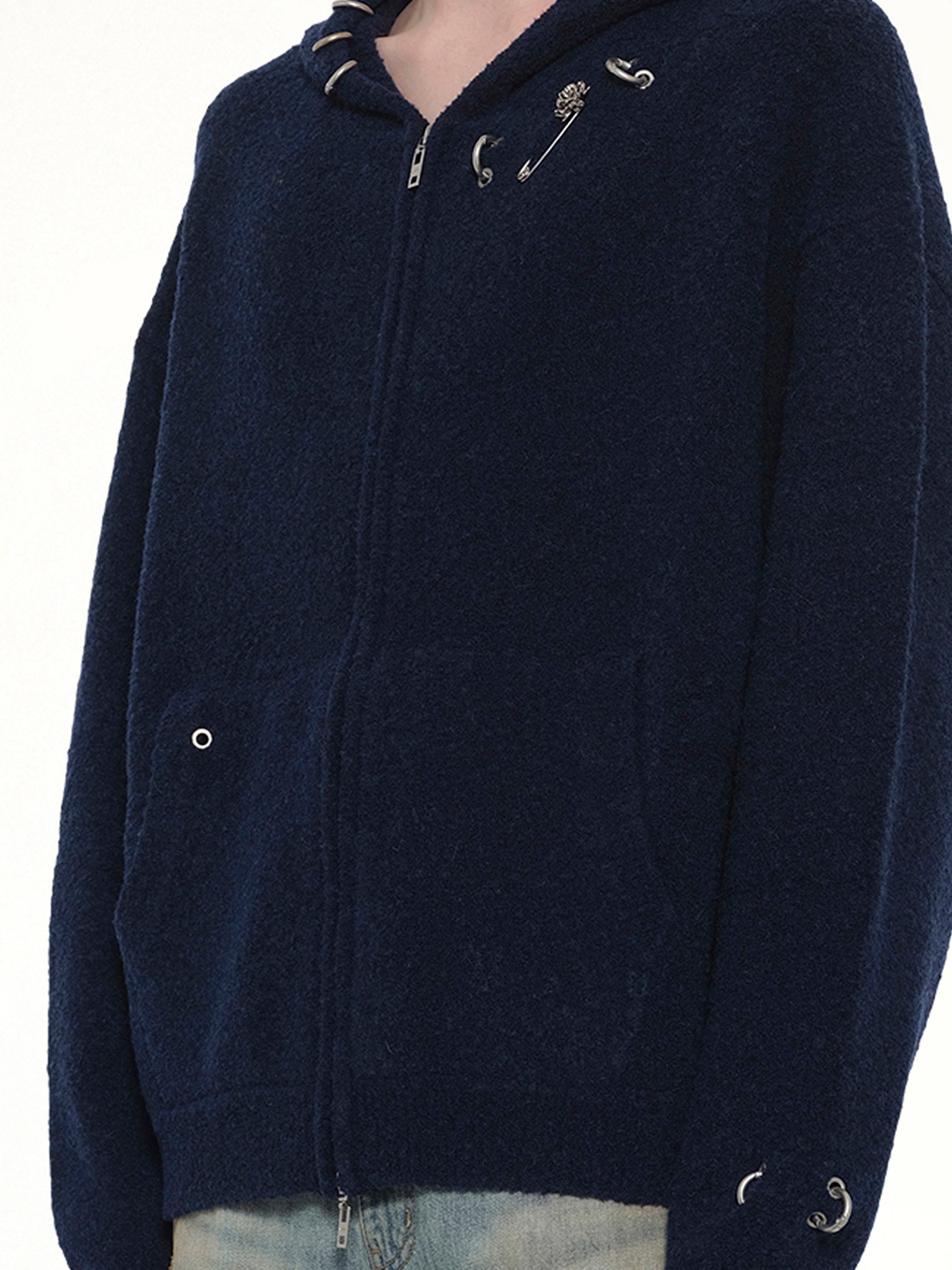 Rose with Thorns Zip-Up Hoodie in Dark Navy