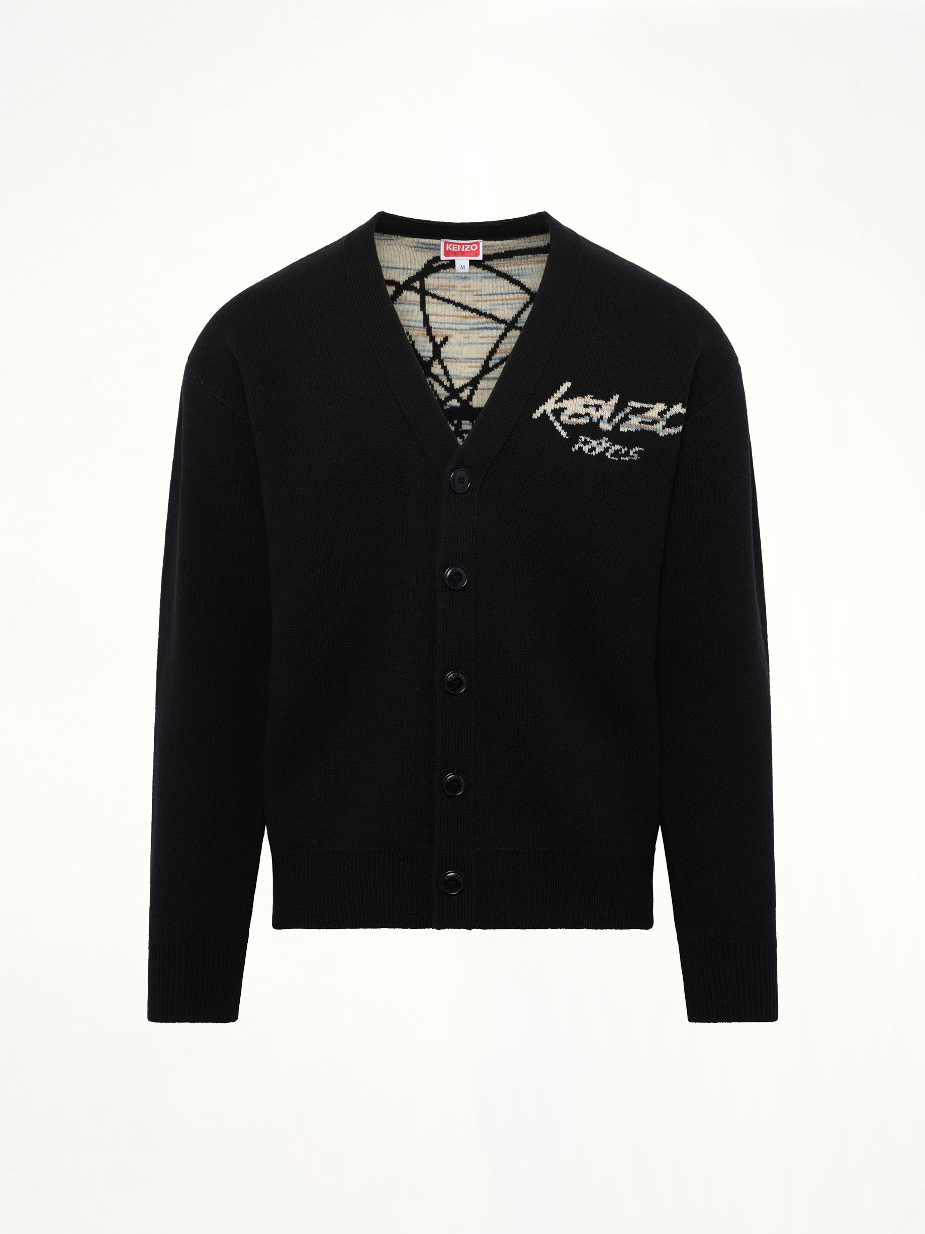Kenzo's Rws Kenzo Futura Cardigan in Black is a stylish and versatile addition to any wardrobe. This cardigan combines modern design with classic elements, making it perfect for both casual and formal occasions.