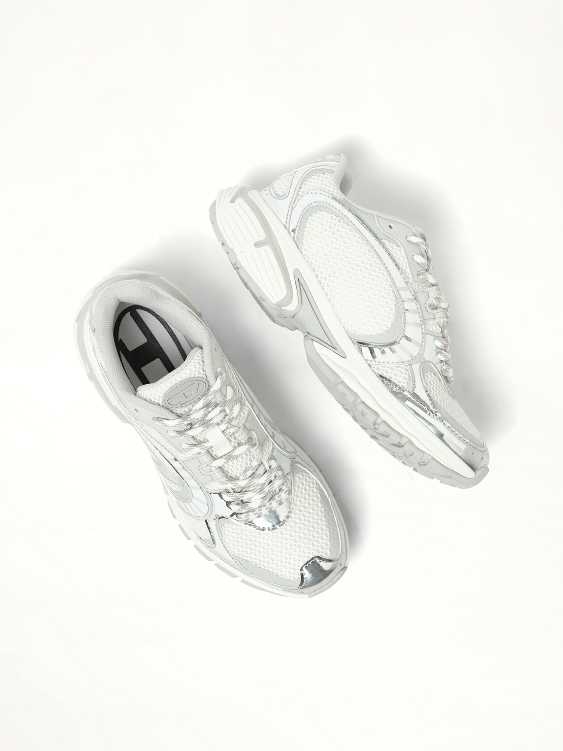 - Features a sleek white and silver colorway for a contemporary look.