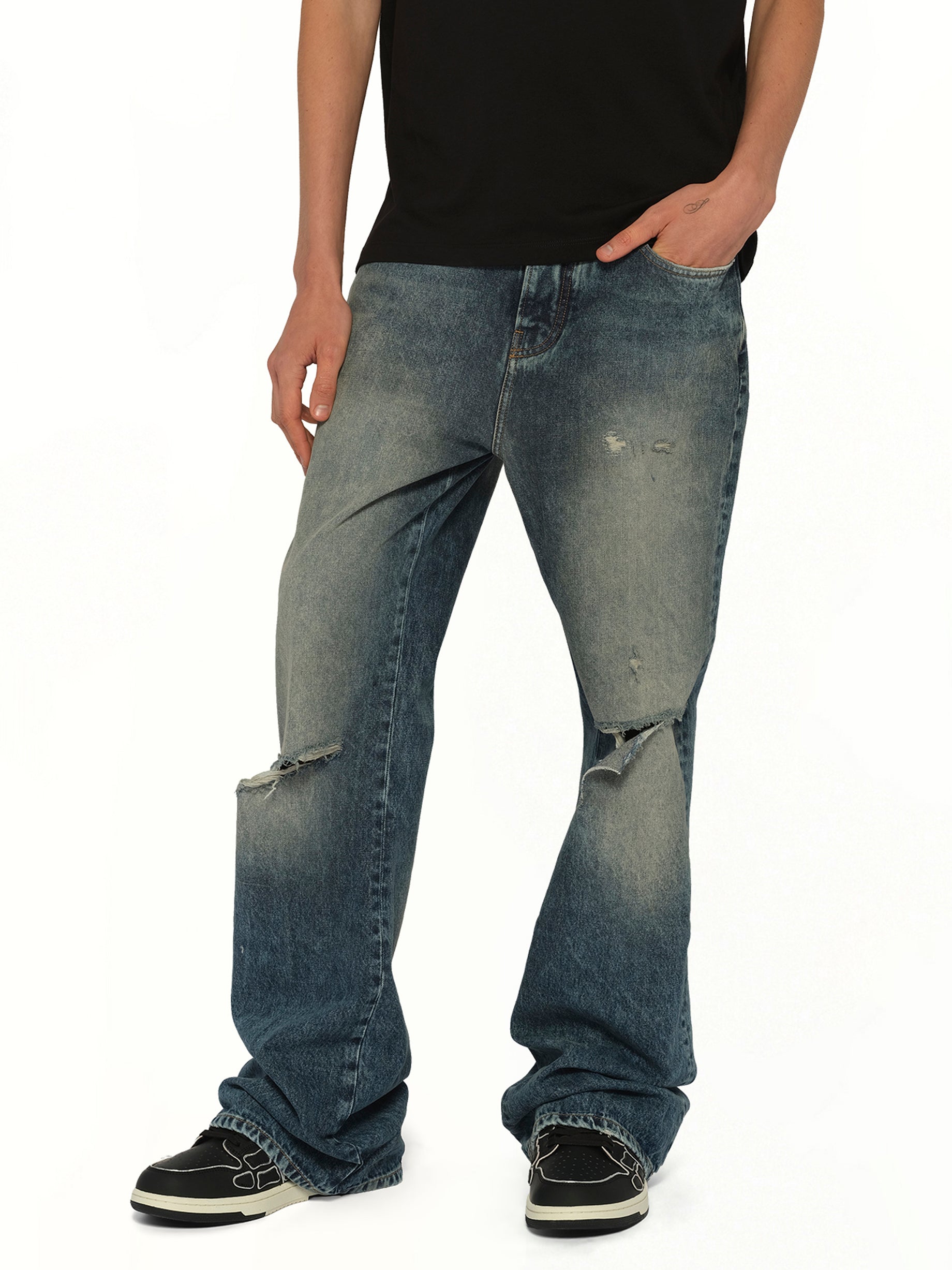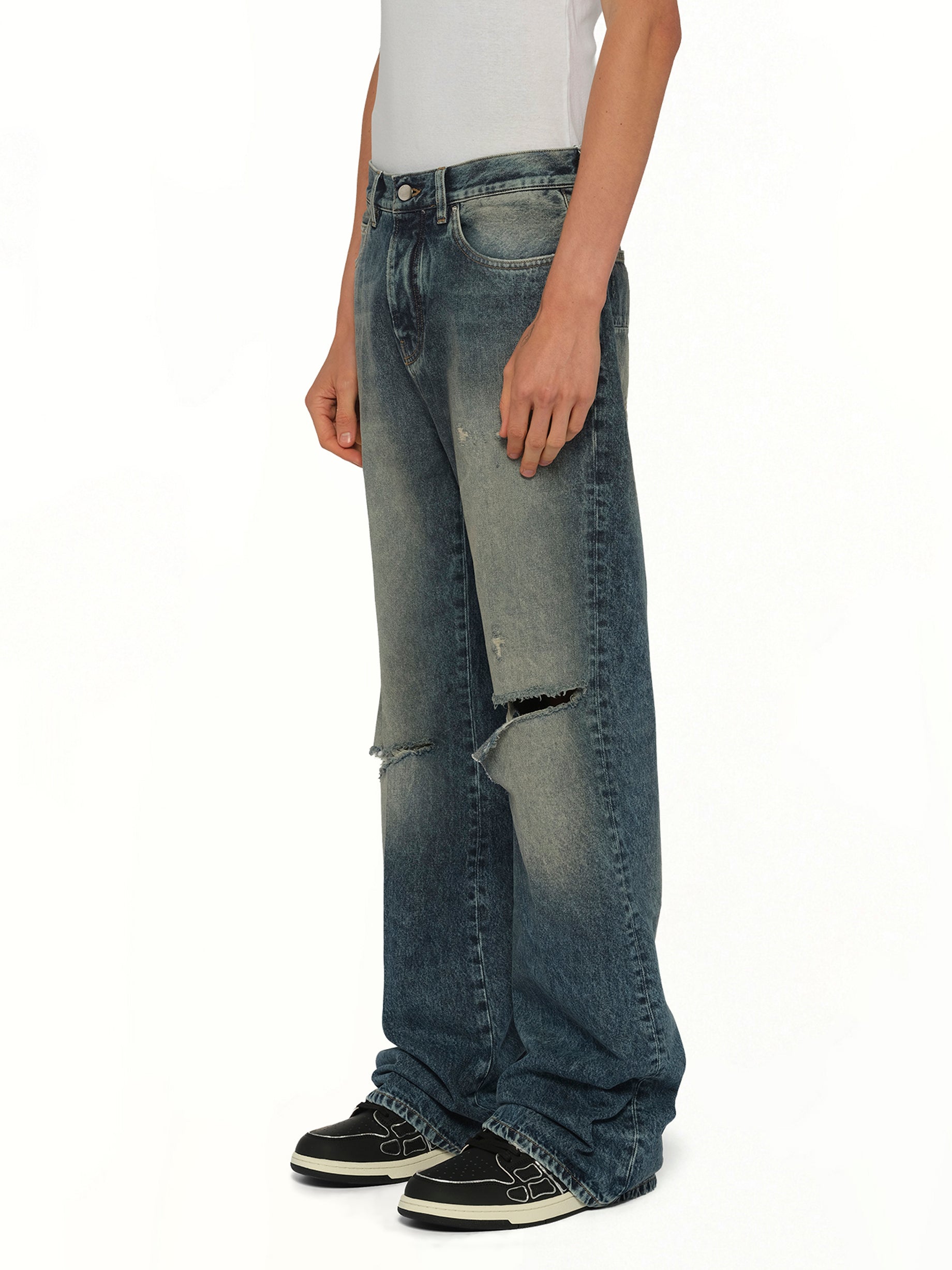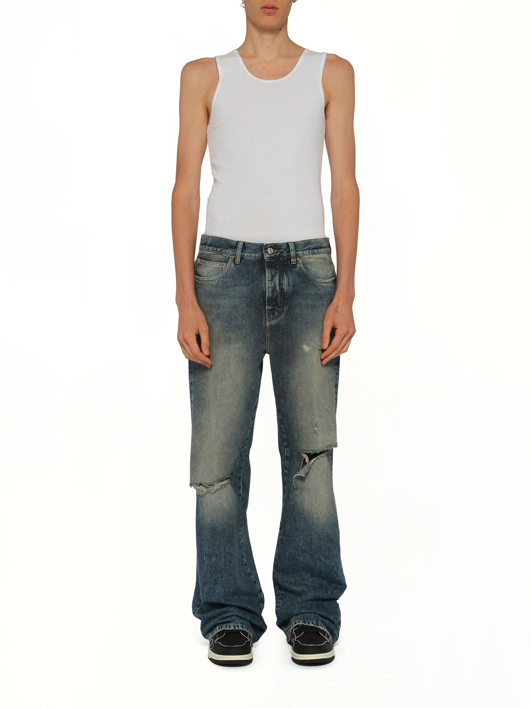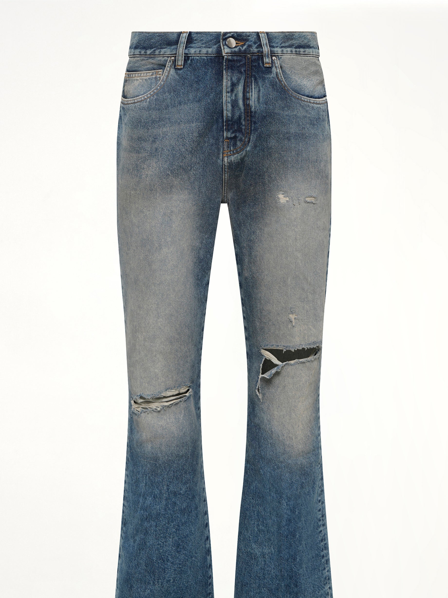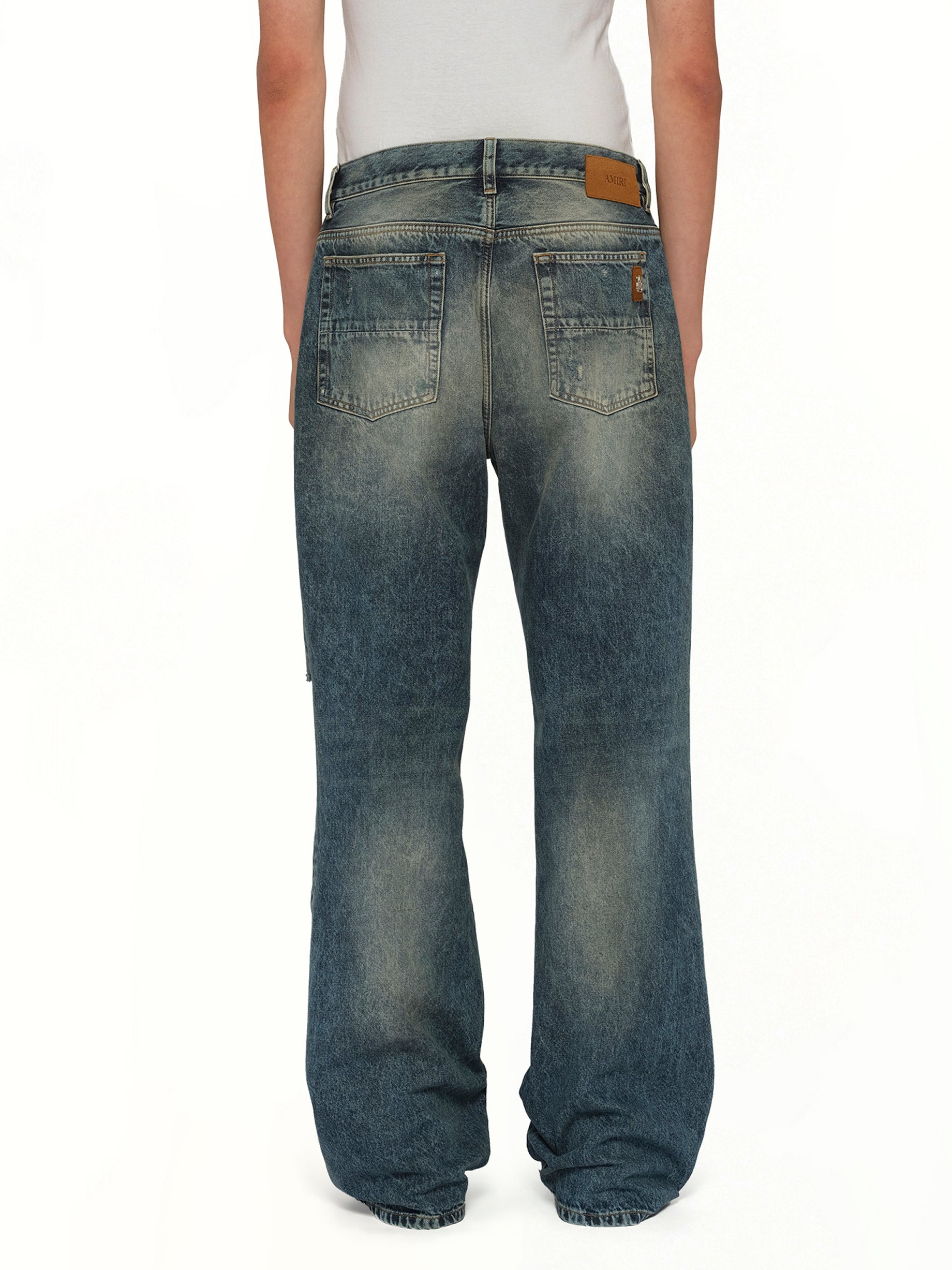 Amiri's Slashed Boot Cut Jean in Denim Lapis is a bold statement piece that combines edgy design with classic denim style. These jeans feature a unique slashed detailing that adds a modern twist to the traditional boot cut silhouette.