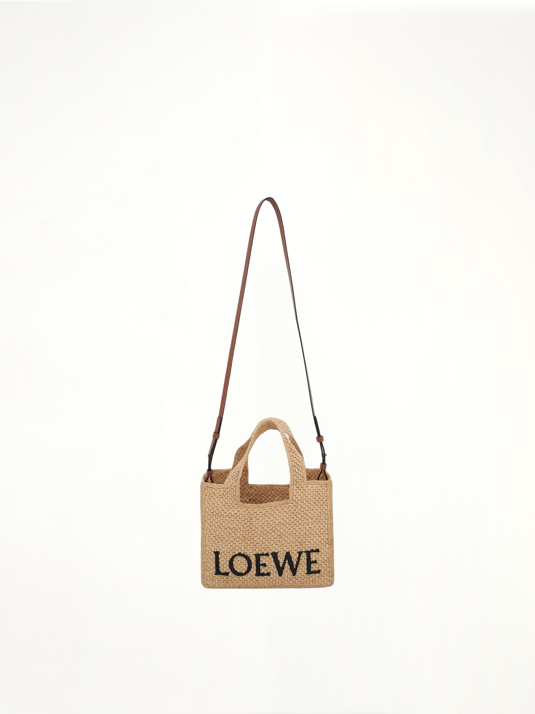 Small Logo Font Tote Bag in Raffia and Calfskin in Natural
