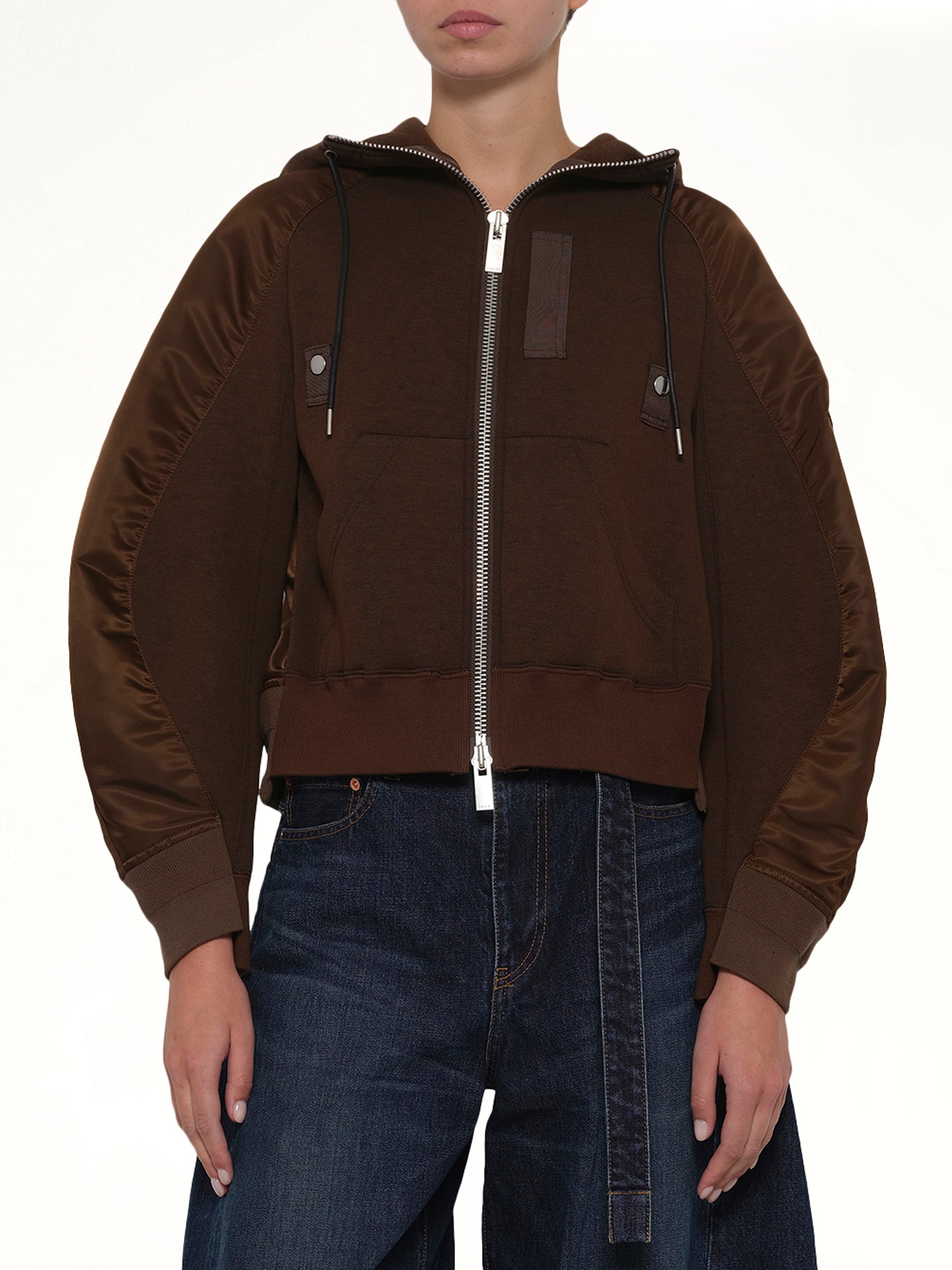 Sacai's Sponge Sweat Hoodie in Brown is a stylish and versatile piece that combines comfort with a modern aesthetic. Perfect for layering, this hoodie offers a unique design that stands out in any wardrobe.