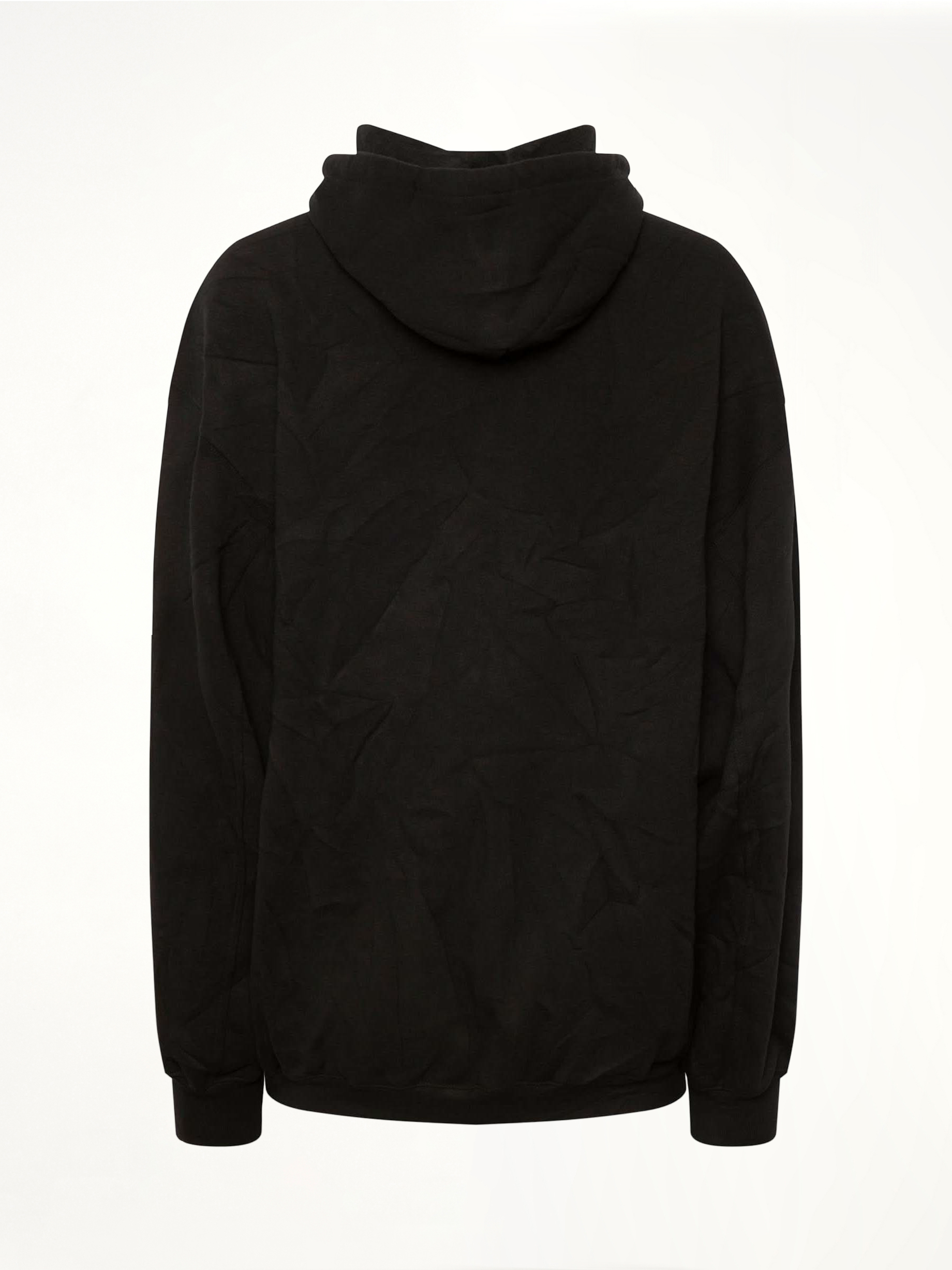 Long sleeve zip hoodie in black cotton with sponsor logo printed on the chest