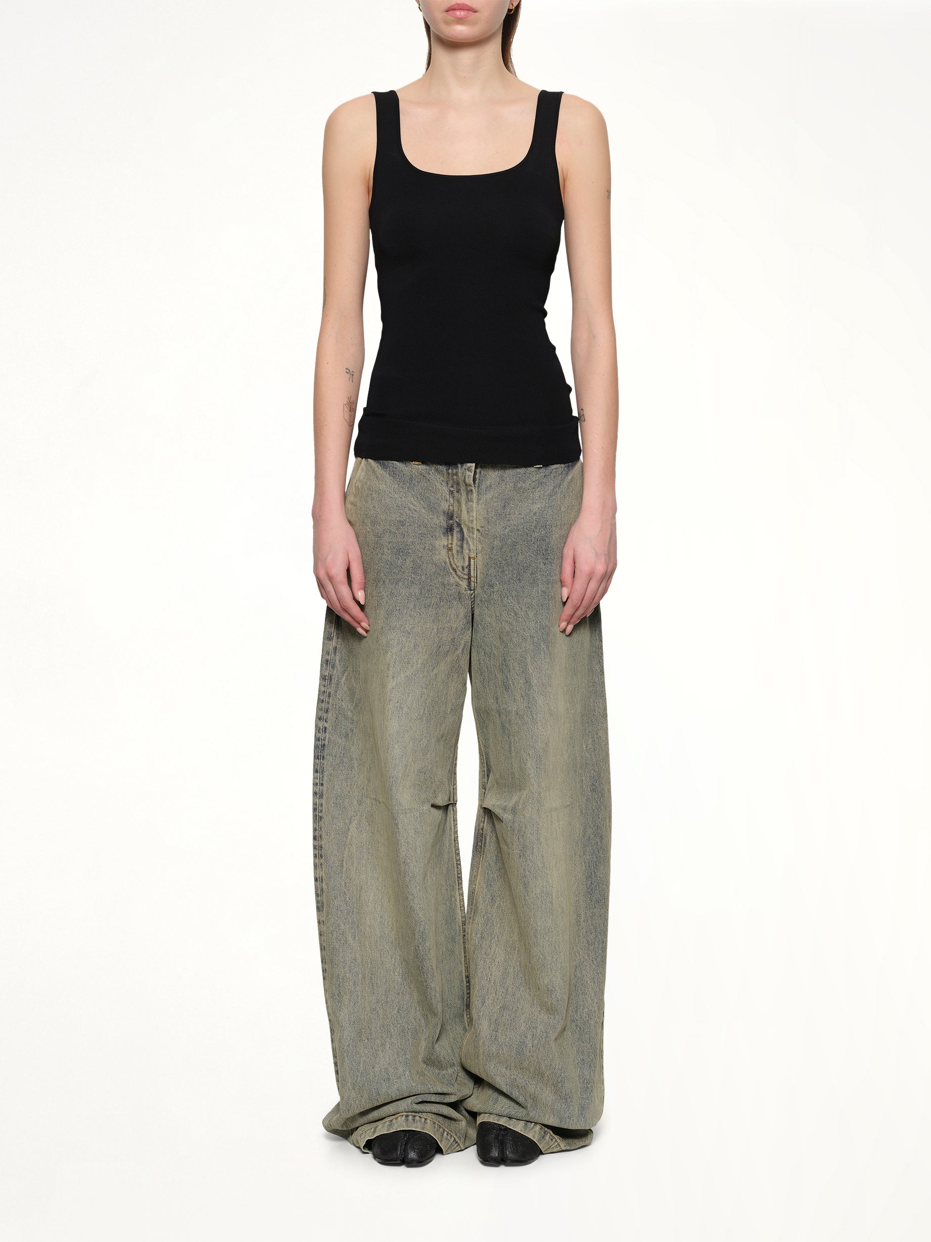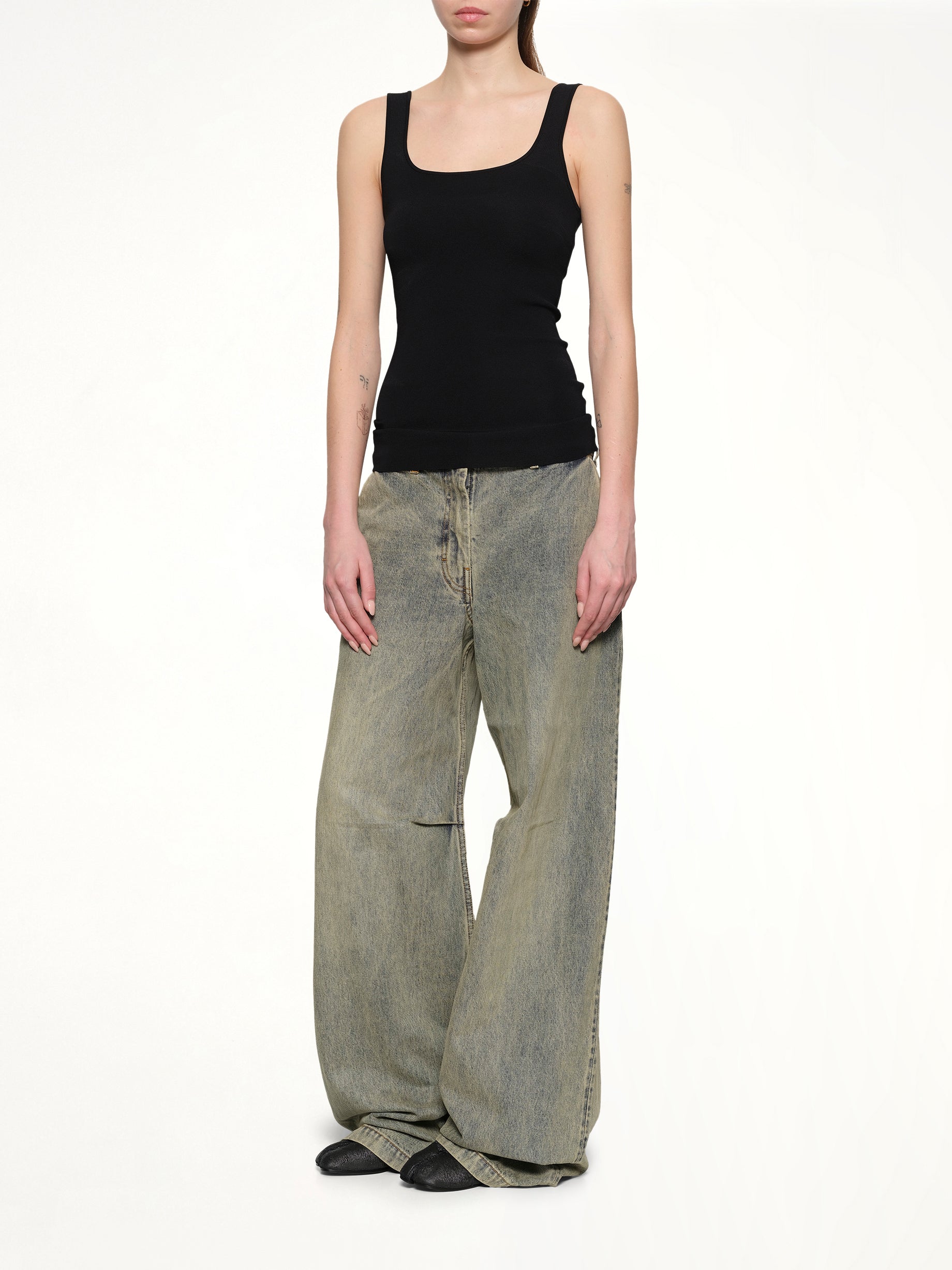 Entire Studios's Squared Neck Top in Black is a sleek and versatile addition to any wardrobe. Designed with a modern squared neckline, this top offers a flattering silhouette for various occasions.