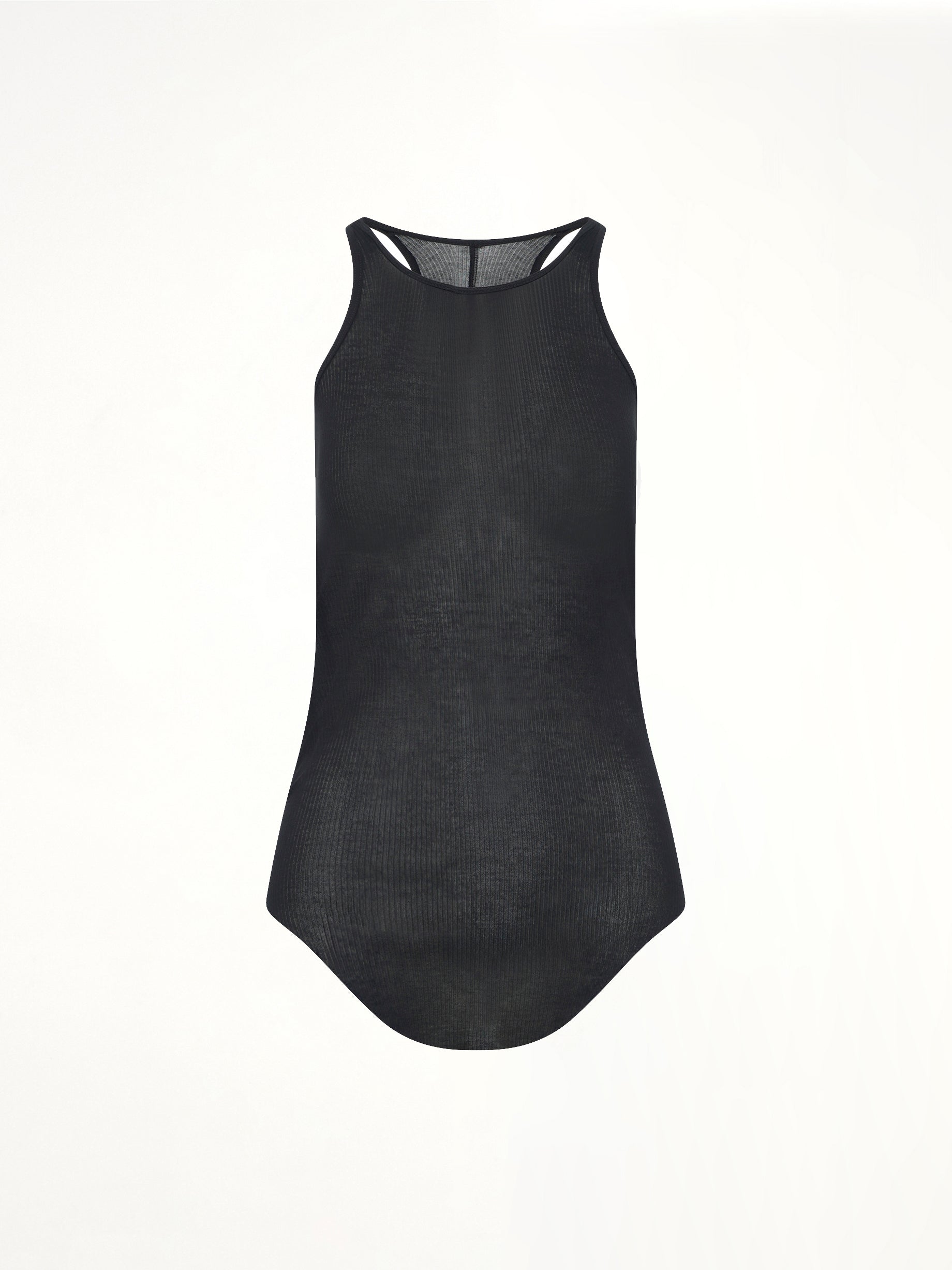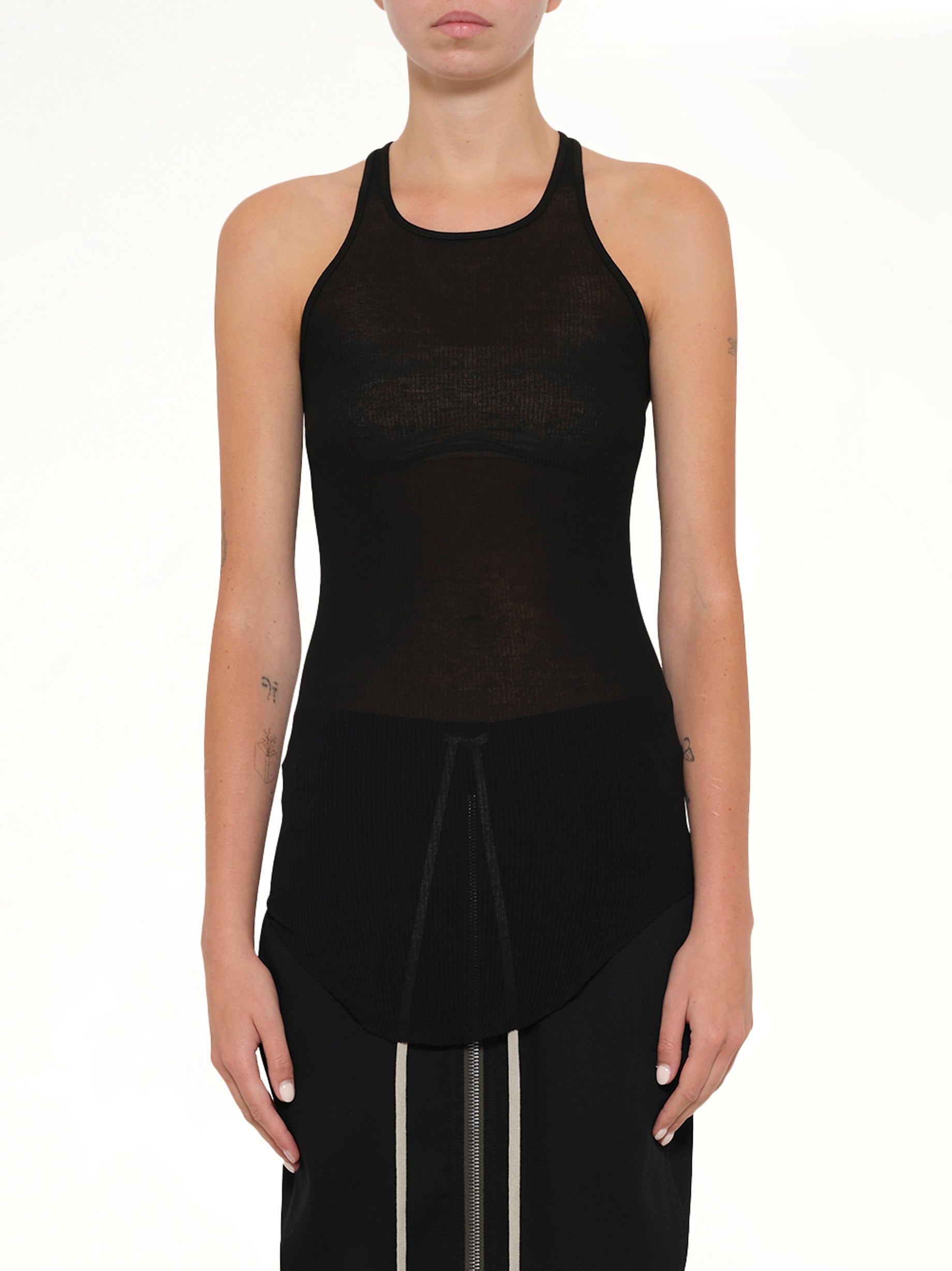 Rick Owens's Basic Rib Tank in Black is a versatile and essential piece for any wardrobe. Its minimalist design and comfortable fit make it perfect for layering or wearing on its own.