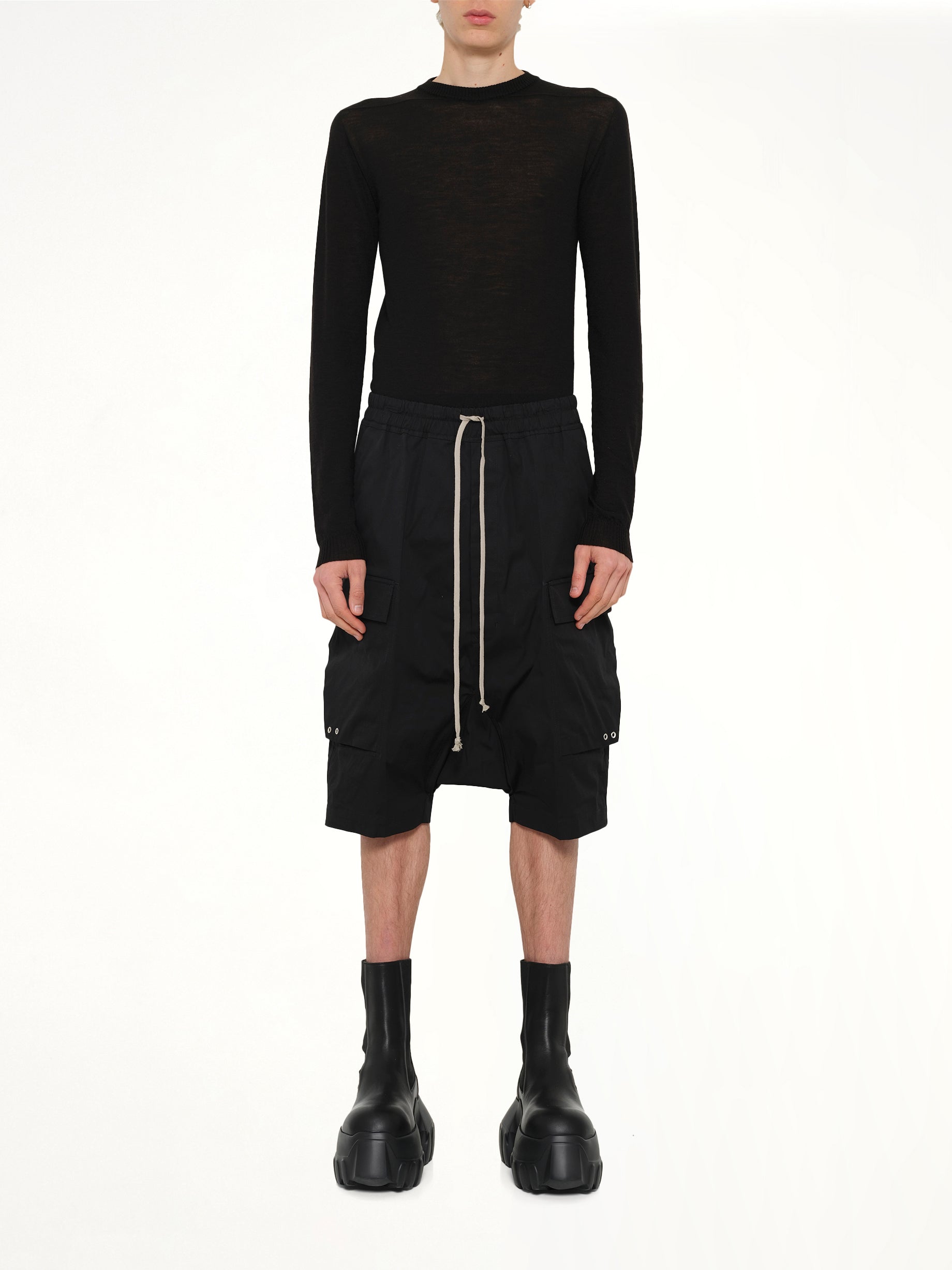 Rick Owens's Cargo Pods in Black is a distinctive piece that combines avant-garde design with practical functionality. These shorts offer a unique silhouette, perfect for those who appreciate bold fashion statements.