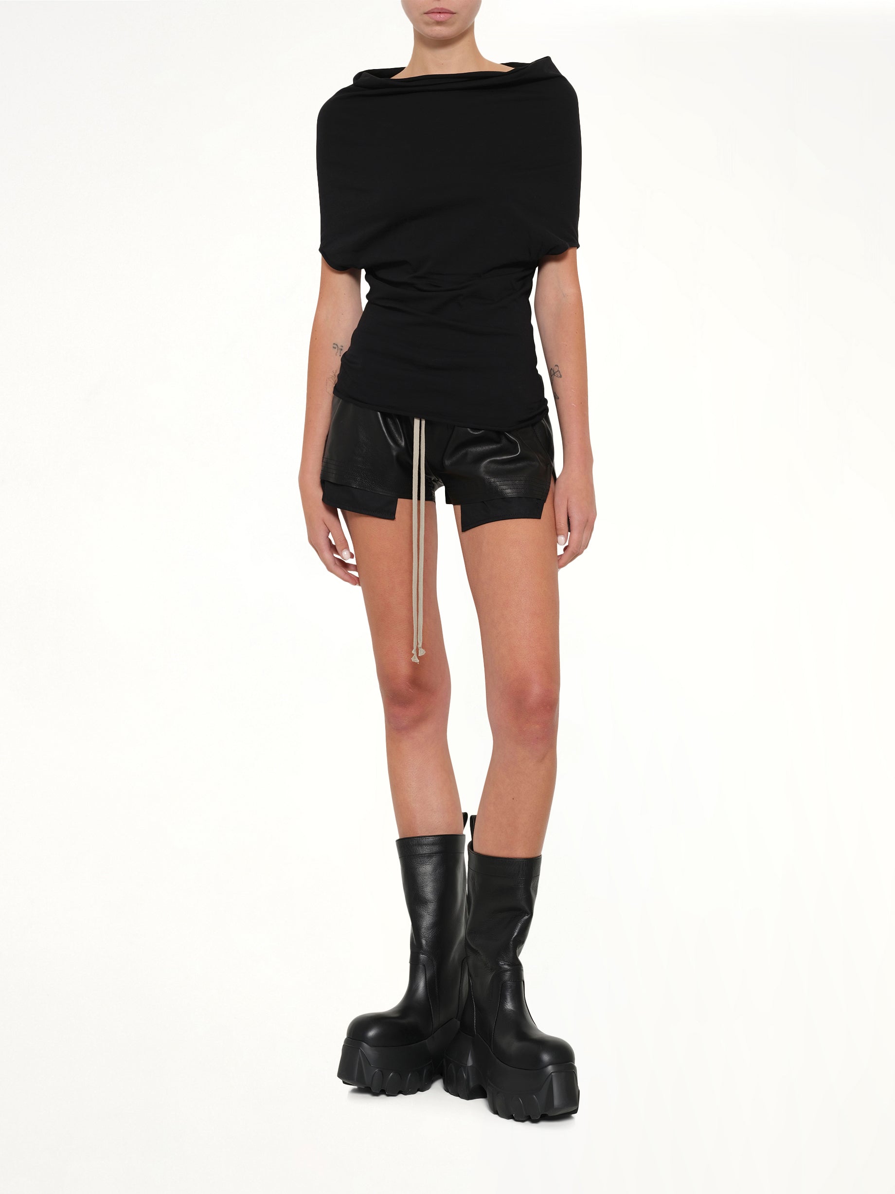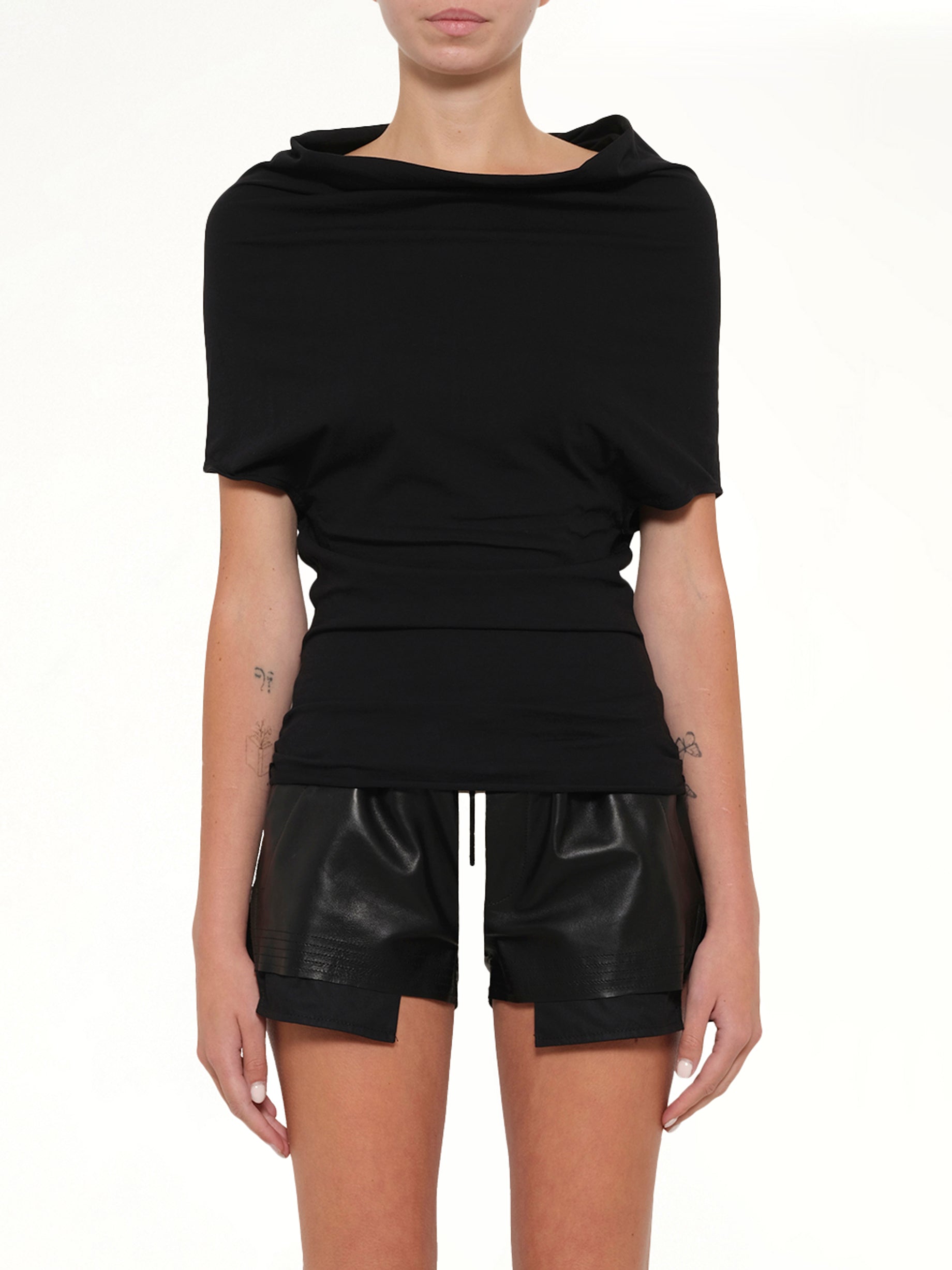 Rick Owens's Jersey Shroud in Black is a striking piece that embodies the designer's avant-garde aesthetic. This versatile garment offers a unique silhouette, perfect for layering or as a standalone statement.