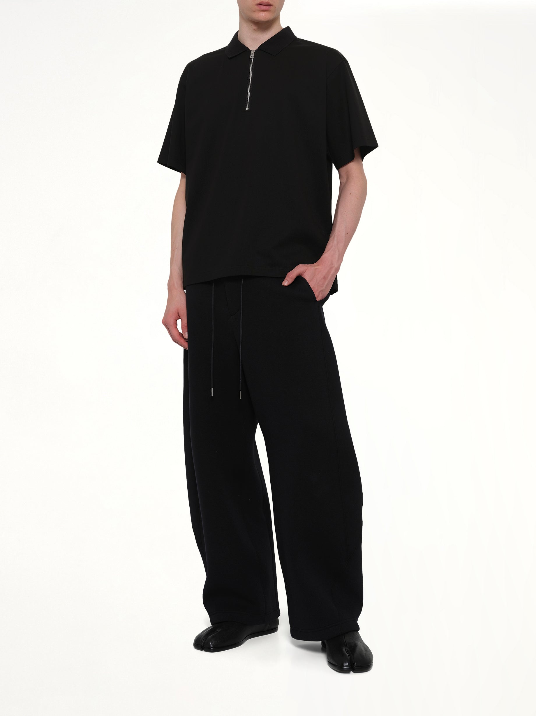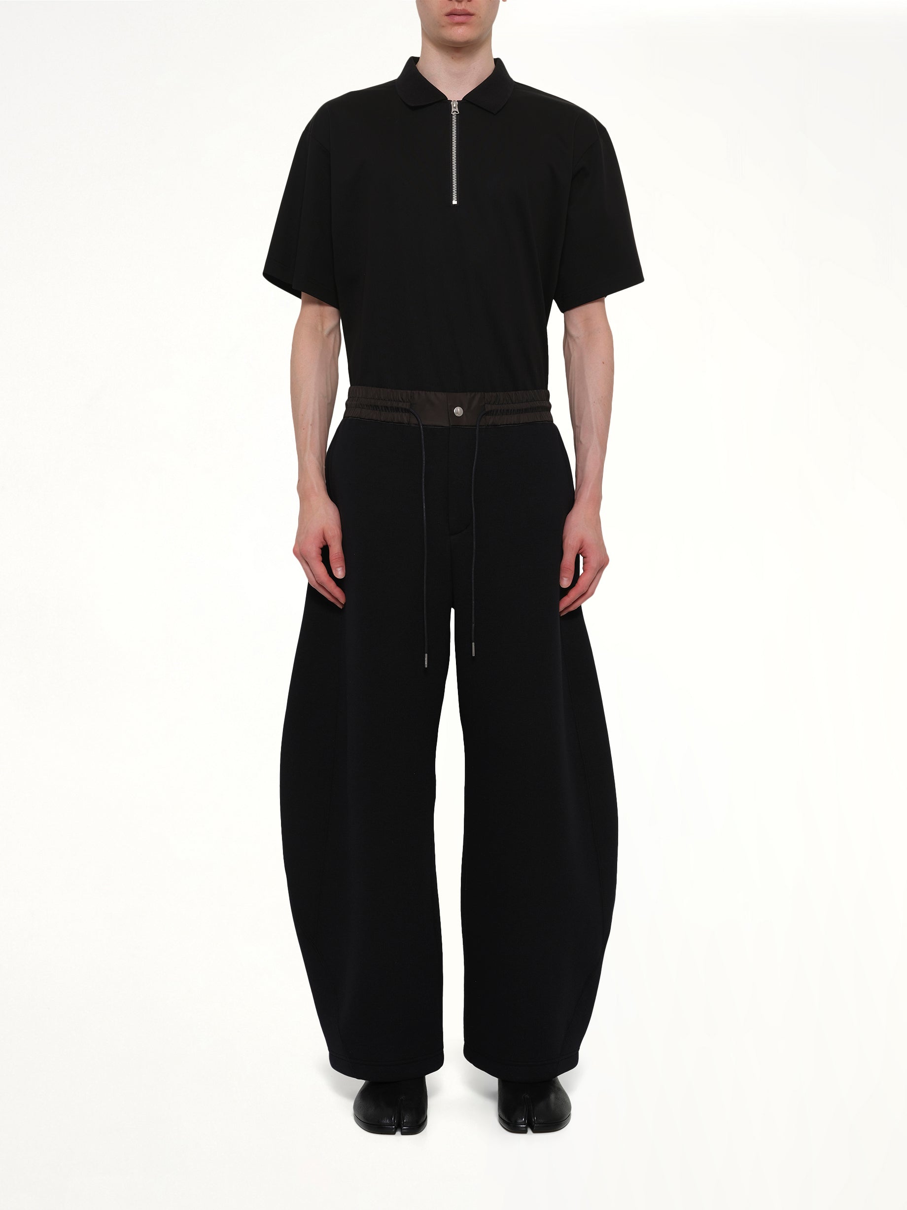 Sacai's Sponge Sweat Pants in Black is a versatile and stylish addition to any wardrobe. These pants offer a modern silhouette with a comfortable fit, perfect for both casual and semi-formal occasions.