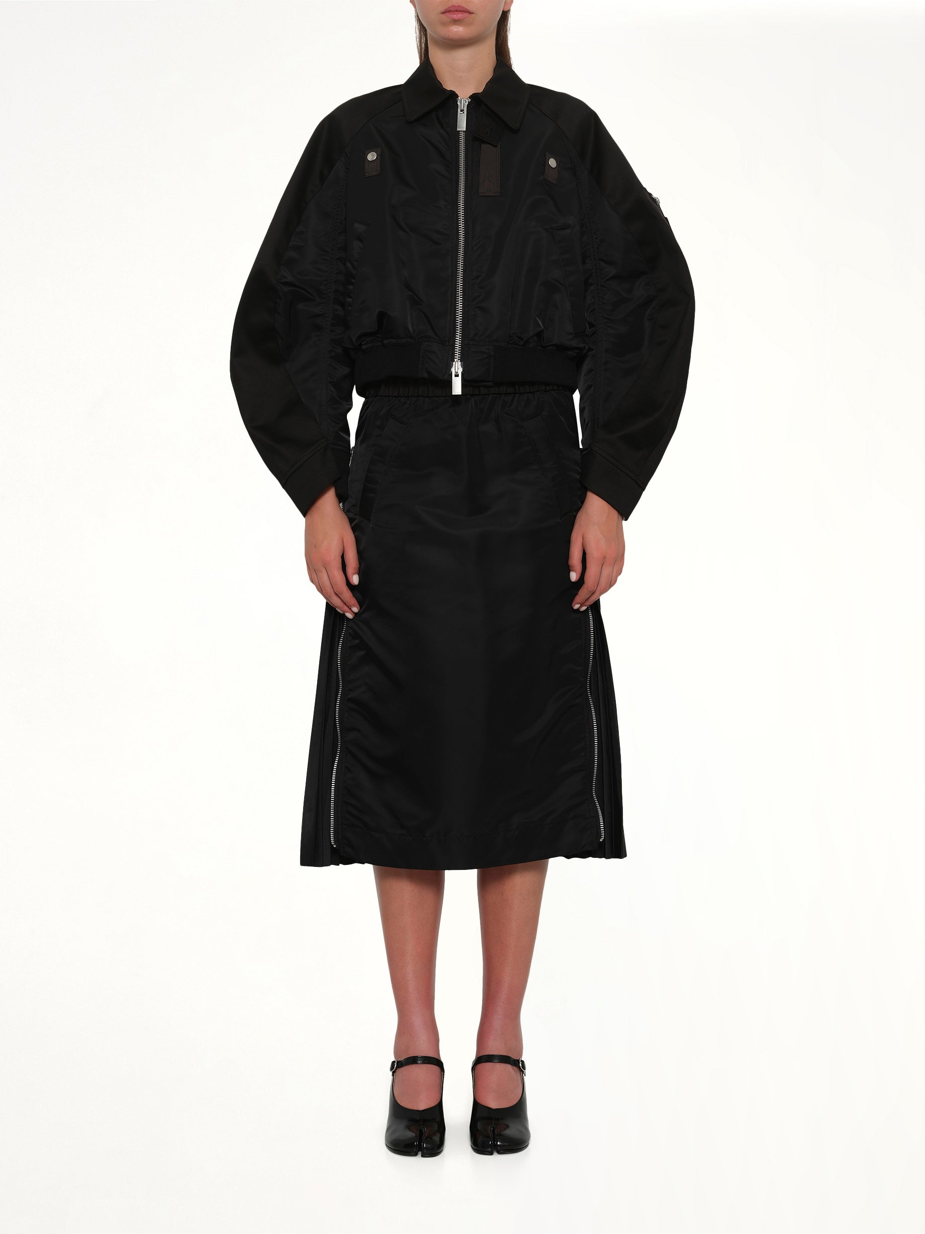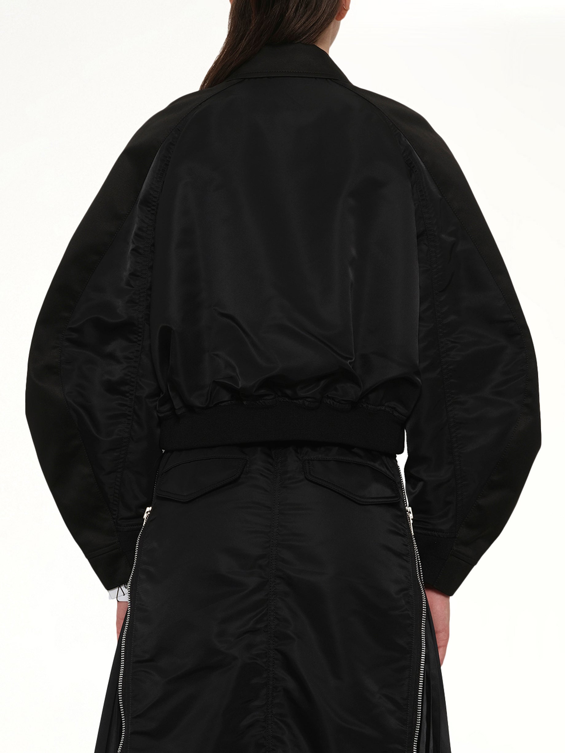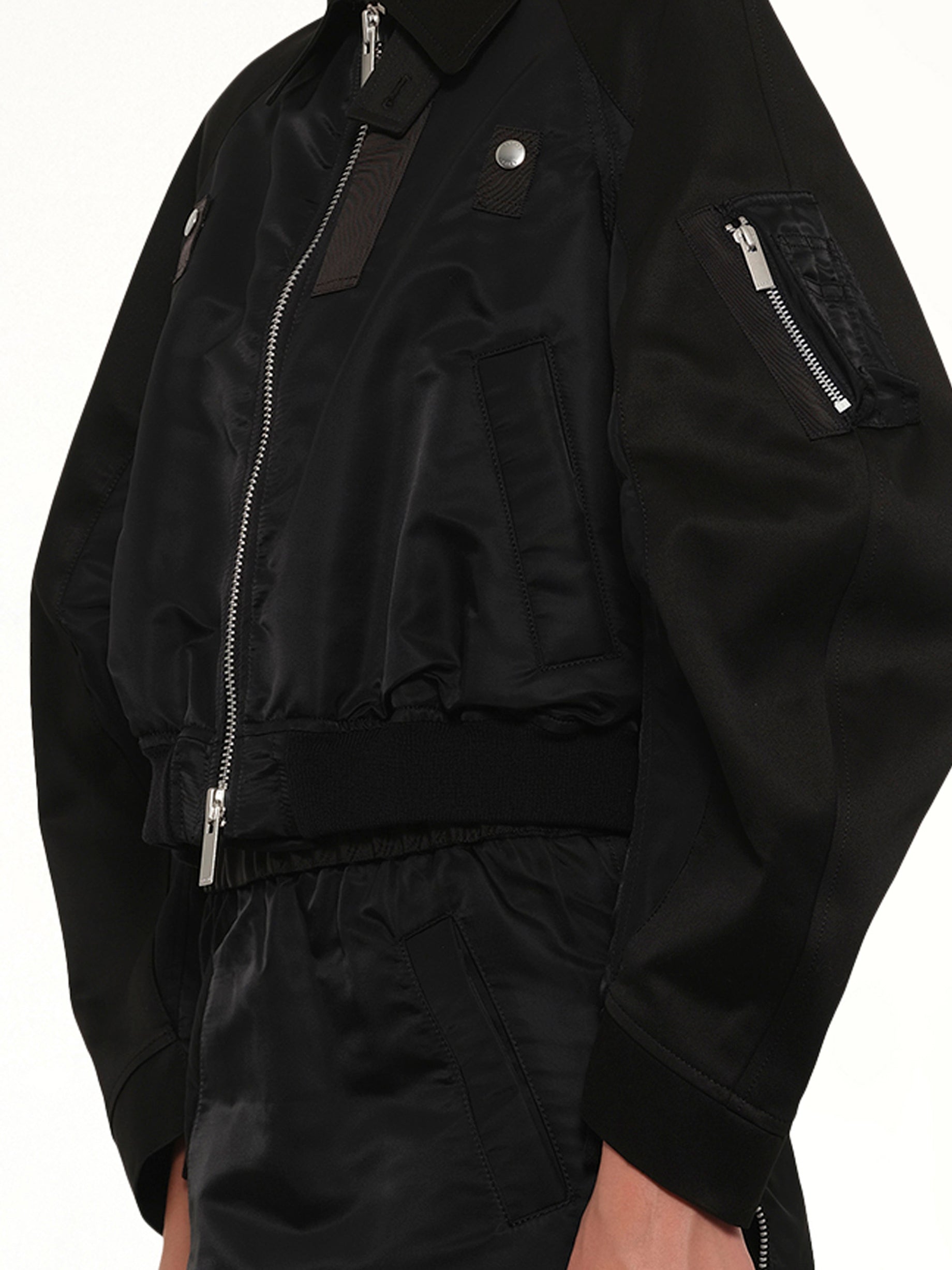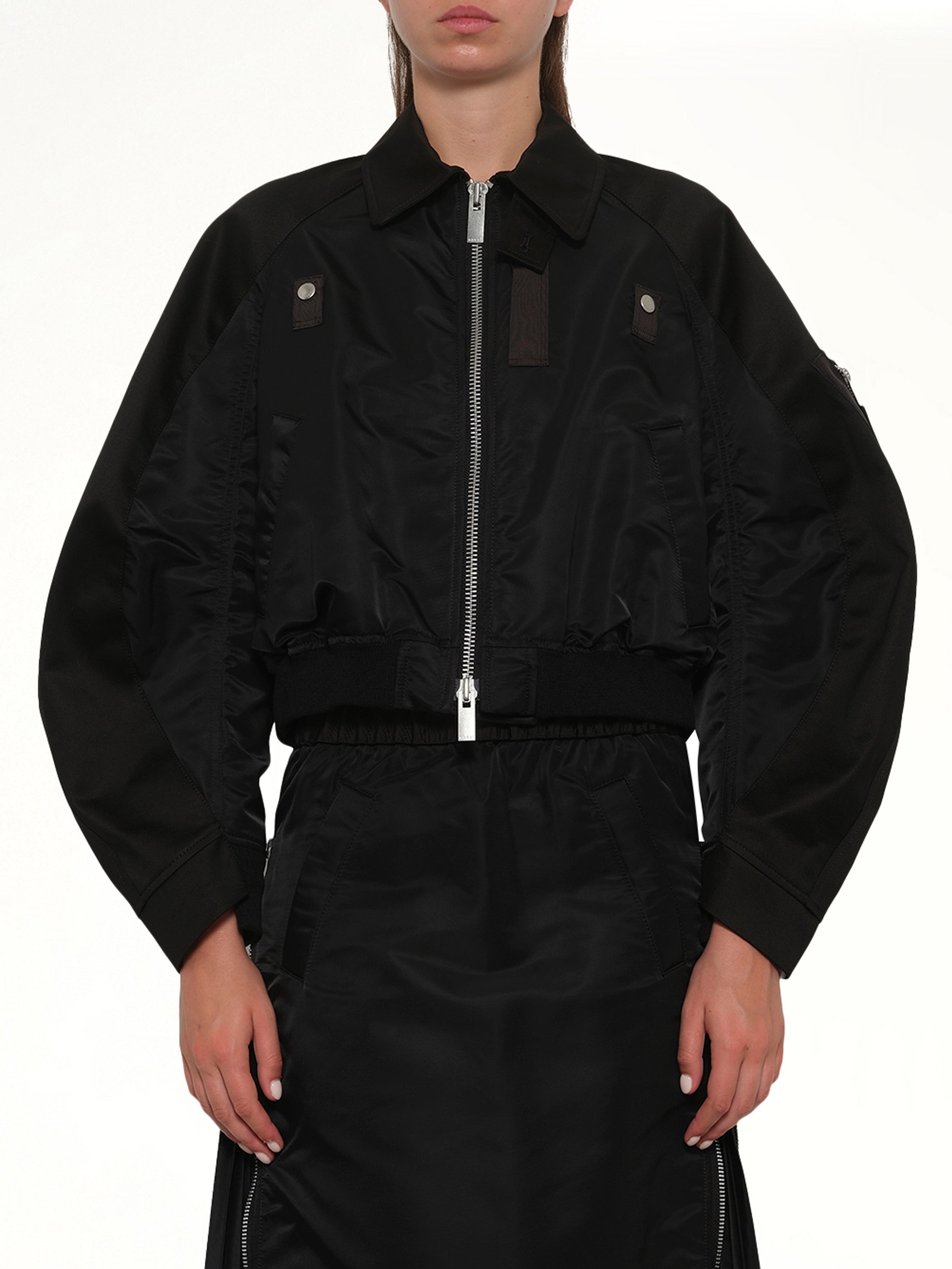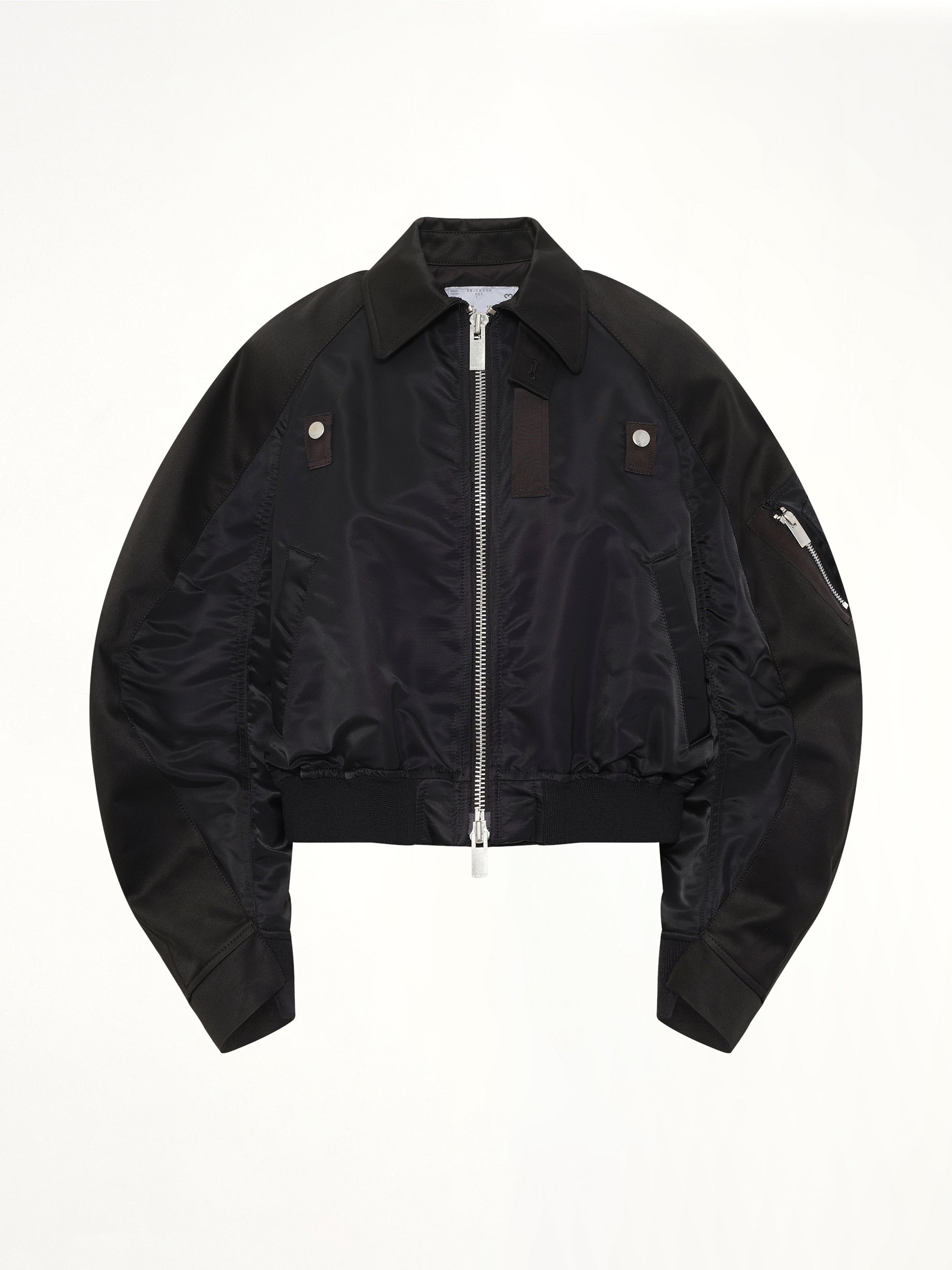 Sacai's Cotton Chino x Nylon Twill Blouson in Black is a versatile outerwear piece that combines classic style with modern functionality. Perfect for transitional weather, this blouson offers a sleek silhouette and practical features.