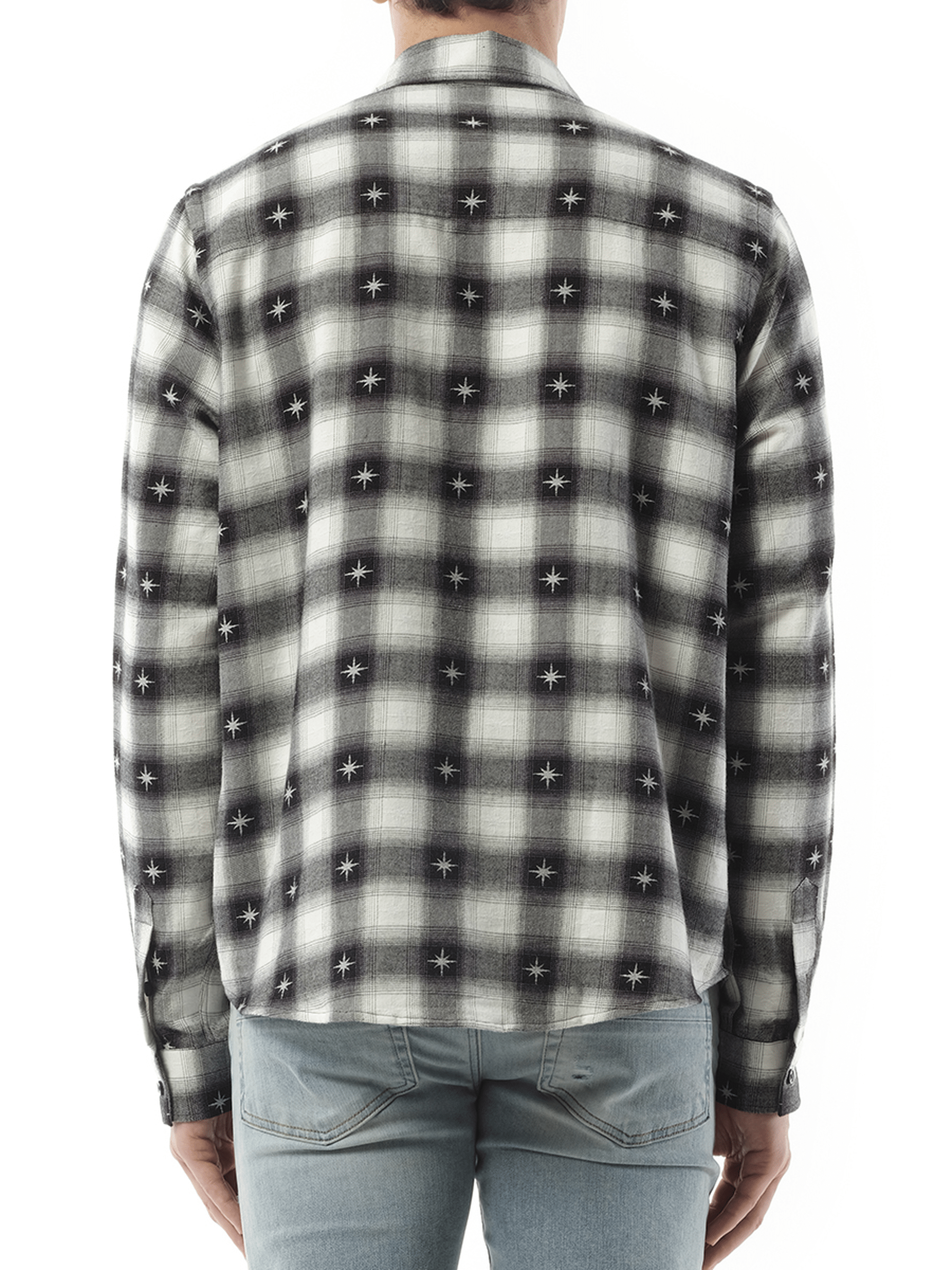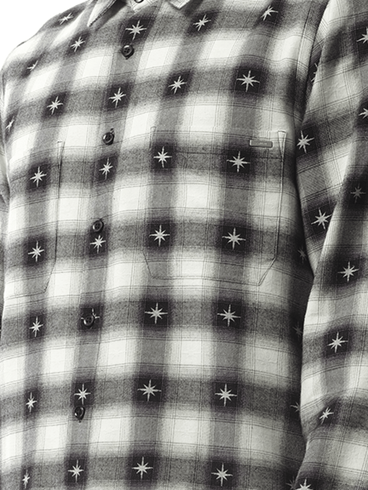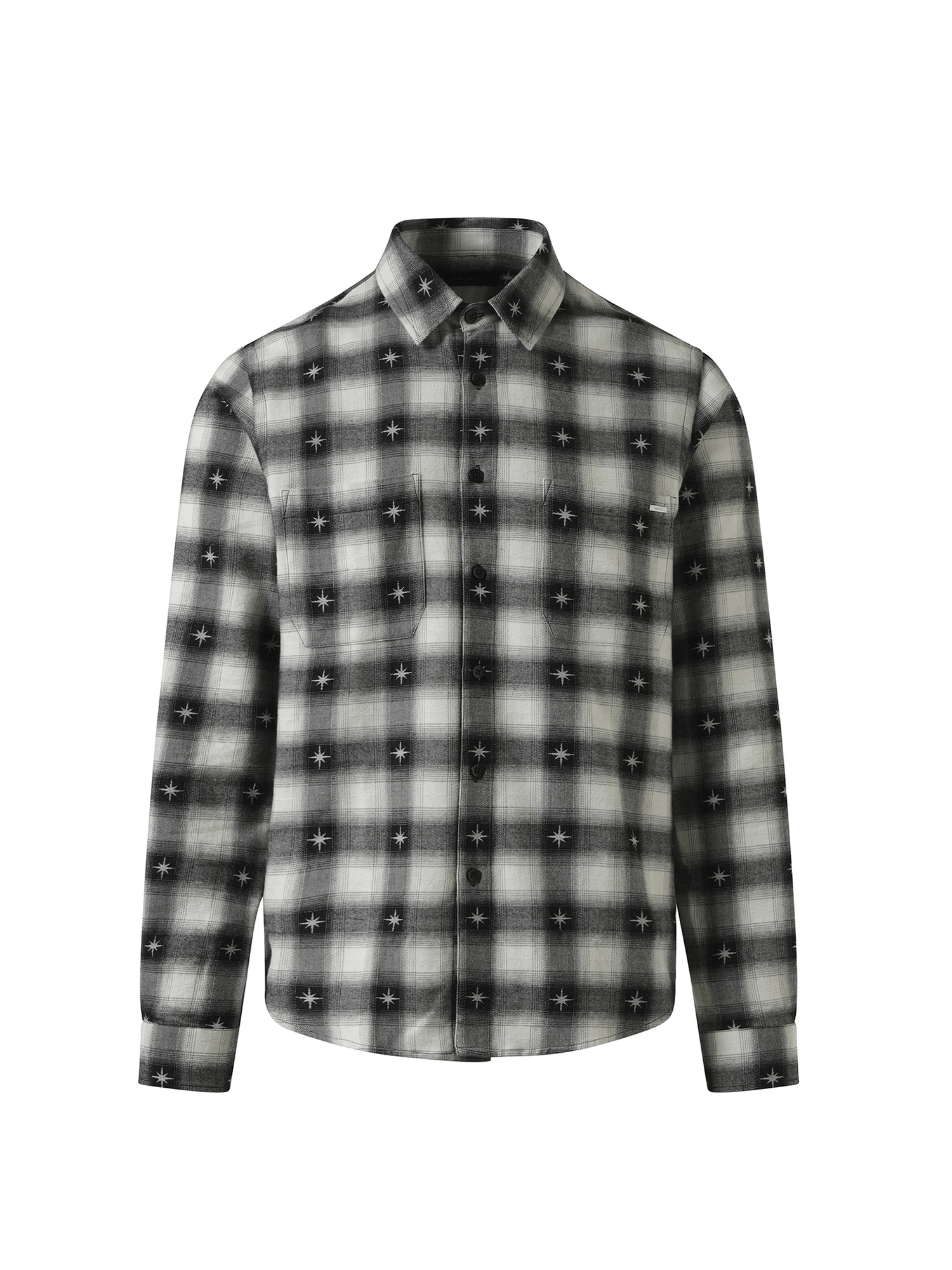 Introducing the Starburst Flannel in Black - the perfect addition to your fall wardrobe. Made from high-quality flannel material, this shirt offers both comfort and style. The starburst design adds a unique touch, making it a standout piece.