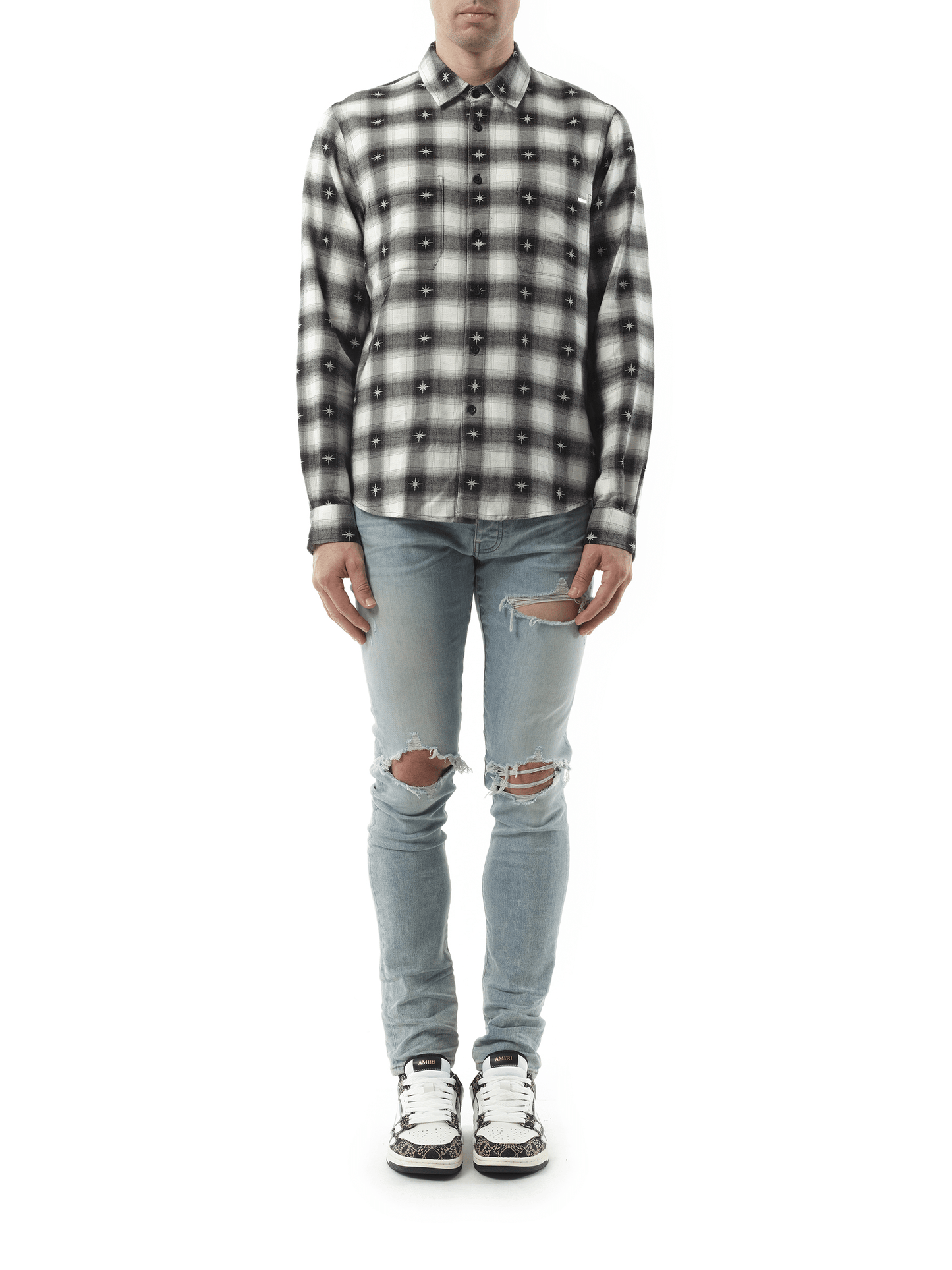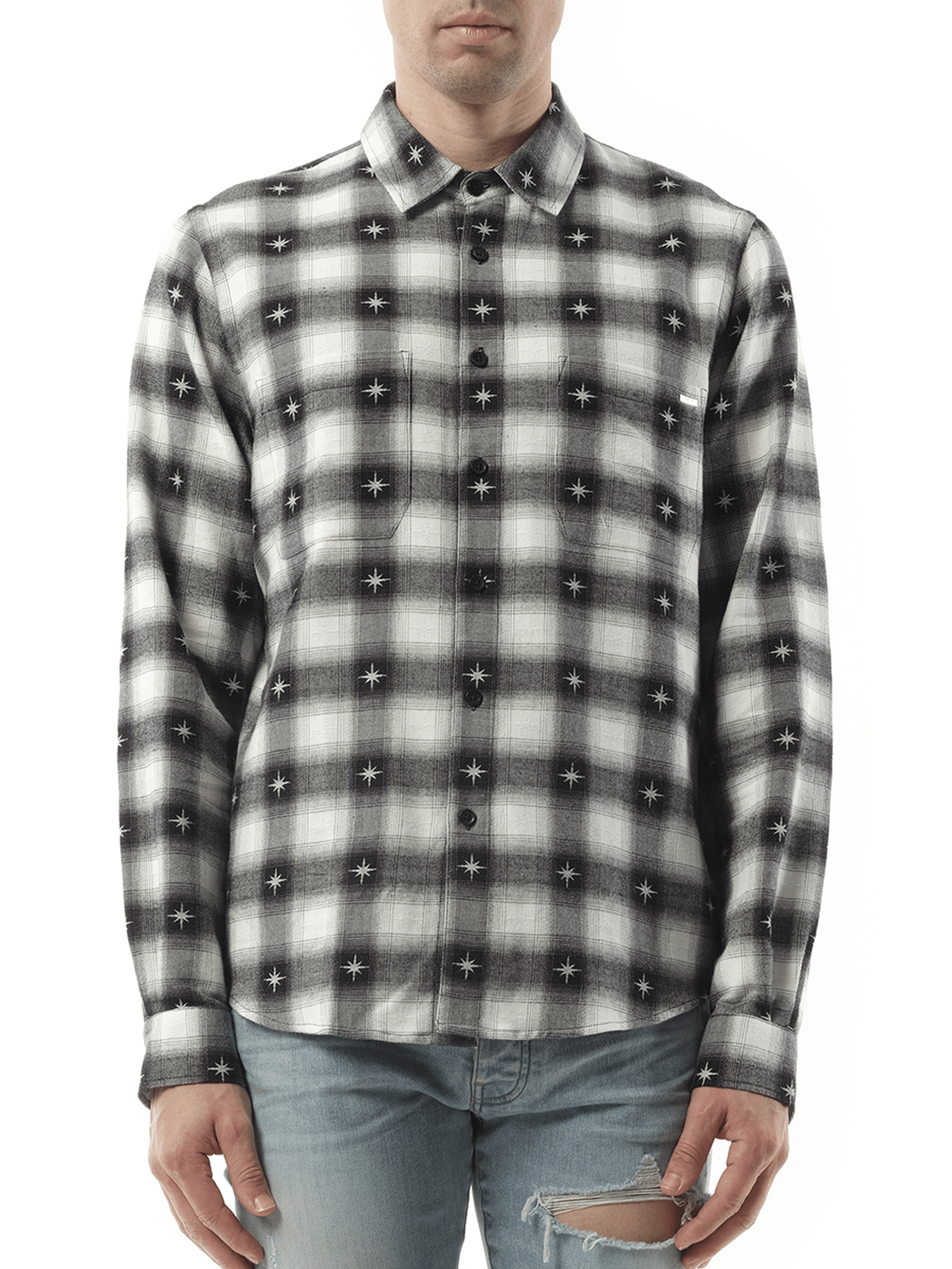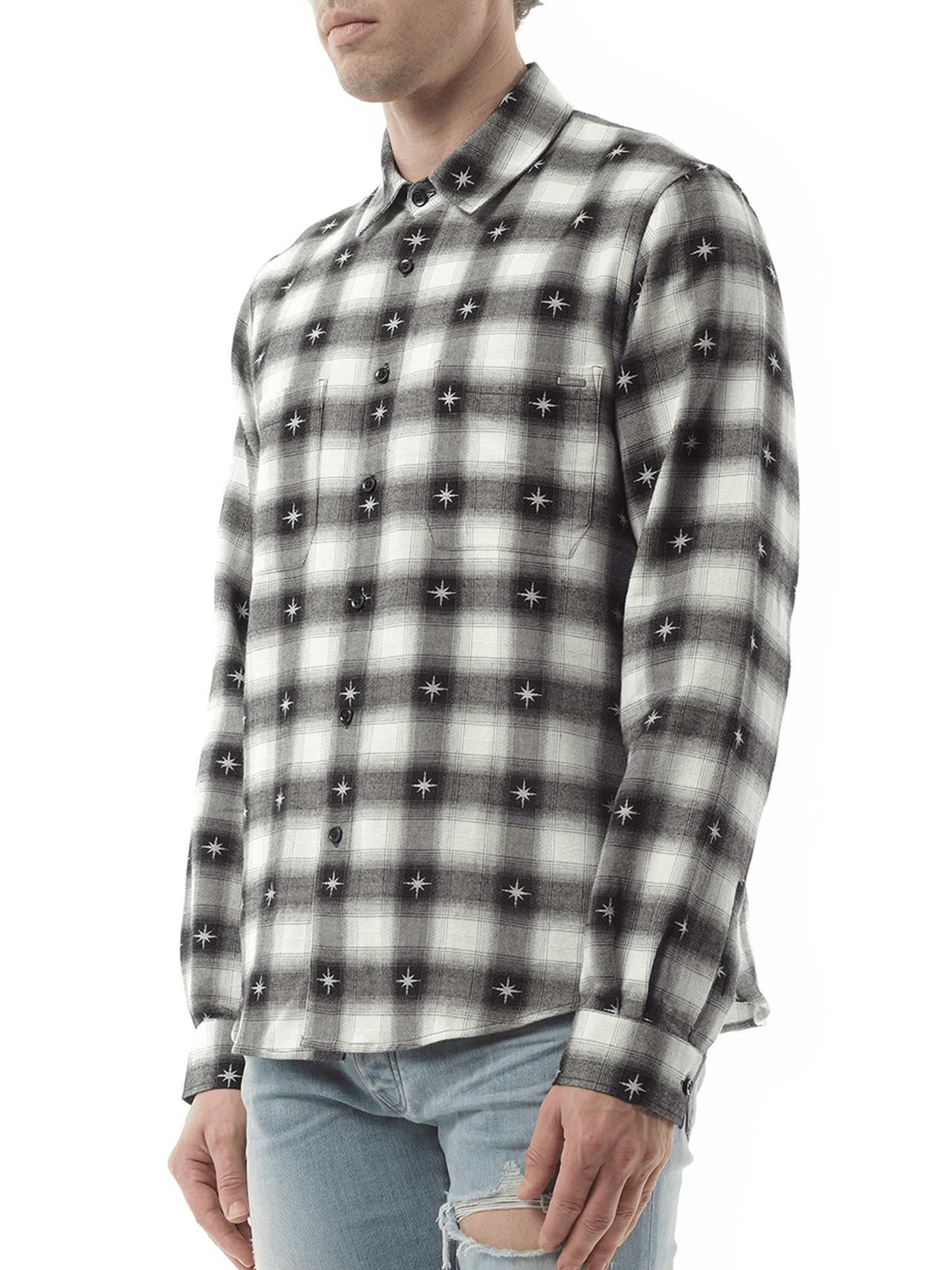 Introducing the Starburst Flannel in Black - the perfect addition to your fall wardrobe. Made from high-quality flannel material, this shirt offers both comfort and style. The starburst design adds a unique touch, making it a standout piece.