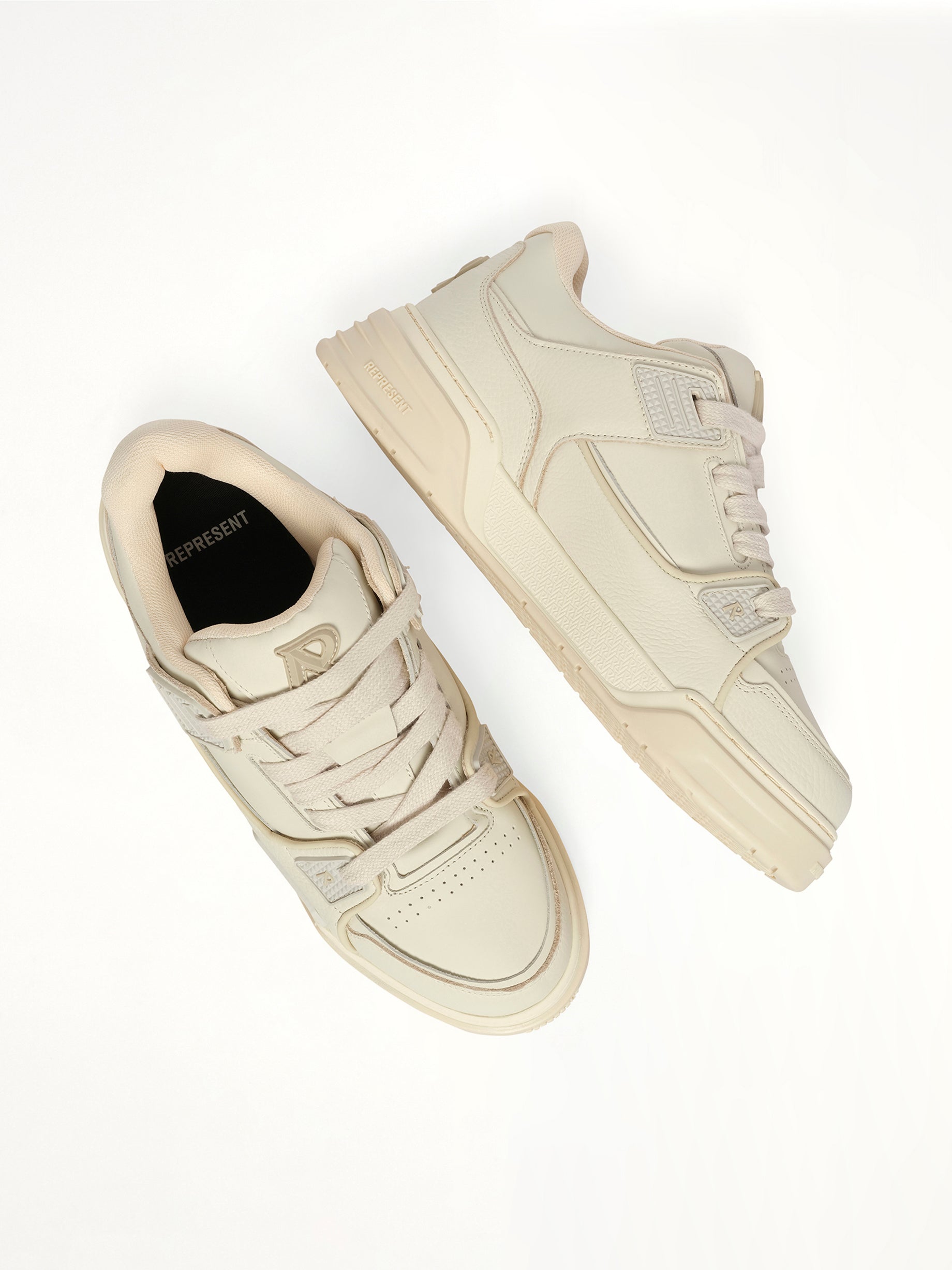 Represent's Studio Sneaker in Vintage White is a stylish and versatile footwear choice, perfect for any casual or semi-formal occasion. With its sleek design and comfortable fit, it effortlessly complements a variety of outfits.