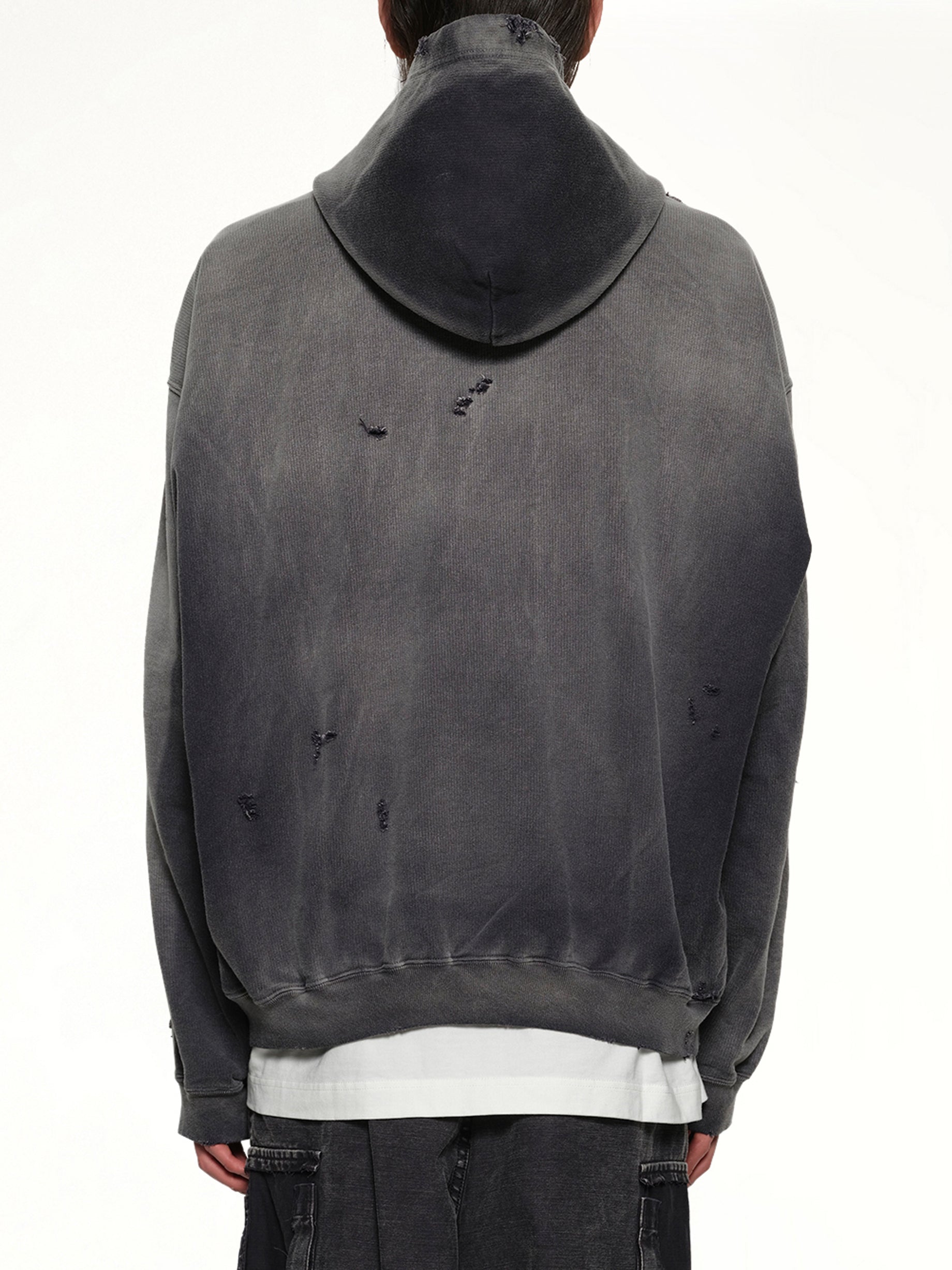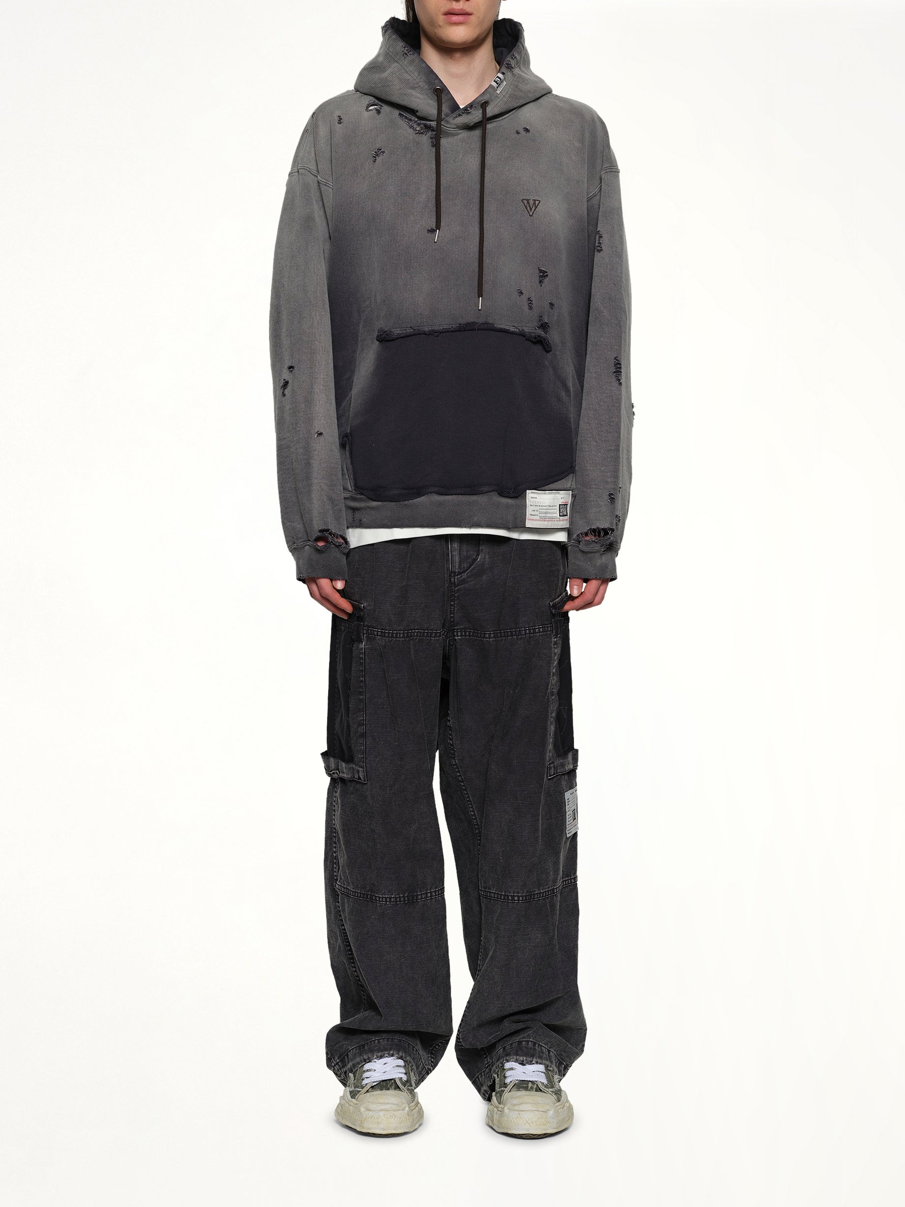 Maison Mihara's Sun Faded Hoodie in Black is a stylish and versatile piece that combines comfort with a unique, worn-in look. Perfect for casual outings, this hoodie offers a relaxed fit and timeless appeal.