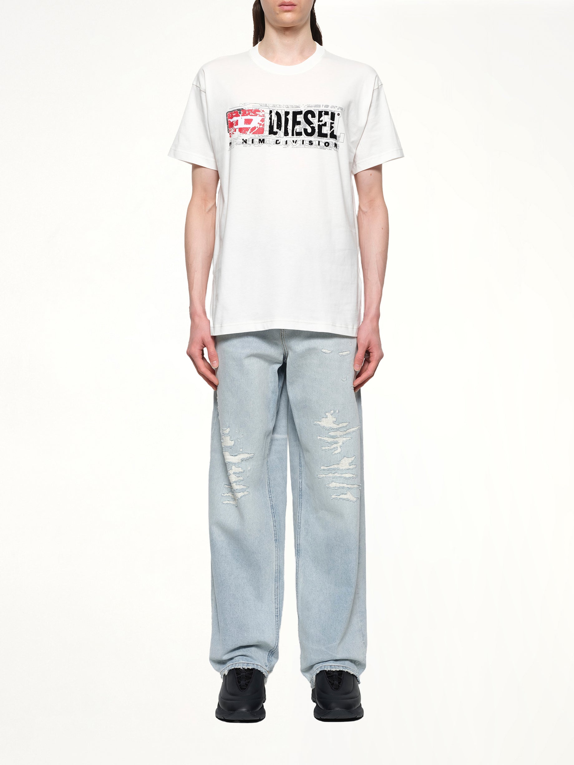 Diesel's T-NORM-T6 T-Shirt in White is a versatile and stylish addition to any wardrobe. Perfect for casual outings or layering, this t-shirt offers both comfort and a modern look.