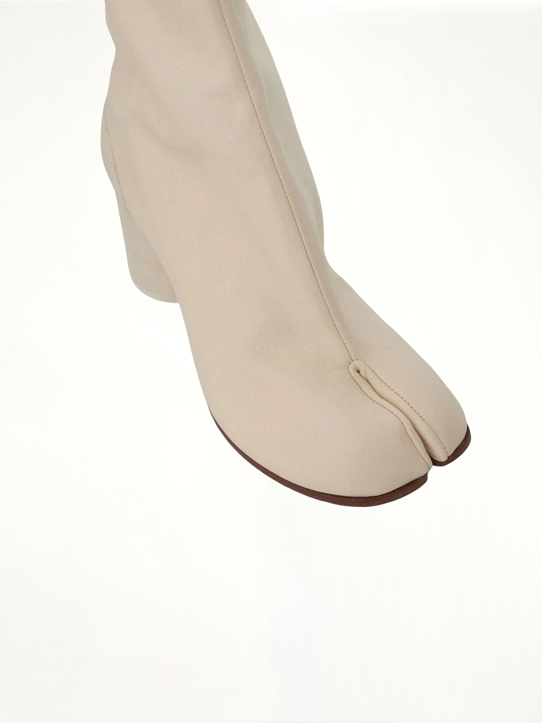 Step out in style with these Tabi Ankle Boots in white. Crafted from soft nappa leather, these ankle boots feature a unique 8cm cylindrical heel and the iconic Tabi split-toe shape. Inspired by the traditional Japanese sock from the 15th century, these boots capture the avant-garde and rebellious spirit of the Maison Margiela.