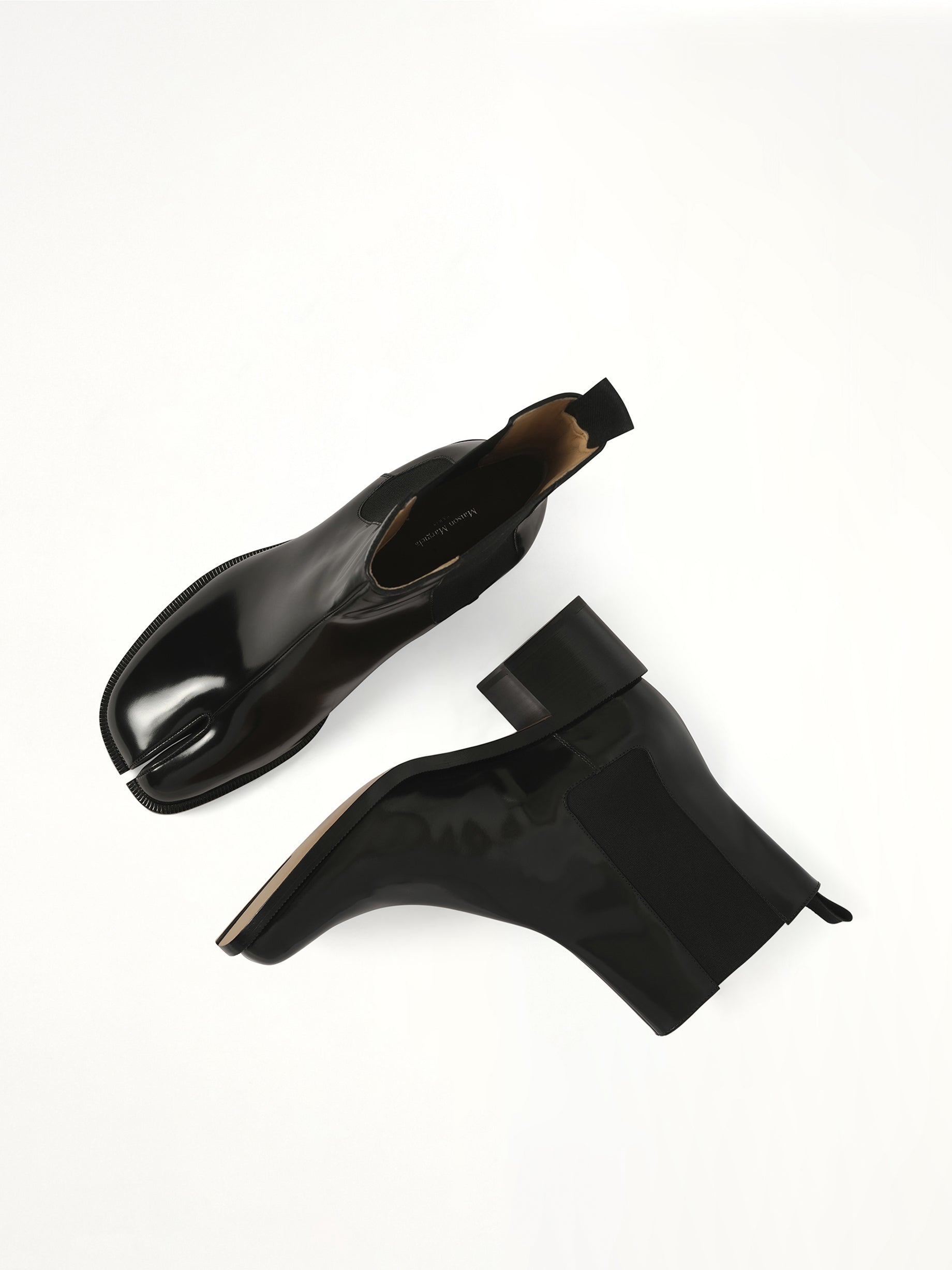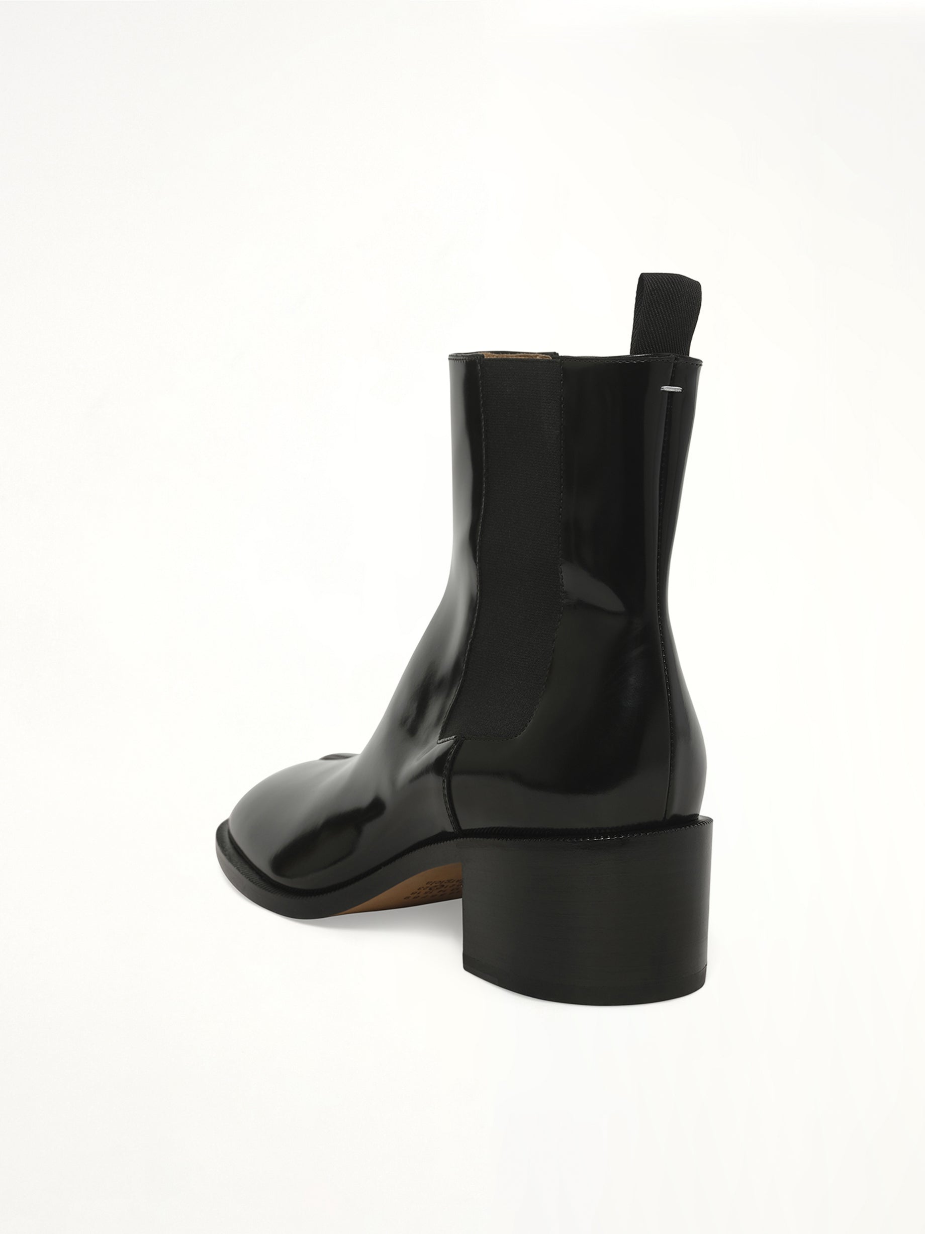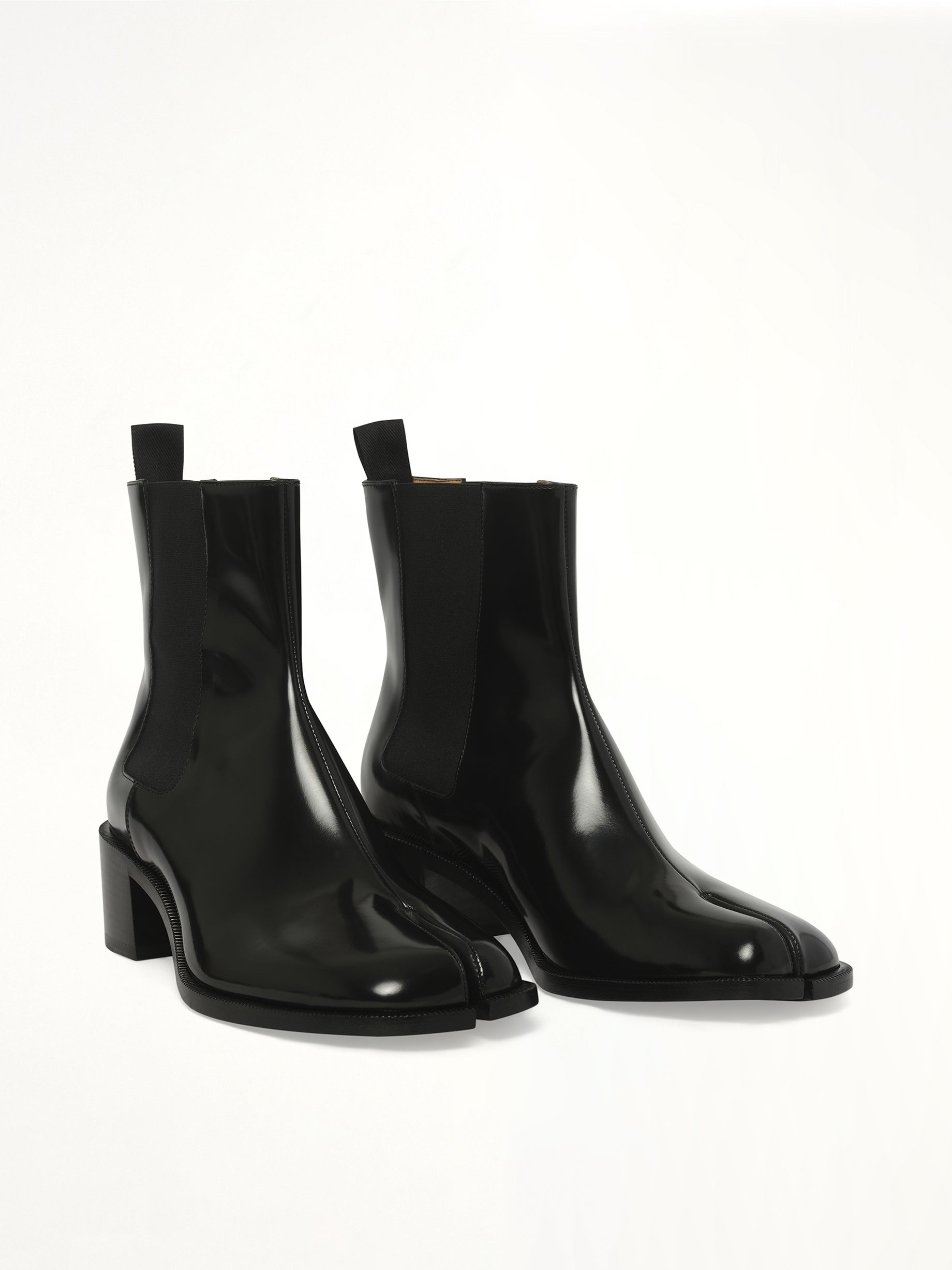Maison Margiela's Tabi Chelsea 5.5cm Boots in Black is a unique fusion of classic design and avant-garde style. These boots feature the iconic split-toe Tabi silhouette, offering a bold statement for any wardrobe.