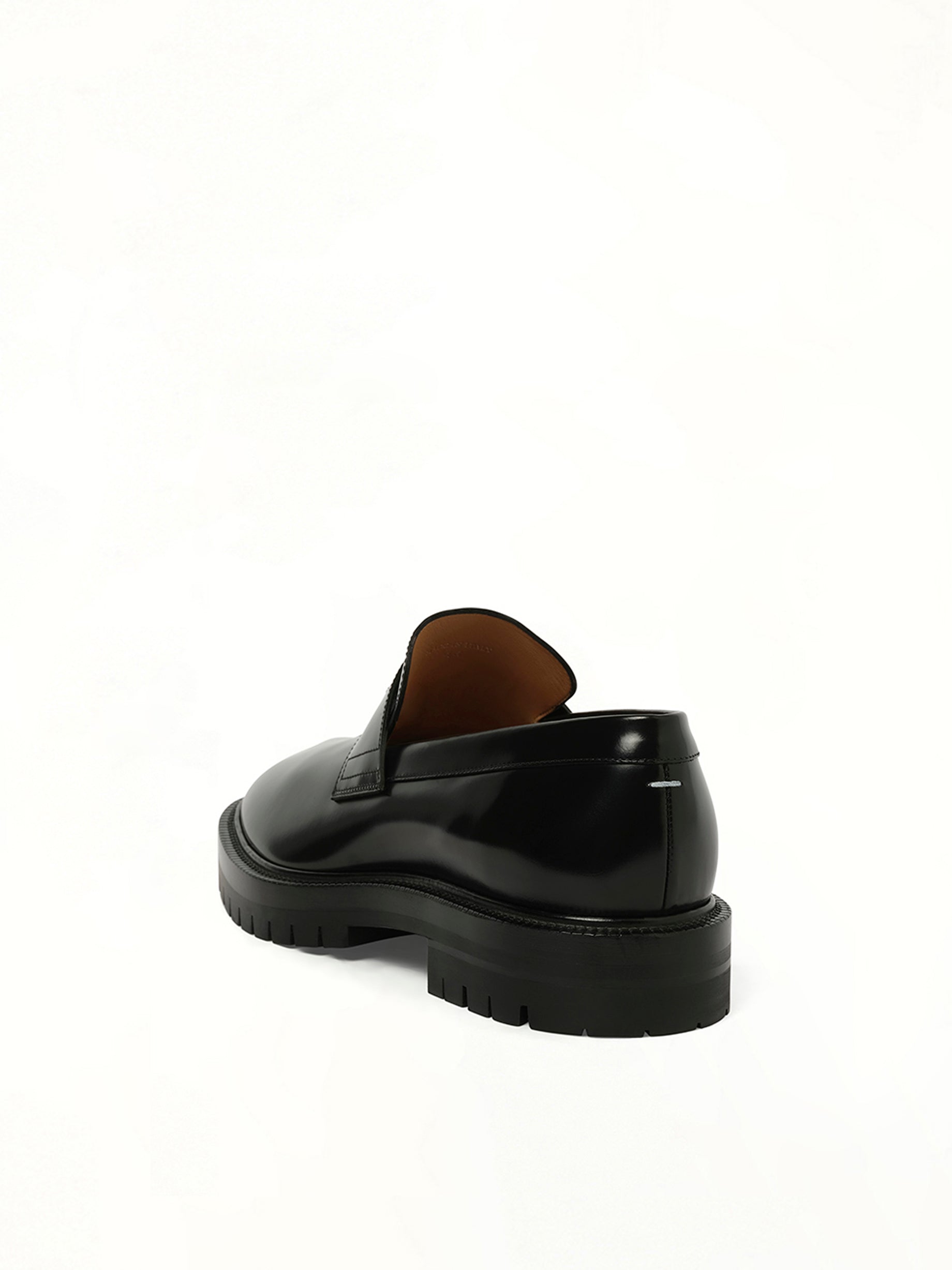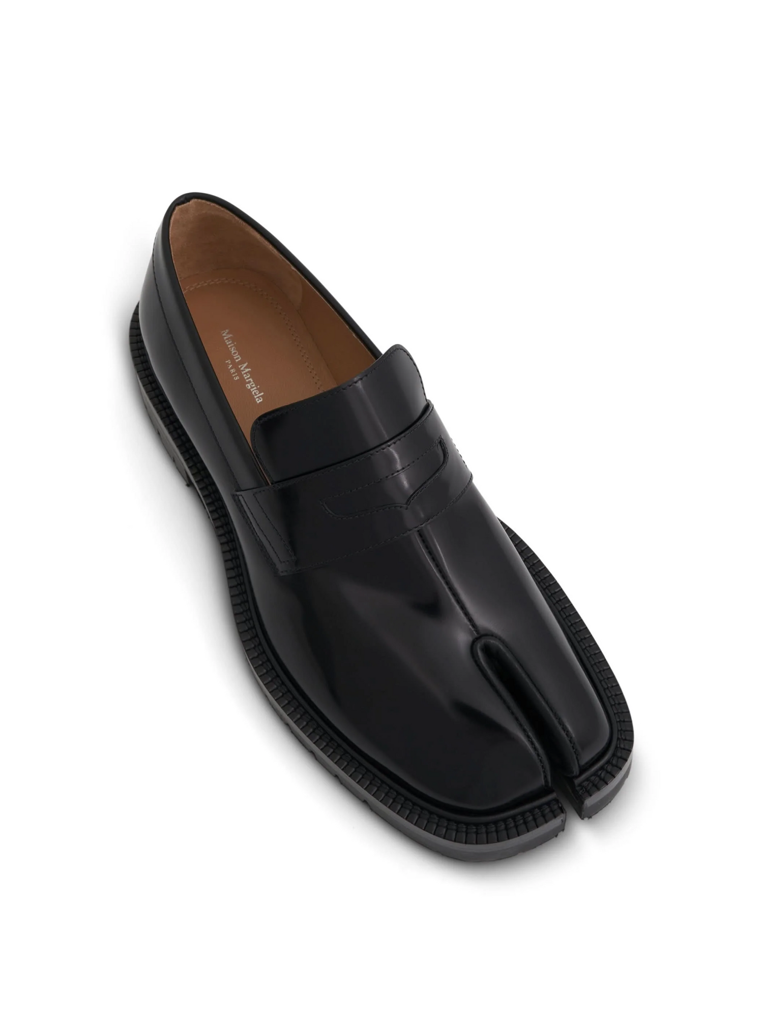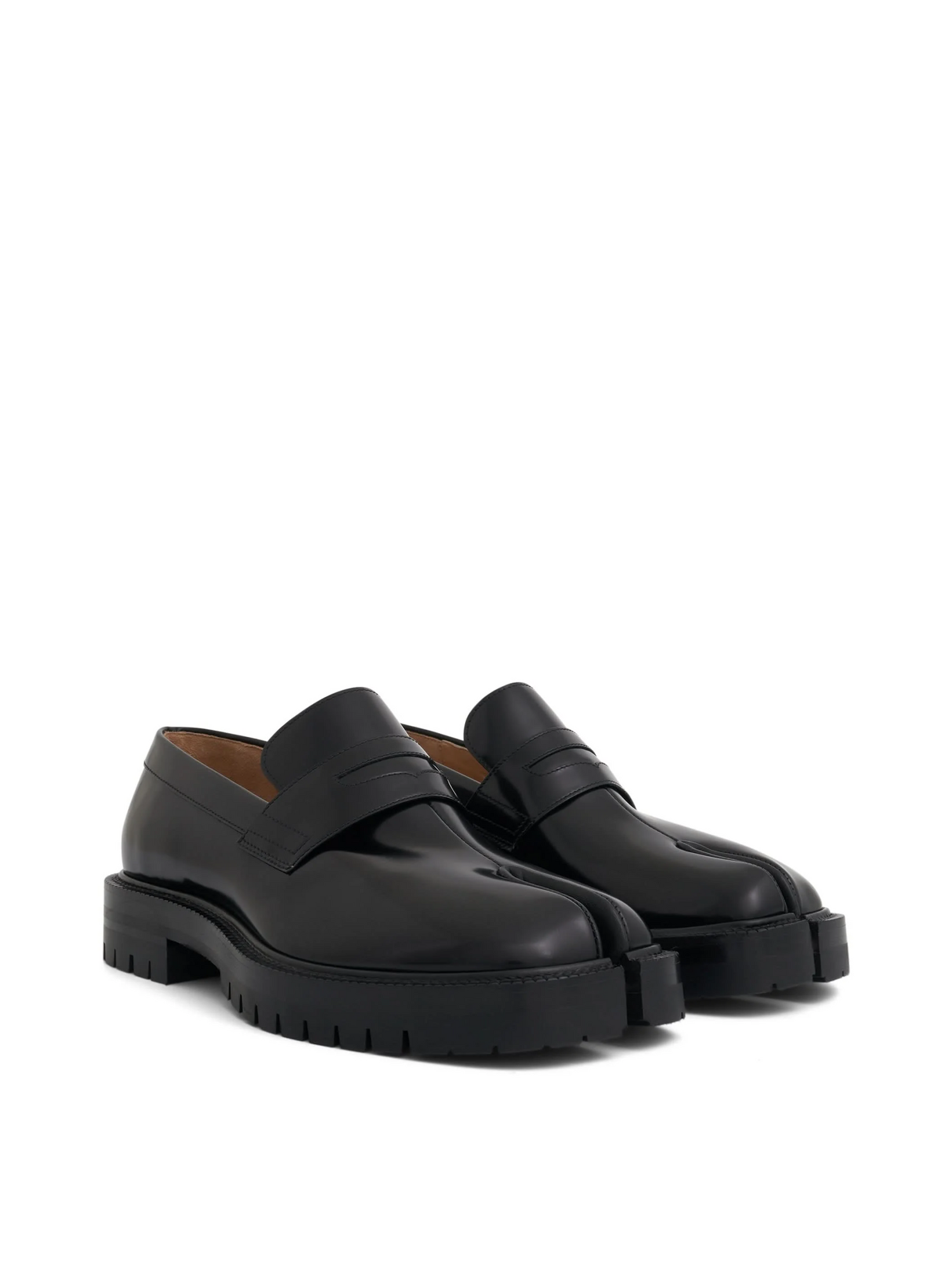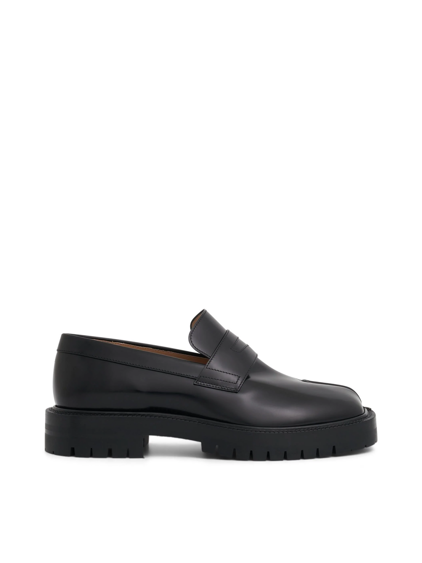 Achieve ultimate style and comfort with the Tabi Loafers Chunky Sole in Black. Its breathable leather upper and supportive cushioned foot bed make it perfect for long days on your feet.