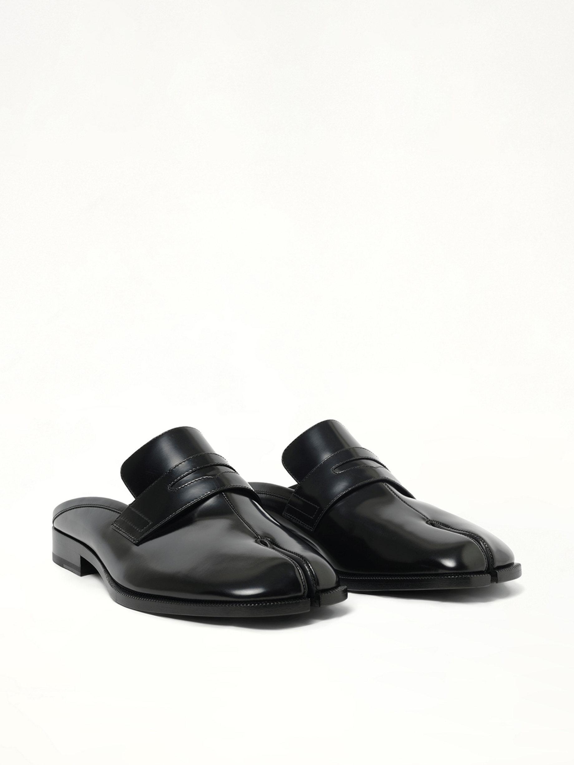Maison Margiela's Tabi Mule in Black is a distinctive footwear piece that combines avant-garde design with everyday functionality. The iconic split-toe silhouette offers a unique twist on the classic mule style.