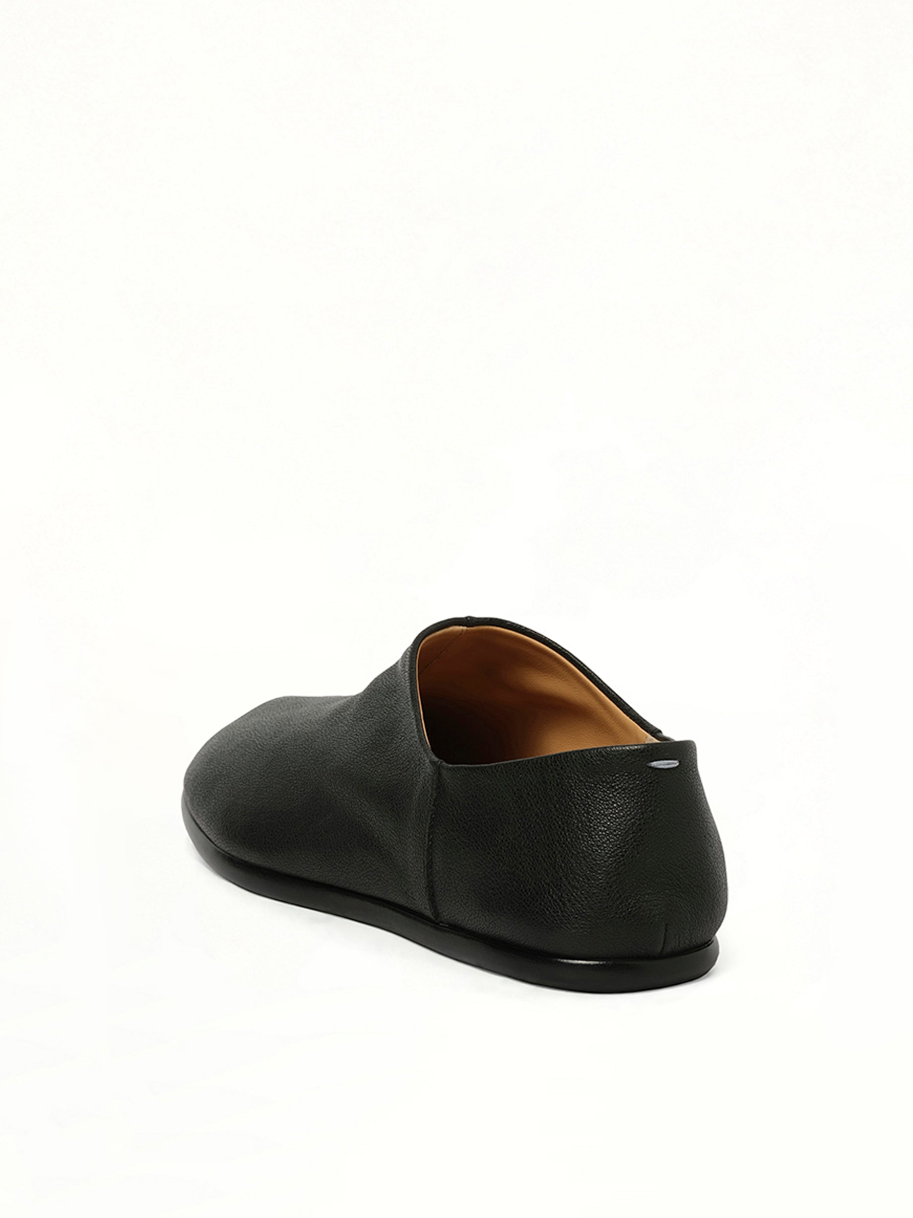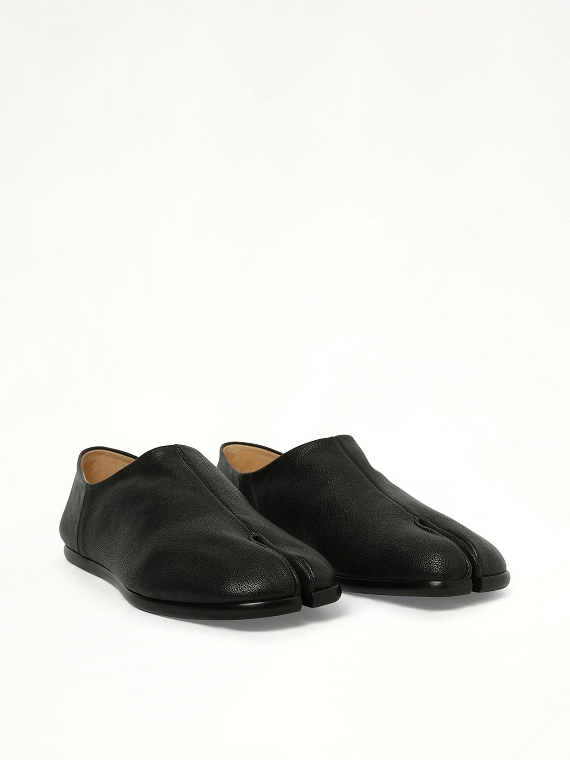 Made from supple nappa leather, the Tabi Babouches showcase the iconic split-toe design, influenced by the renowned 15th century Japanese sock of the same name. This revolutionary style was first introduced in 1989 as part of the Maison's inaugural collection, embodying the rebellious and avant-garde essence of the brand. It remains a timeless classic, continually reimagined in every subsequent collection.