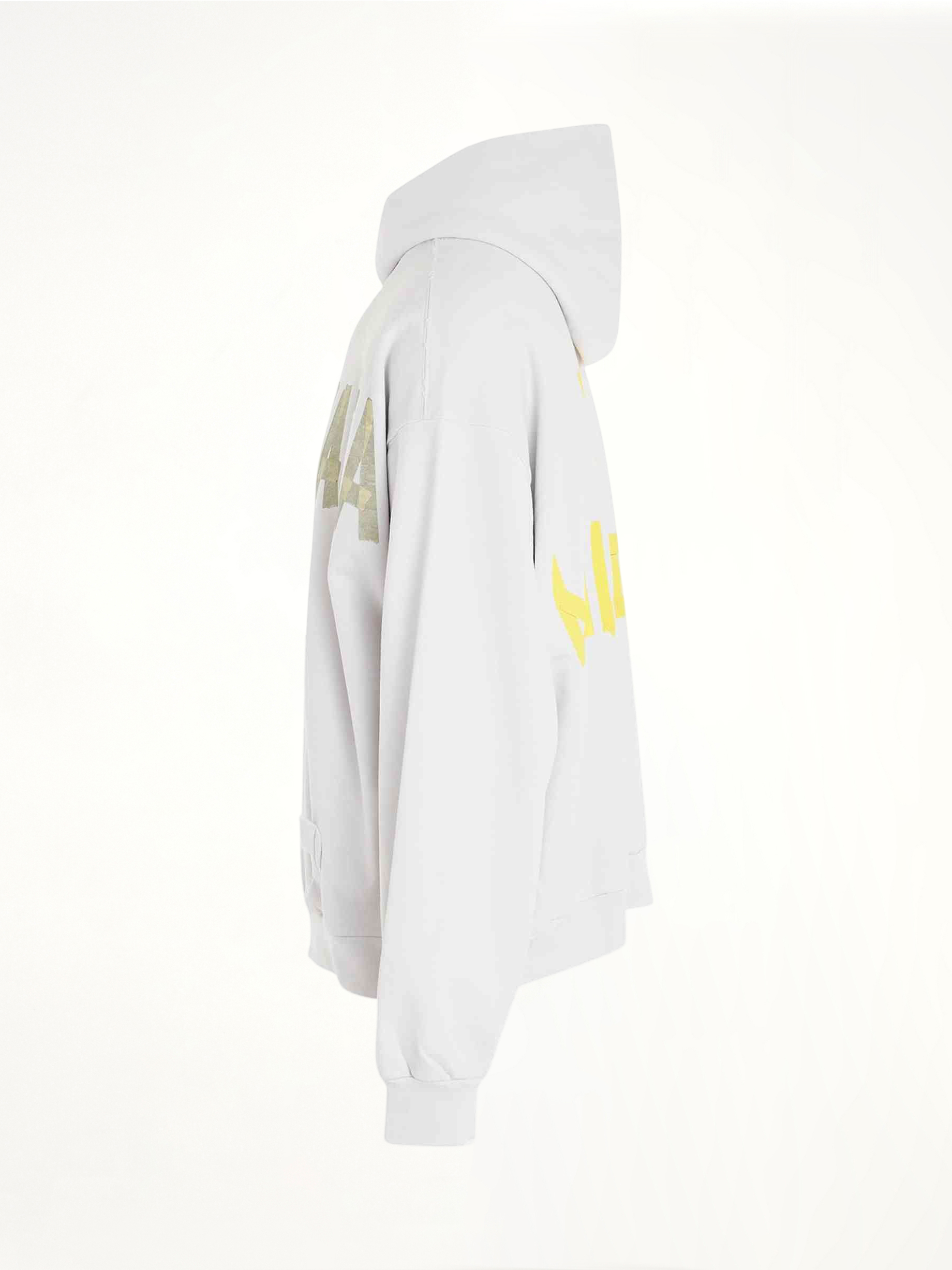 Tape Logo Ripped Pocket Hoodie in White