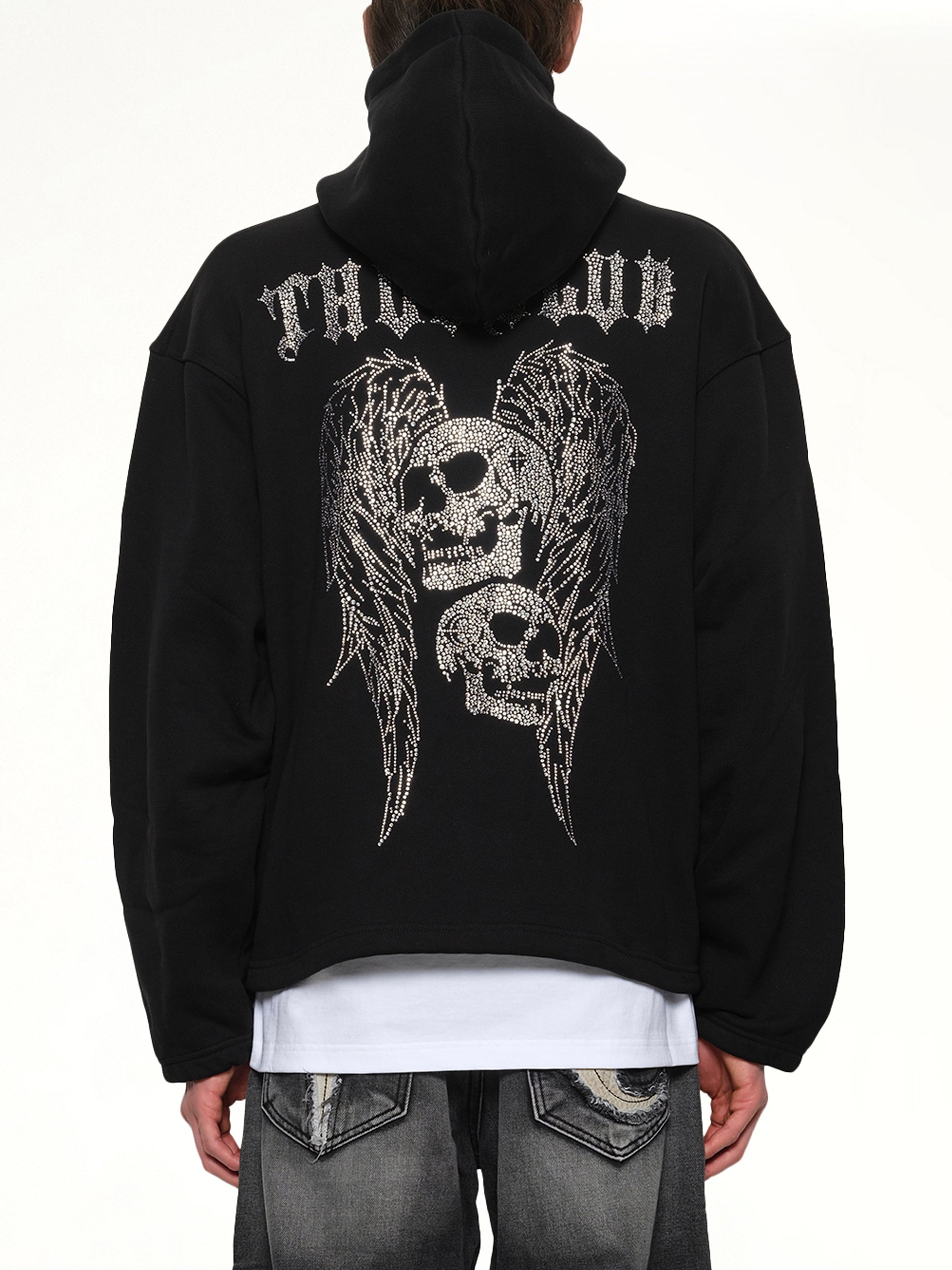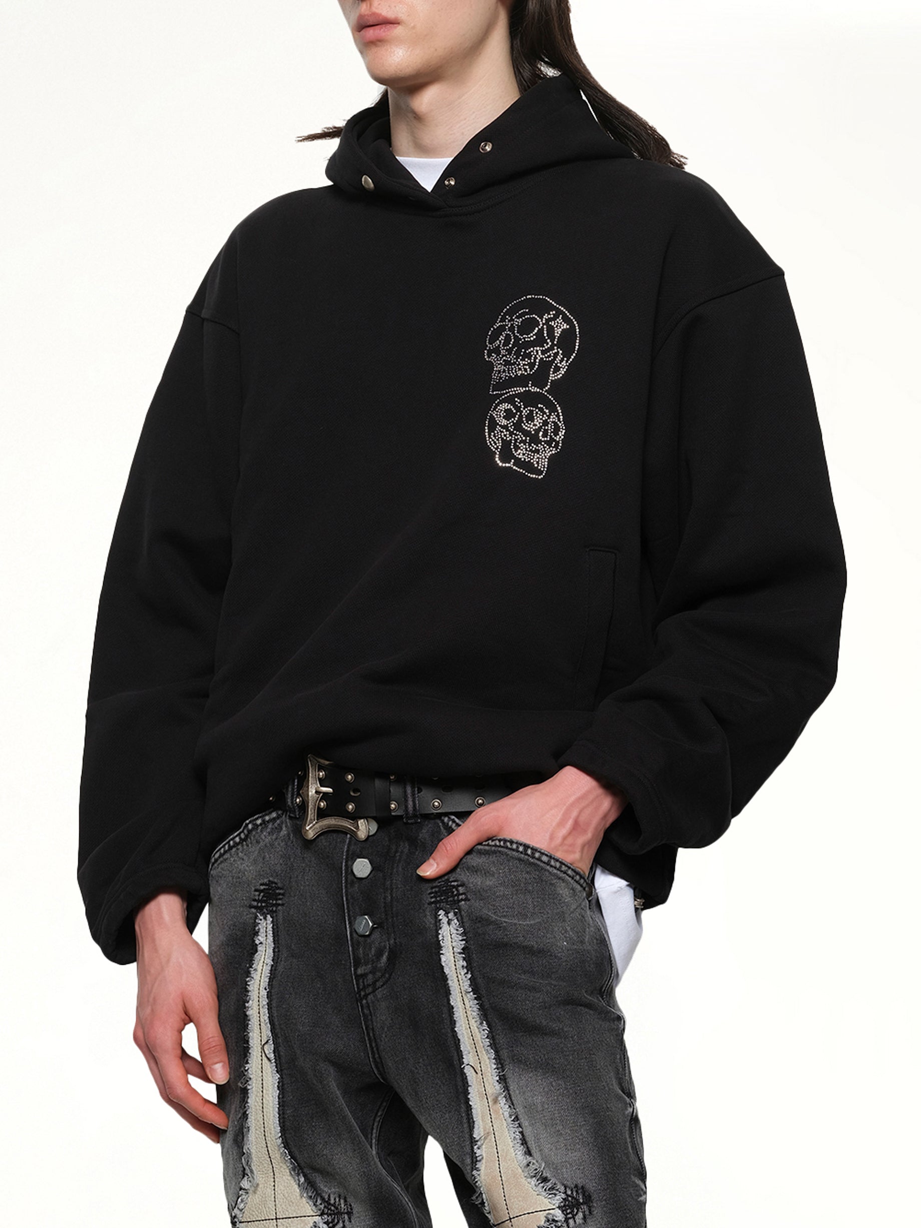 - Black hoodie with crystal embellishments