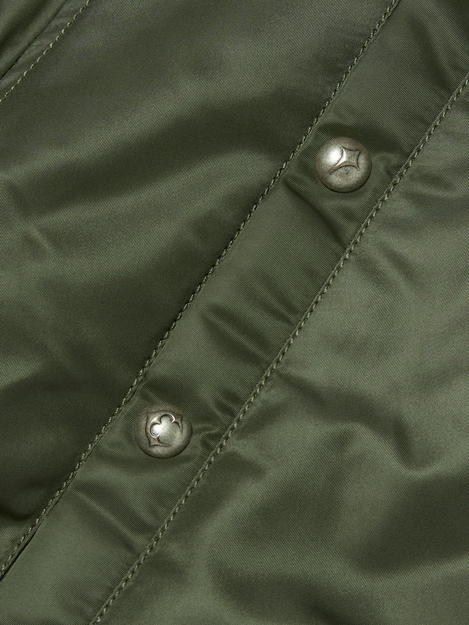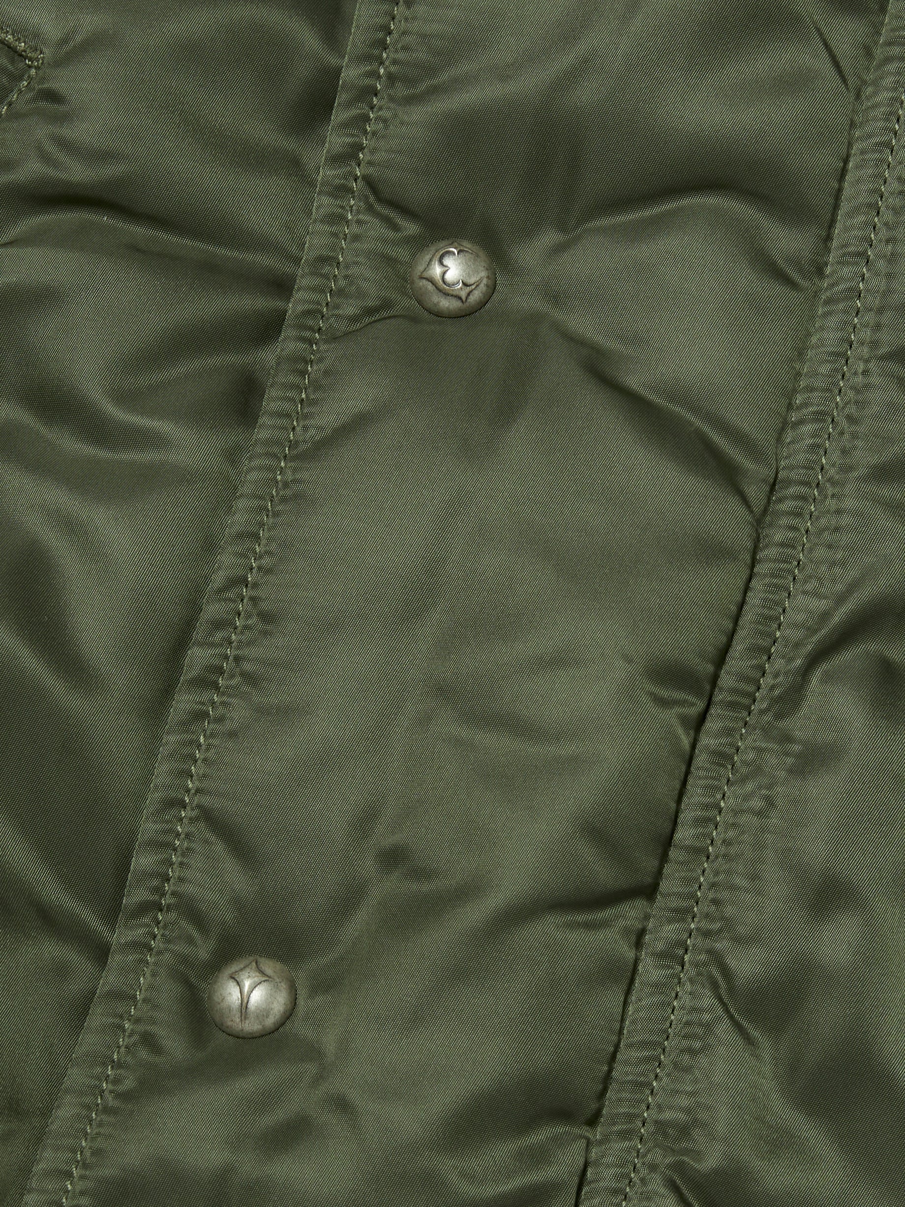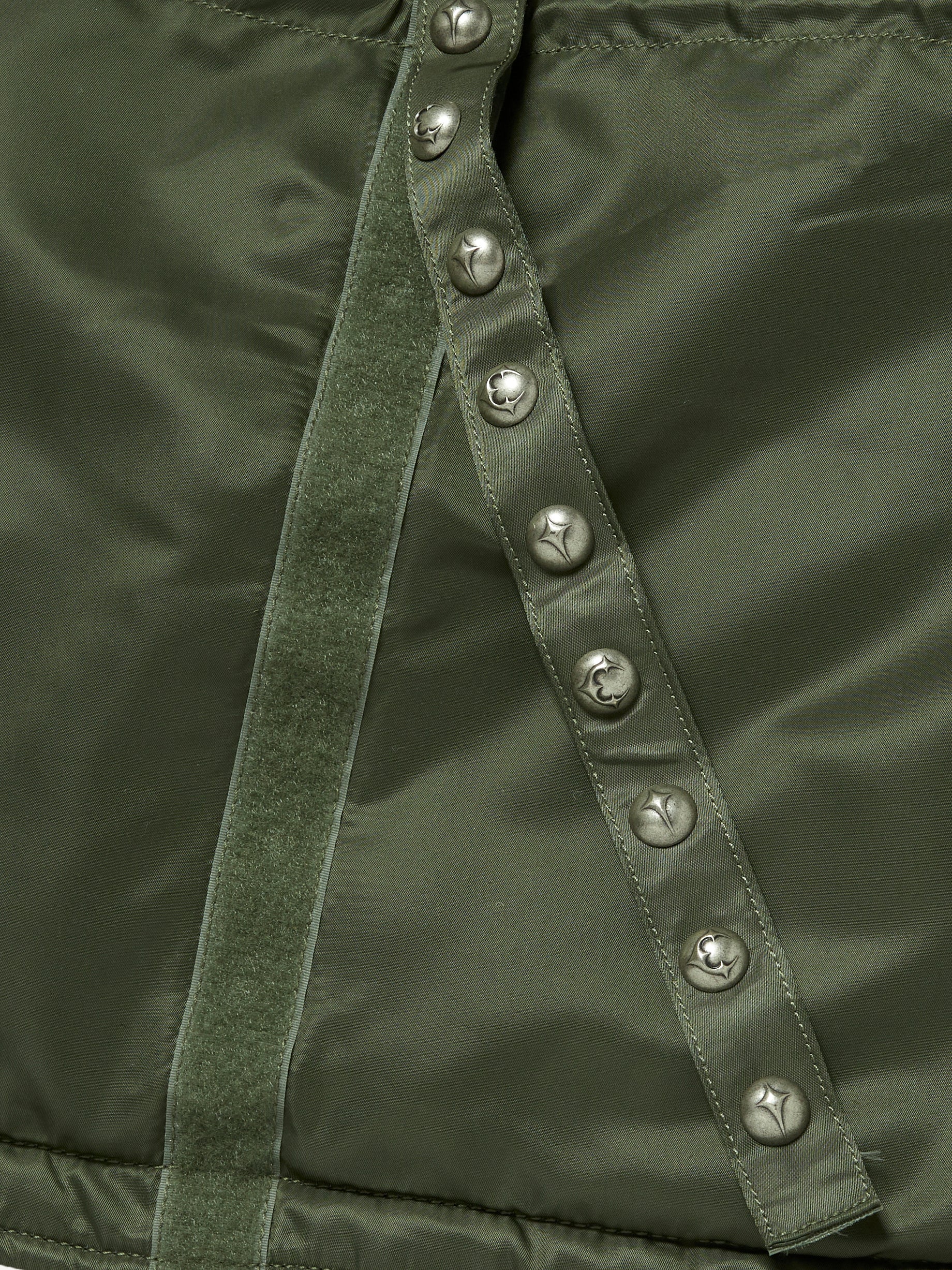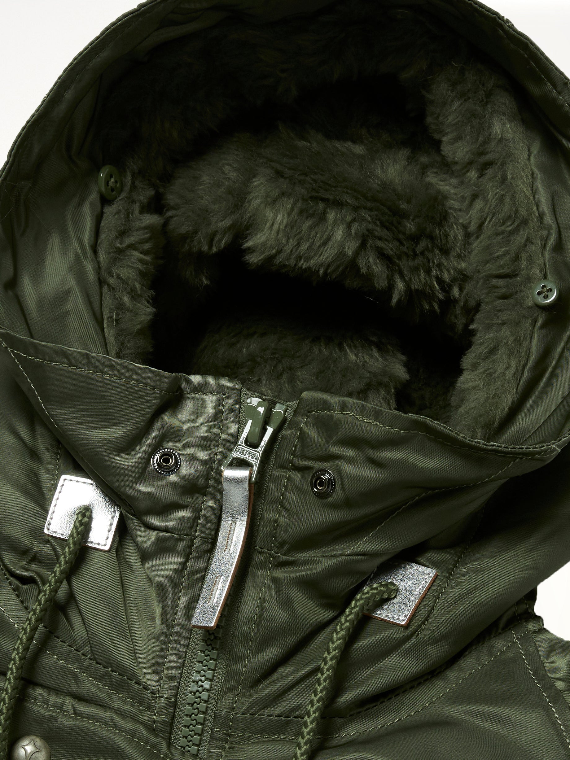 - Features a full-length zip closure with a buttoned storm flap for added protection against the elements.