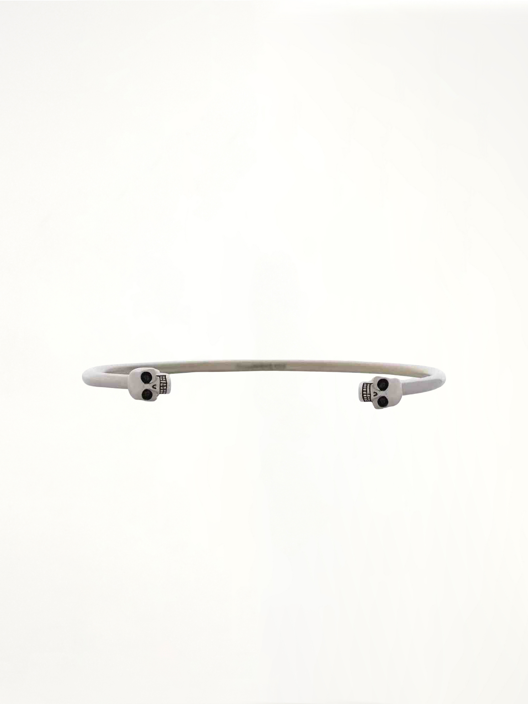 Single wrap bracelet in black with gold-tone hardware, pendant skull medallion and buckle closure