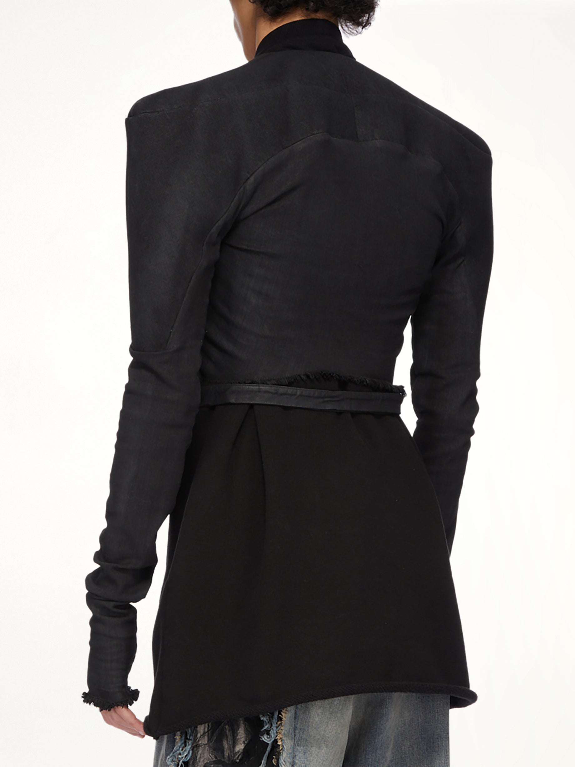 Rick Owens's Tight Jacket in Black is a sleek and modern piece that embodies the designer's signature avant-garde style. This jacket offers a fitted silhouette, perfect for adding an edge to any outfit.