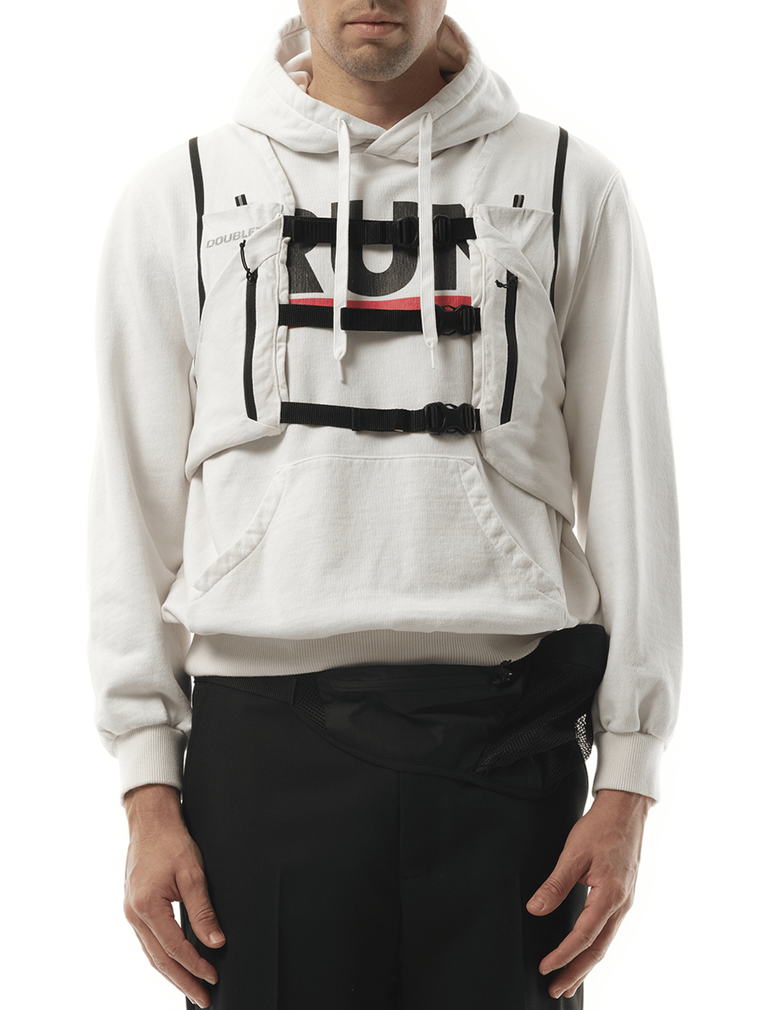 Introducing our Trail Vest Hoodie in White. This versatile garment is crafted with premium materials to provide maximum comfort and durability on your outdoor adventures. The innovative design features a built-in vest for added warmth and protection against the elements.