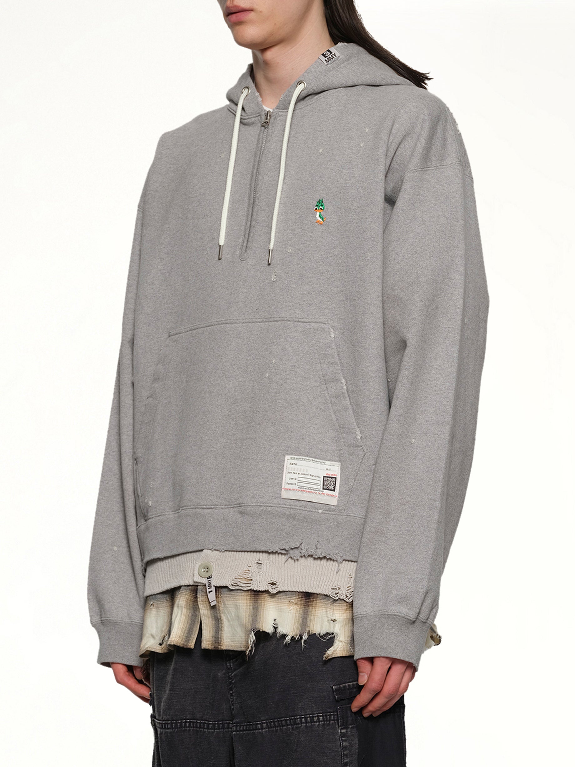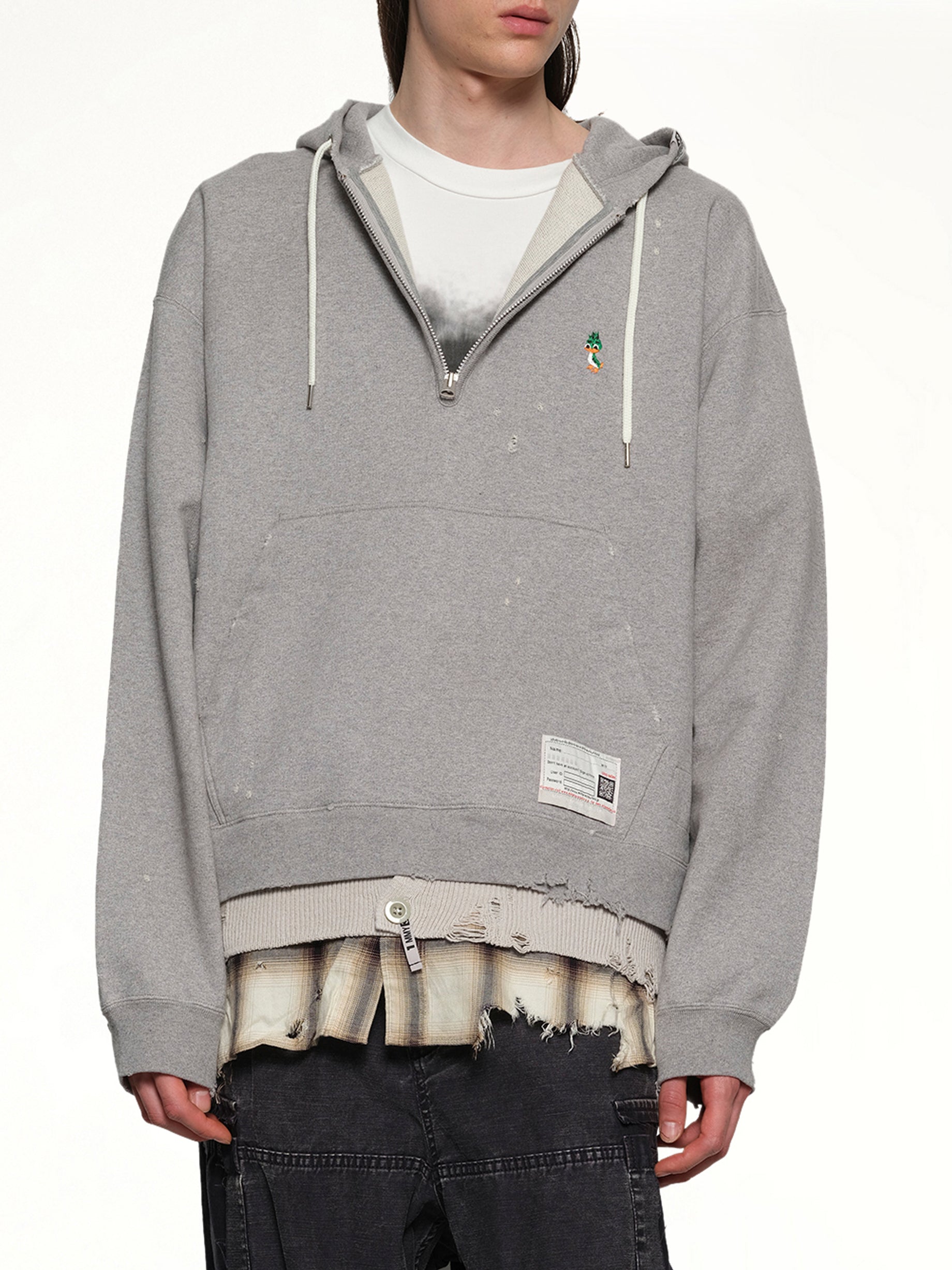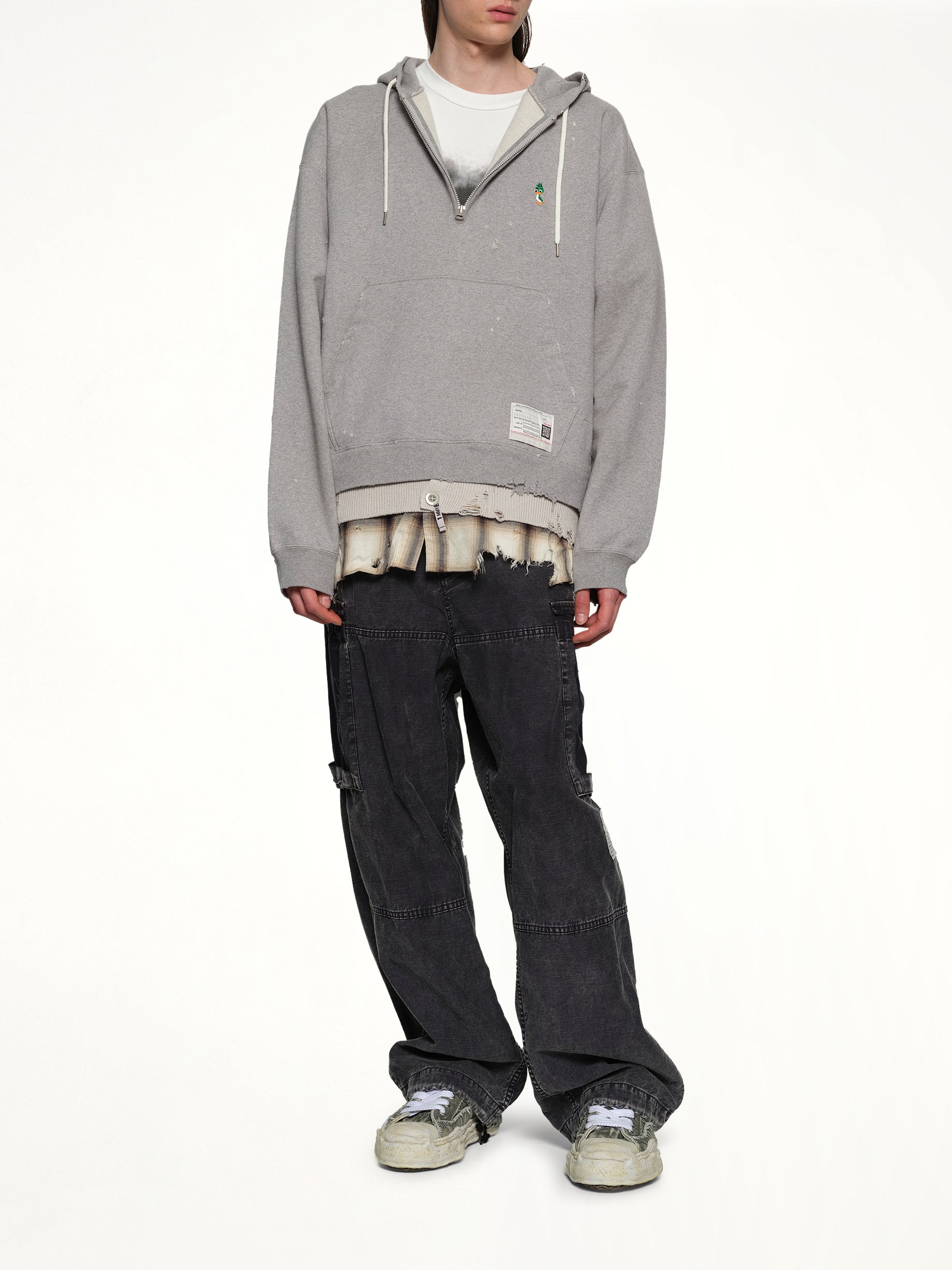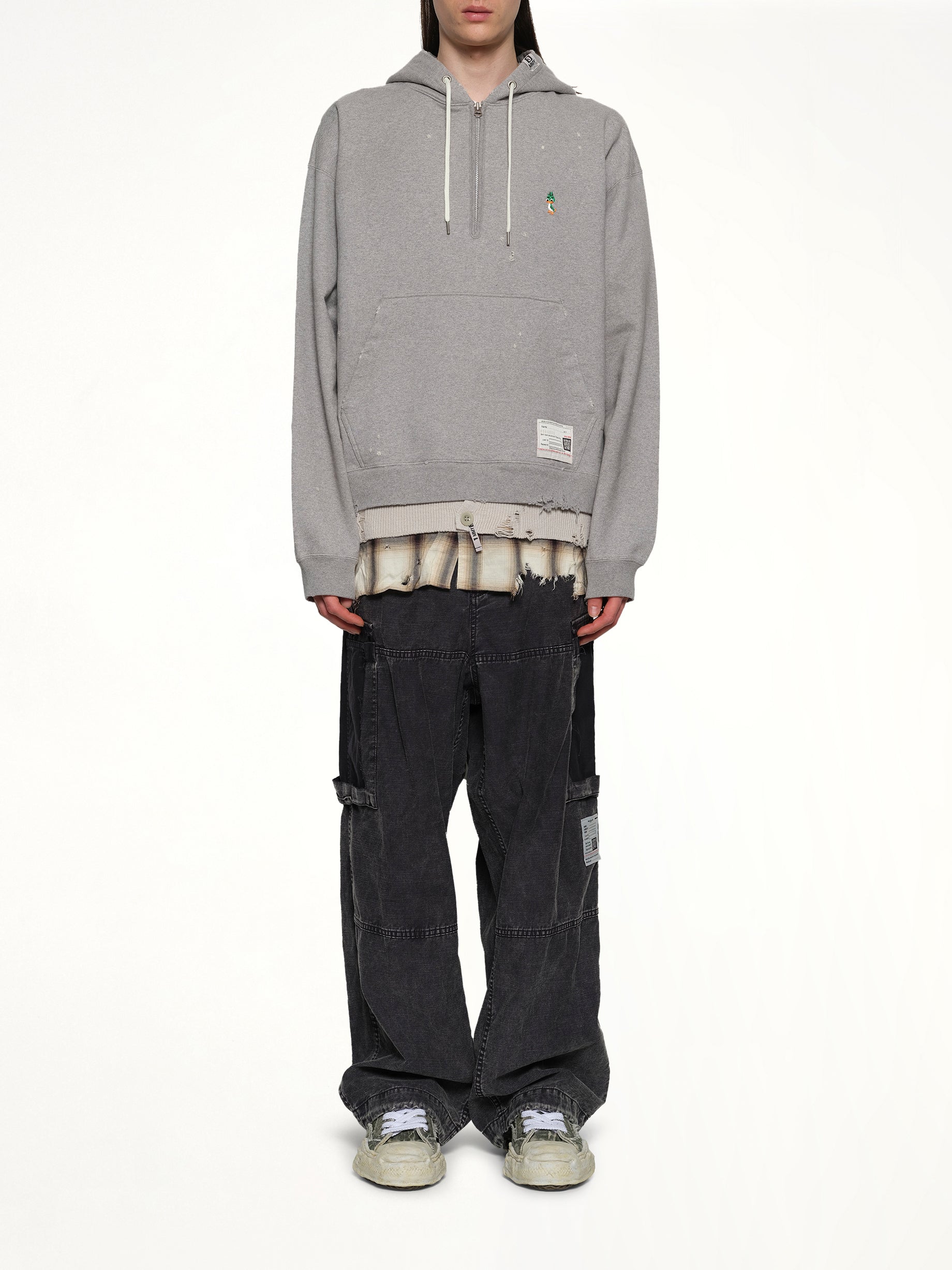 Maison Mihara's Triple Layered Half Zip Hoodie in Gray is a stylish and versatile piece that combines comfort with a modern aesthetic. This hoodie features a unique triple-layered design, offering both warmth and a distinctive look.