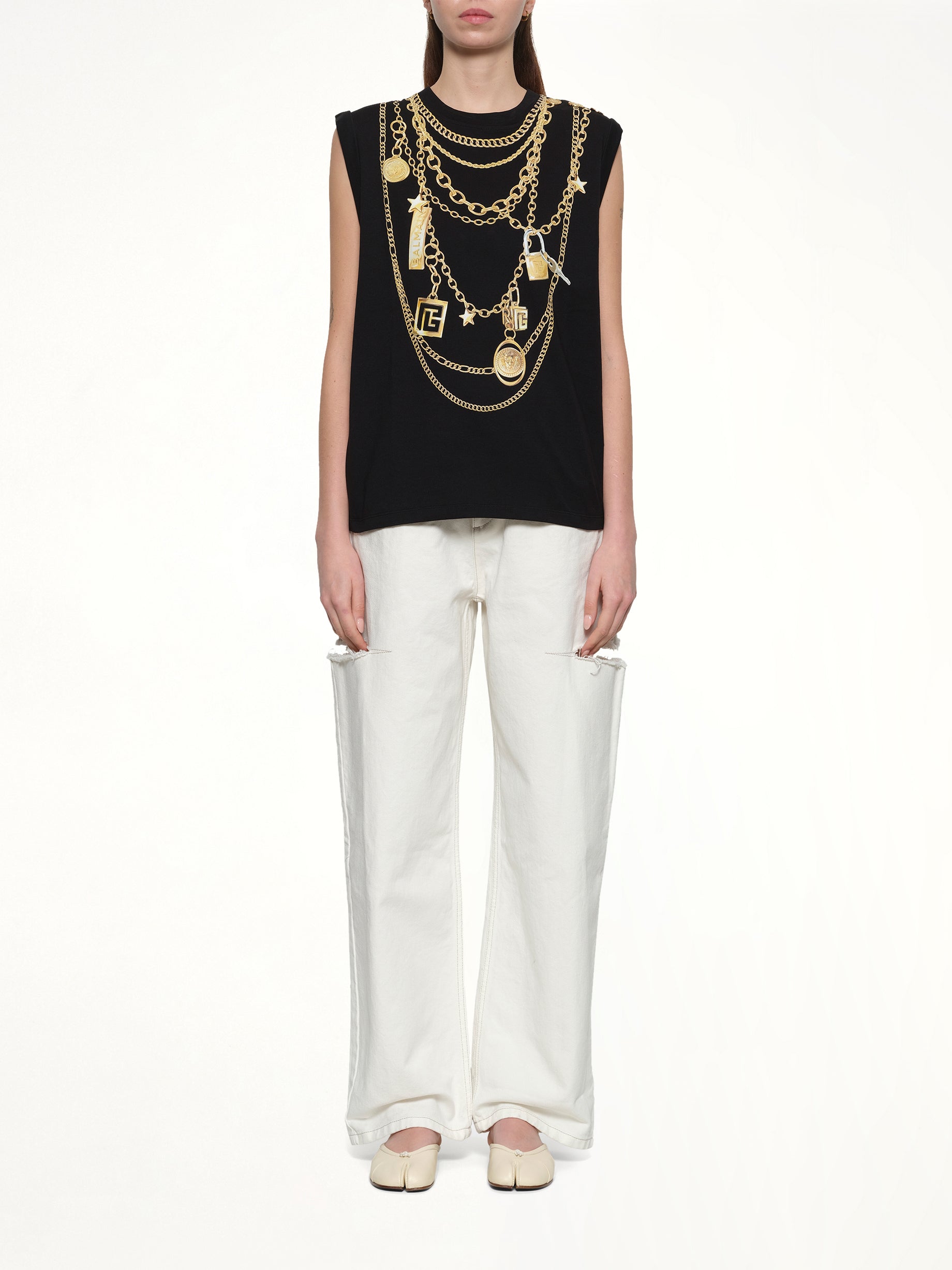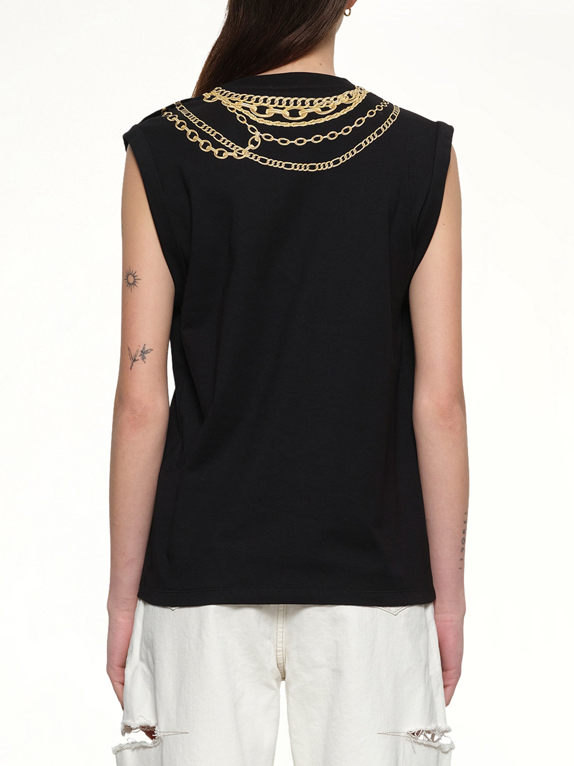 Trompe L'Oeil Necklace Print Tank Top in Black/Gold