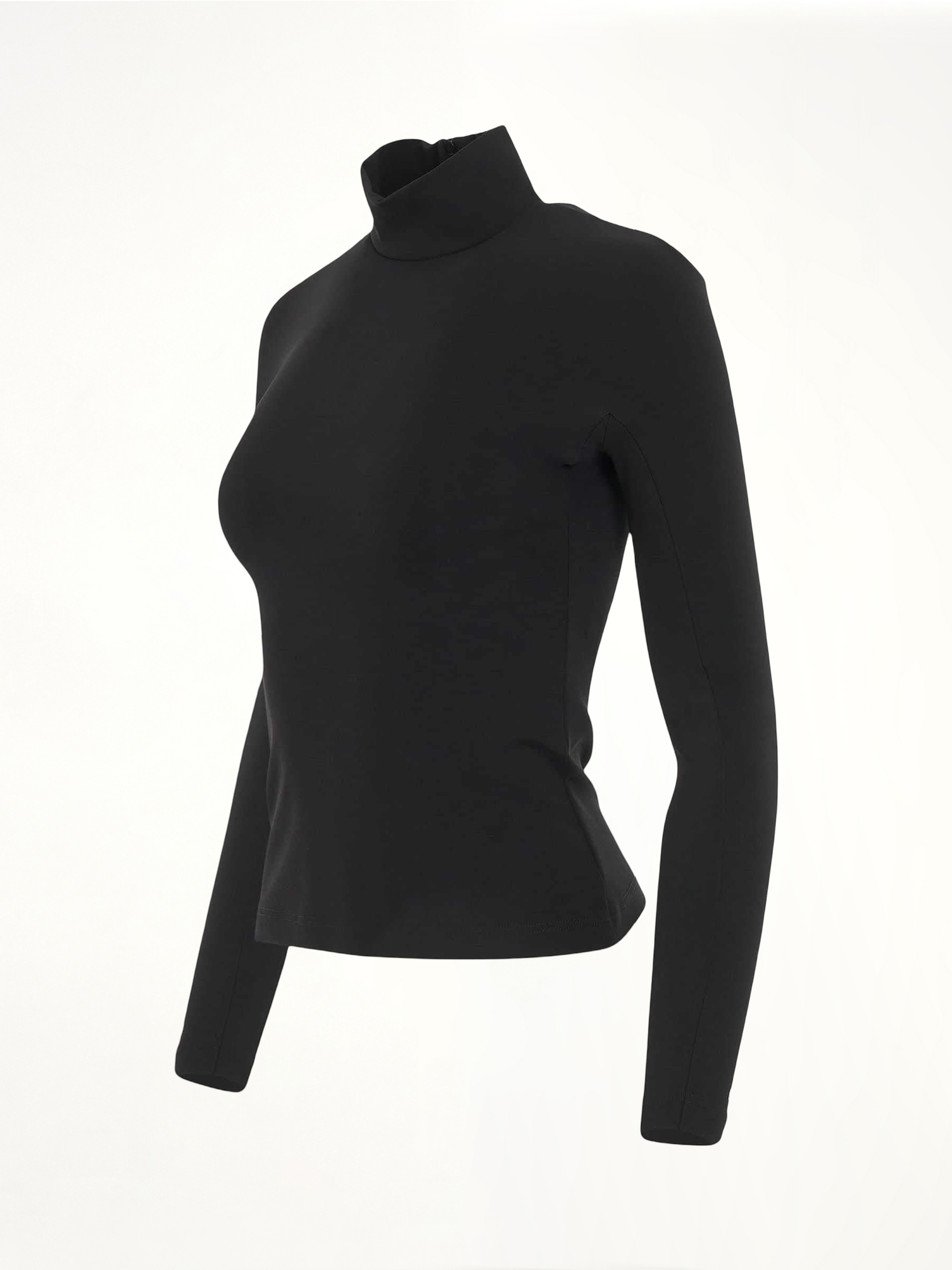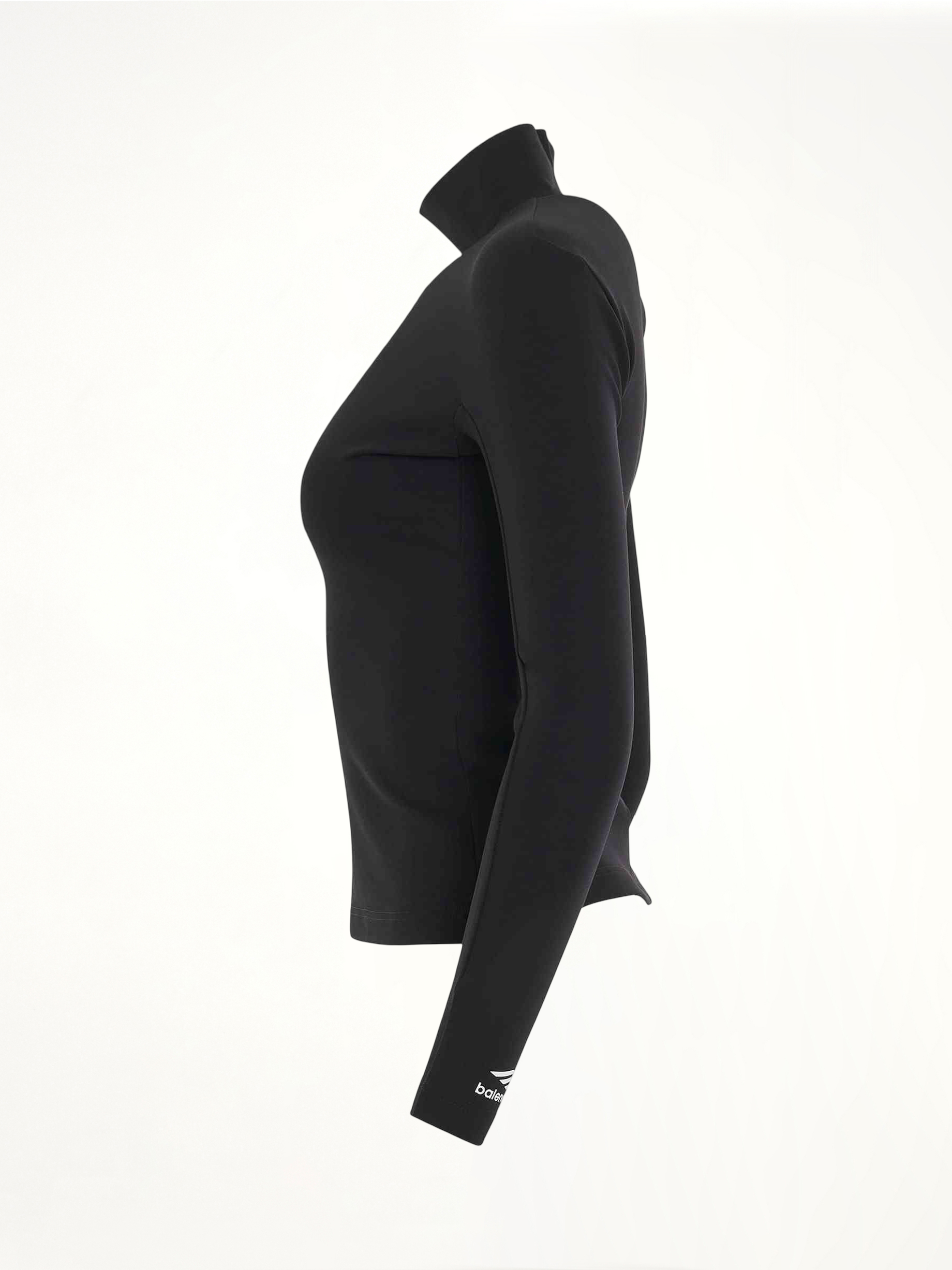 Long sleeves turtleneck in black with concealed rear zip fastening, stretch-design, logo print at the sleeve and roll neck