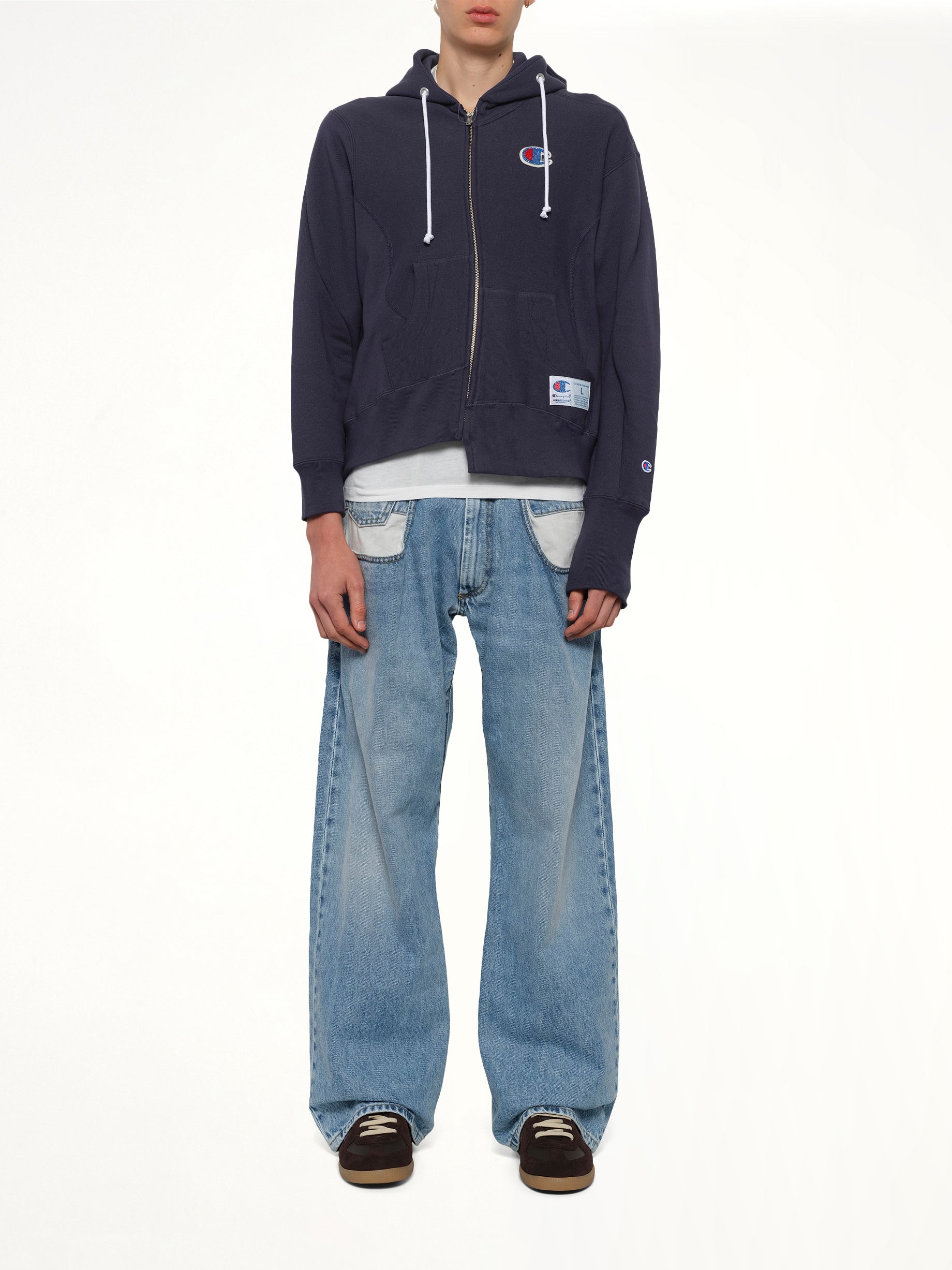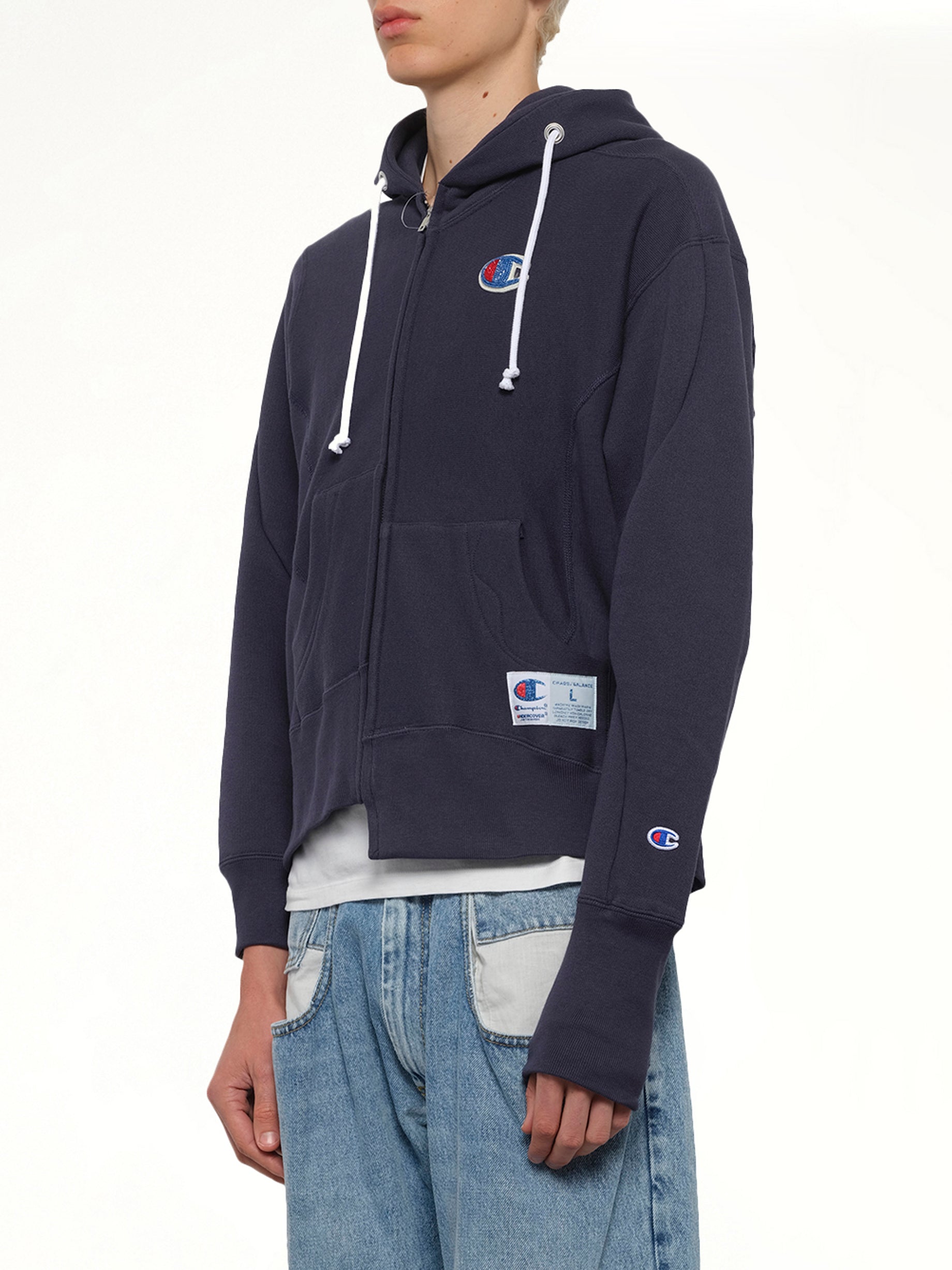 Undercover x Champion's Undercover X Champion Zip Hoodie in Navy is a stylish and versatile piece that combines the unique design elements of Undercover with the classic athletic appeal of Champion. Perfect for casual wear, this hoodie offers both comfort and a modern aesthetic.