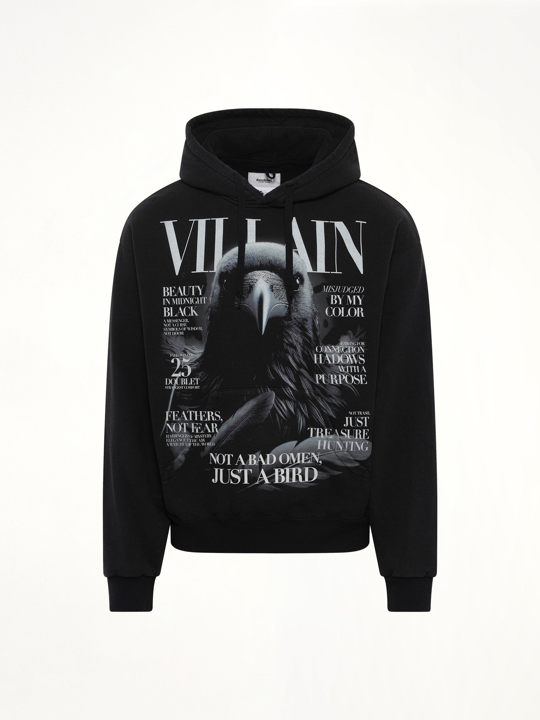 Doublet's Villain Cover Print Hoodie in Black is a bold statement piece that combines streetwear aesthetics with a unique graphic design. This hoodie features a striking villain cover print that adds an edgy touch to any outfit.