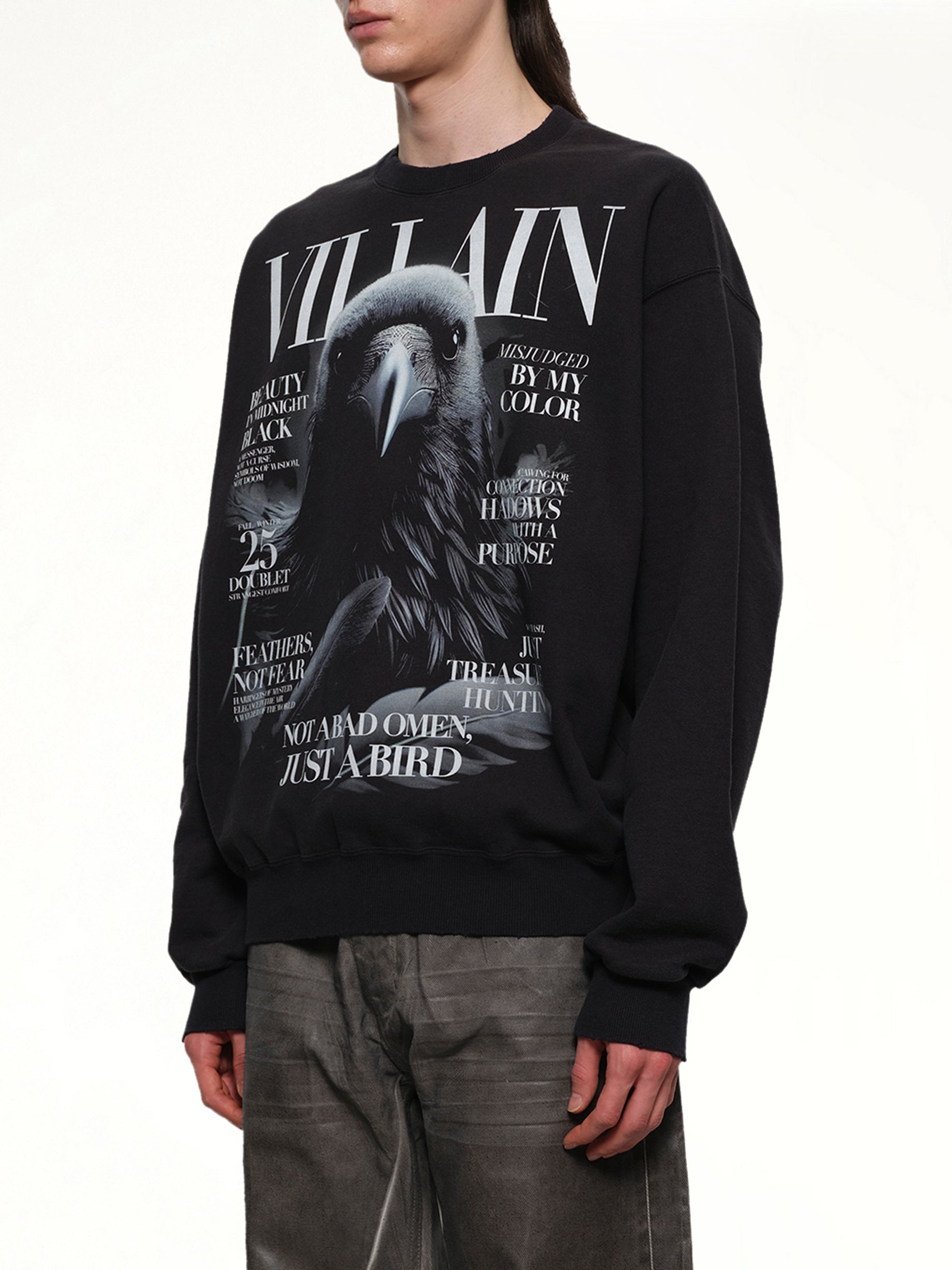 Doublet's Villain Cover Print Sweat Shirt in Black is a bold statement piece that combines comfort with a unique design. Perfect for those who want to stand out, this sweatshirt features a striking graphic that captures attention.