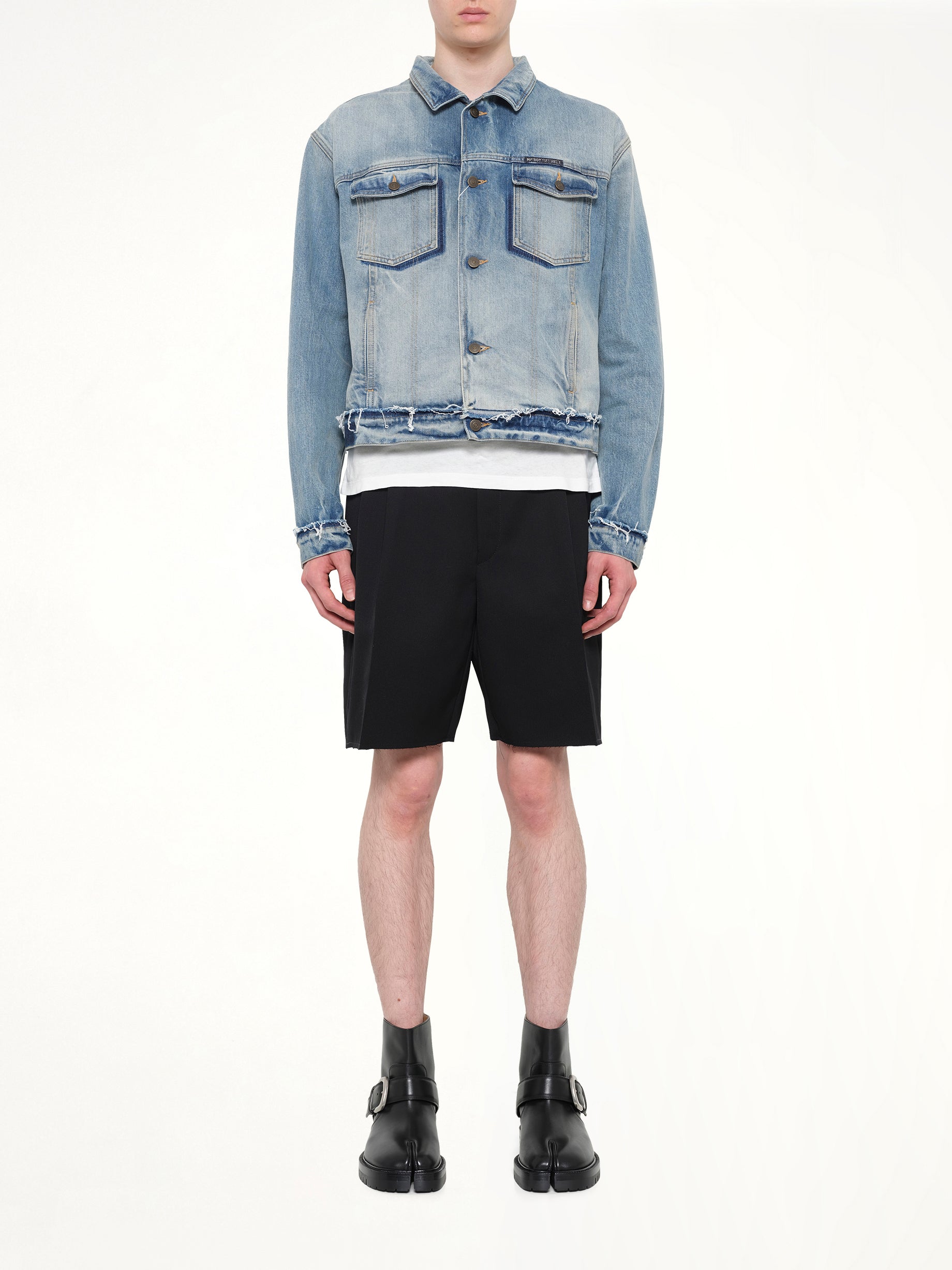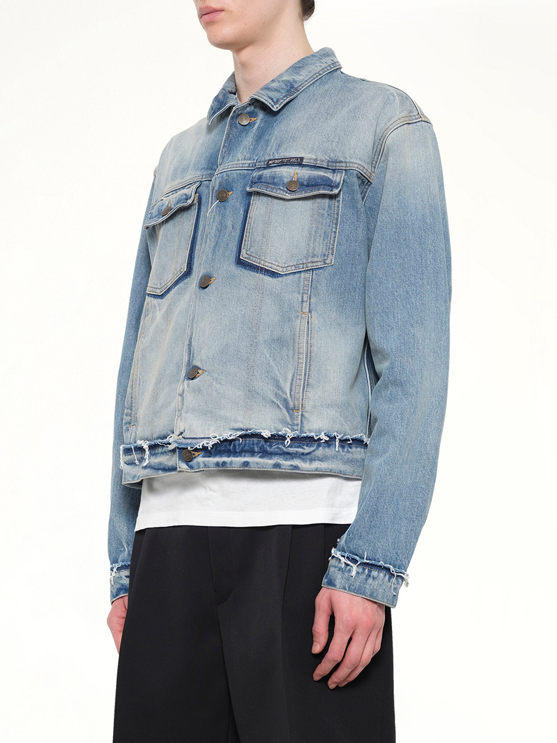 Maison Margiela's Washed Denim Jacket in Blue is a stylish and versatile piece that adds a touch of sophistication to any wardrobe. This jacket features a classic design with a modern twist, making it perfect for both casual and semi-formal occasions.