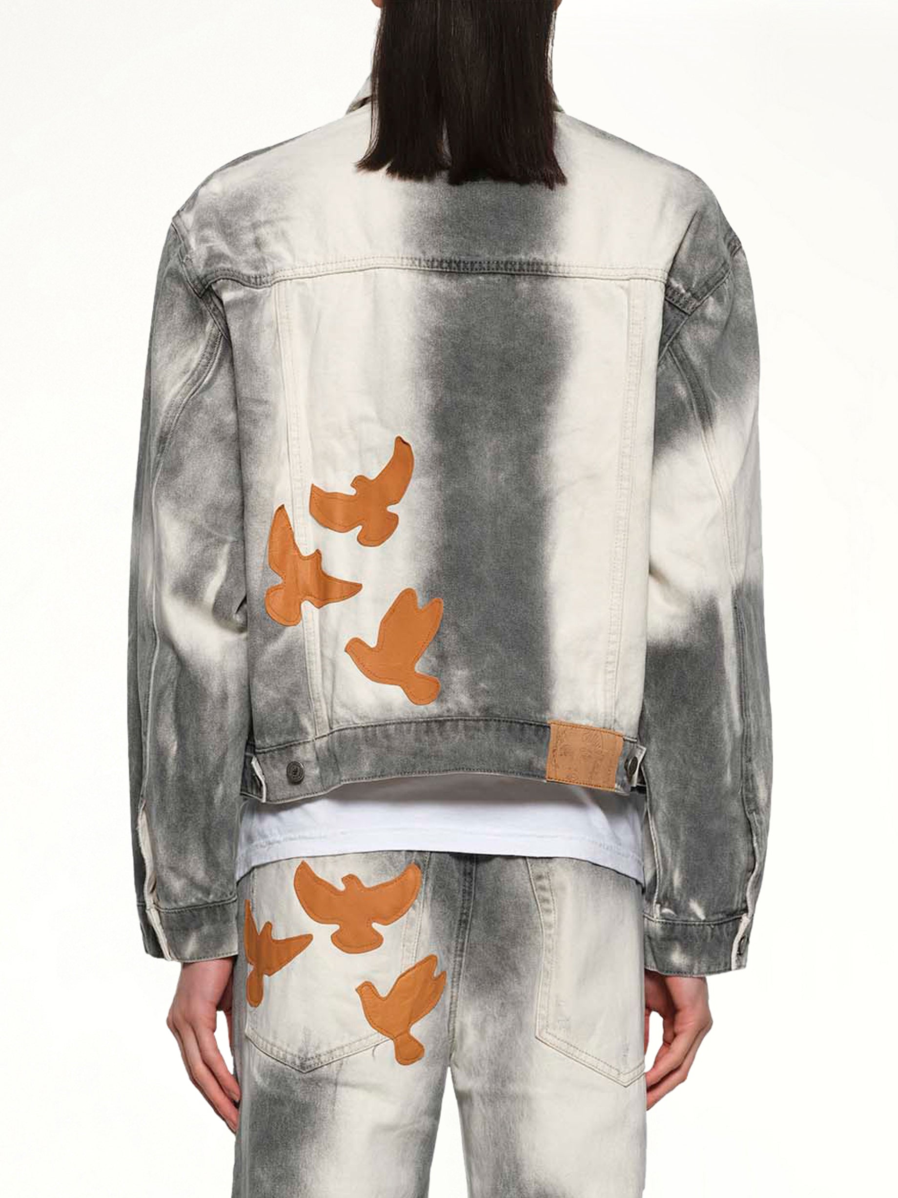 Kid Super's Washed Doves Denim Jacket in White is a stylish and versatile piece that adds a unique touch to any wardrobe. This jacket features a distinctive washed effect and intricate dove detailing, making it a standout choice for fashion-forward individuals.