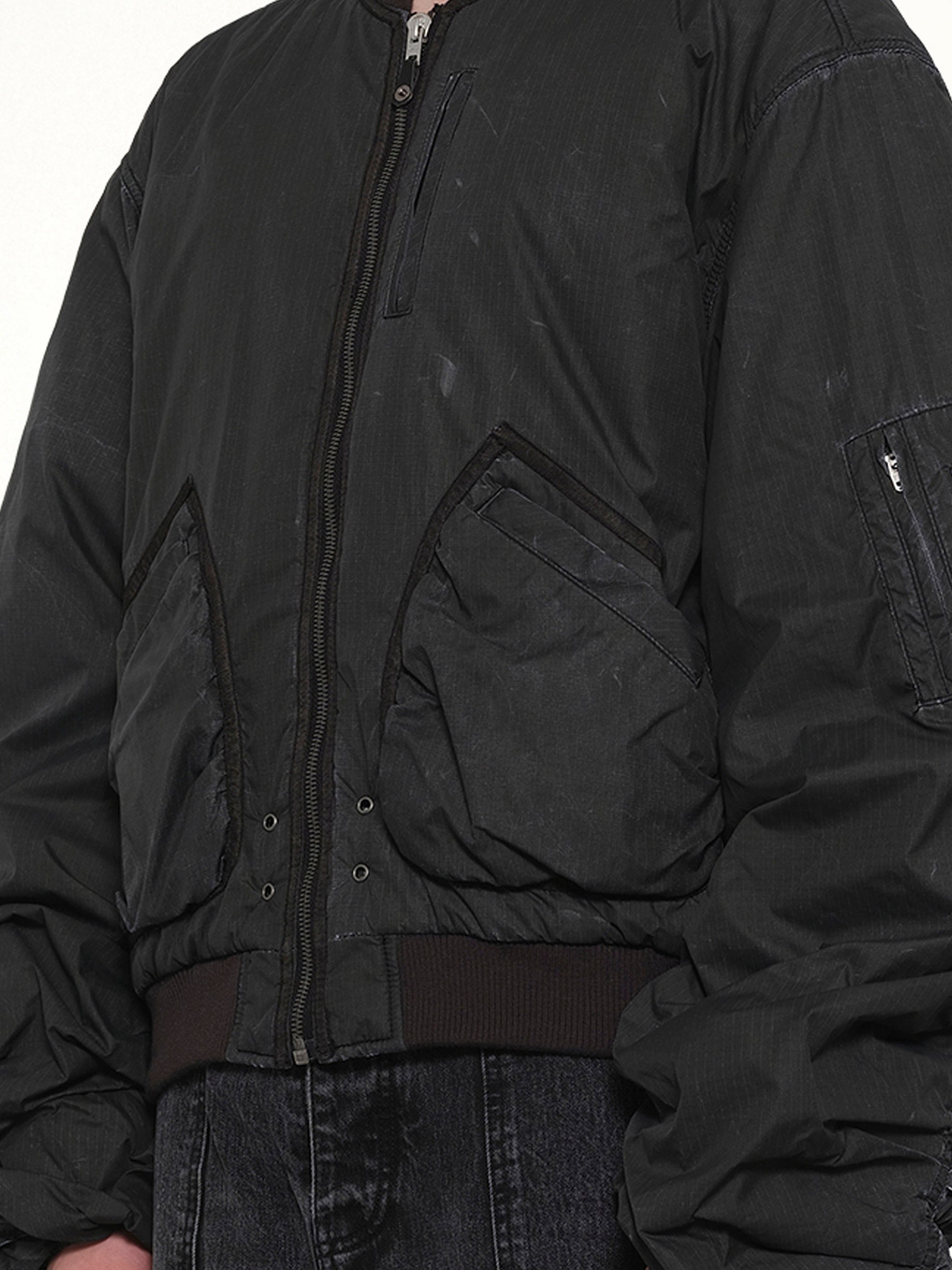Washed Nylon Bomber in Black