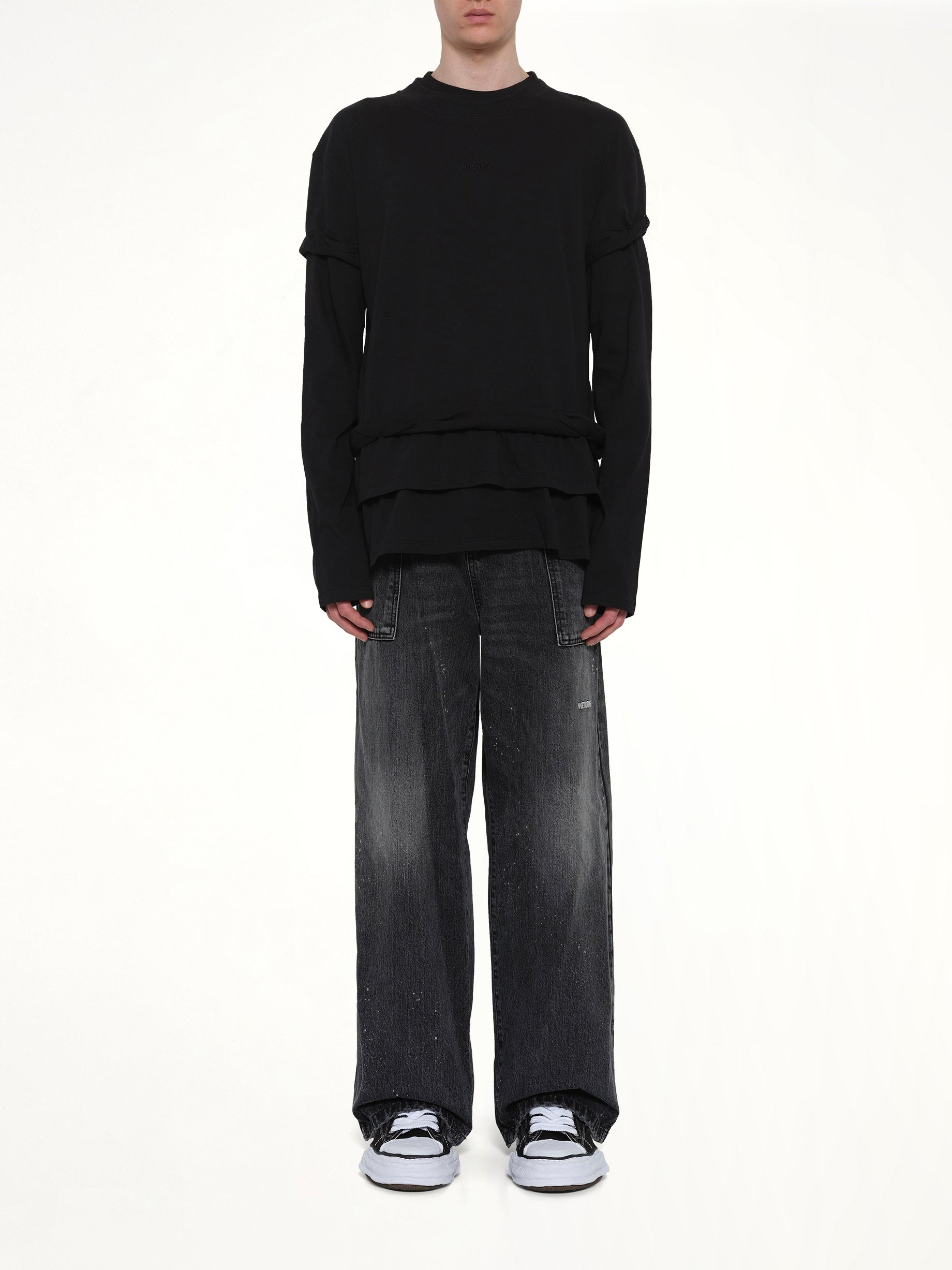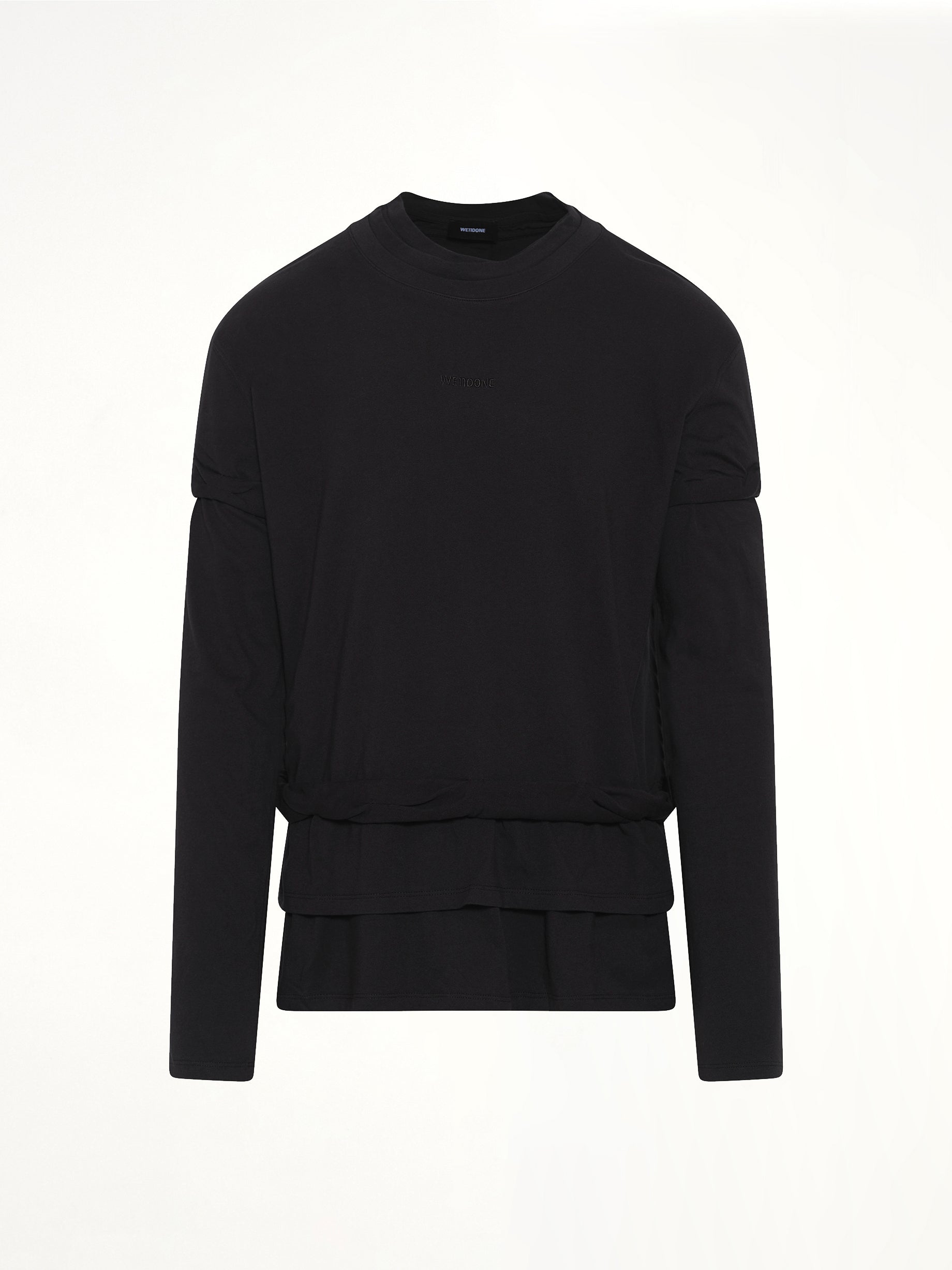 We11done's We11Done Triple-Layered T-Shirt in Black is a unique and stylish addition to any wardrobe. This t-shirt features a distinctive triple-layered design that adds depth and dimension to your look.