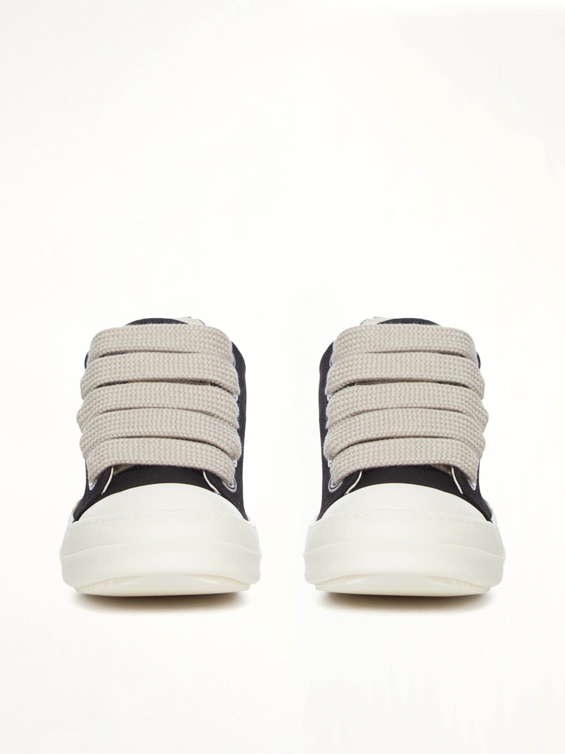 Rick Owens DRKSHDW's Womens Jumbolace Low Sneaks in Black/Milk is a bold and stylish footwear choice that combines comfort with a distinctive design. These sneakers feature a unique lace-up style that stands out in any casual ensemble.