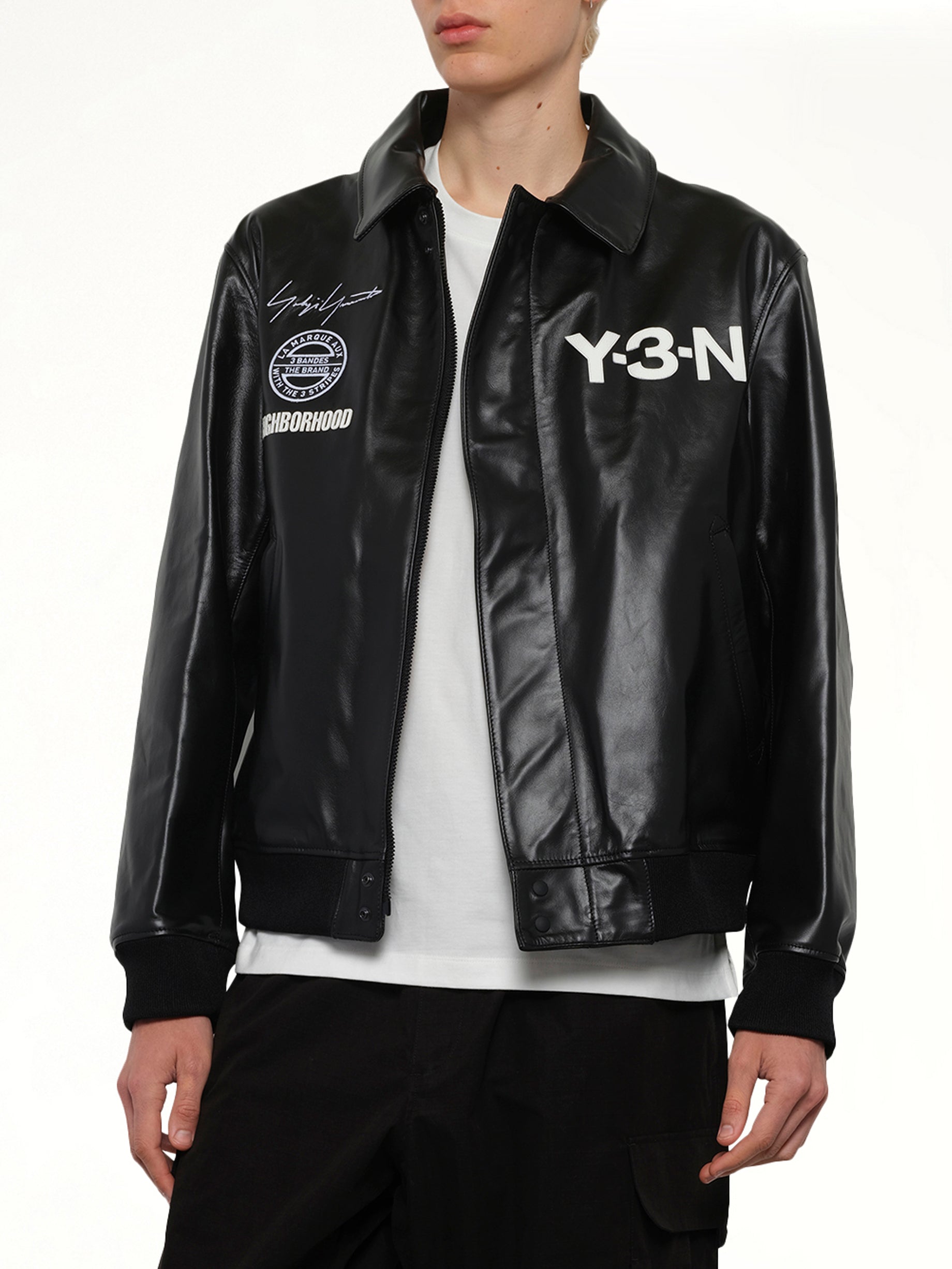 Y-3 x NBHD - Leather Bomber Jacket in Black