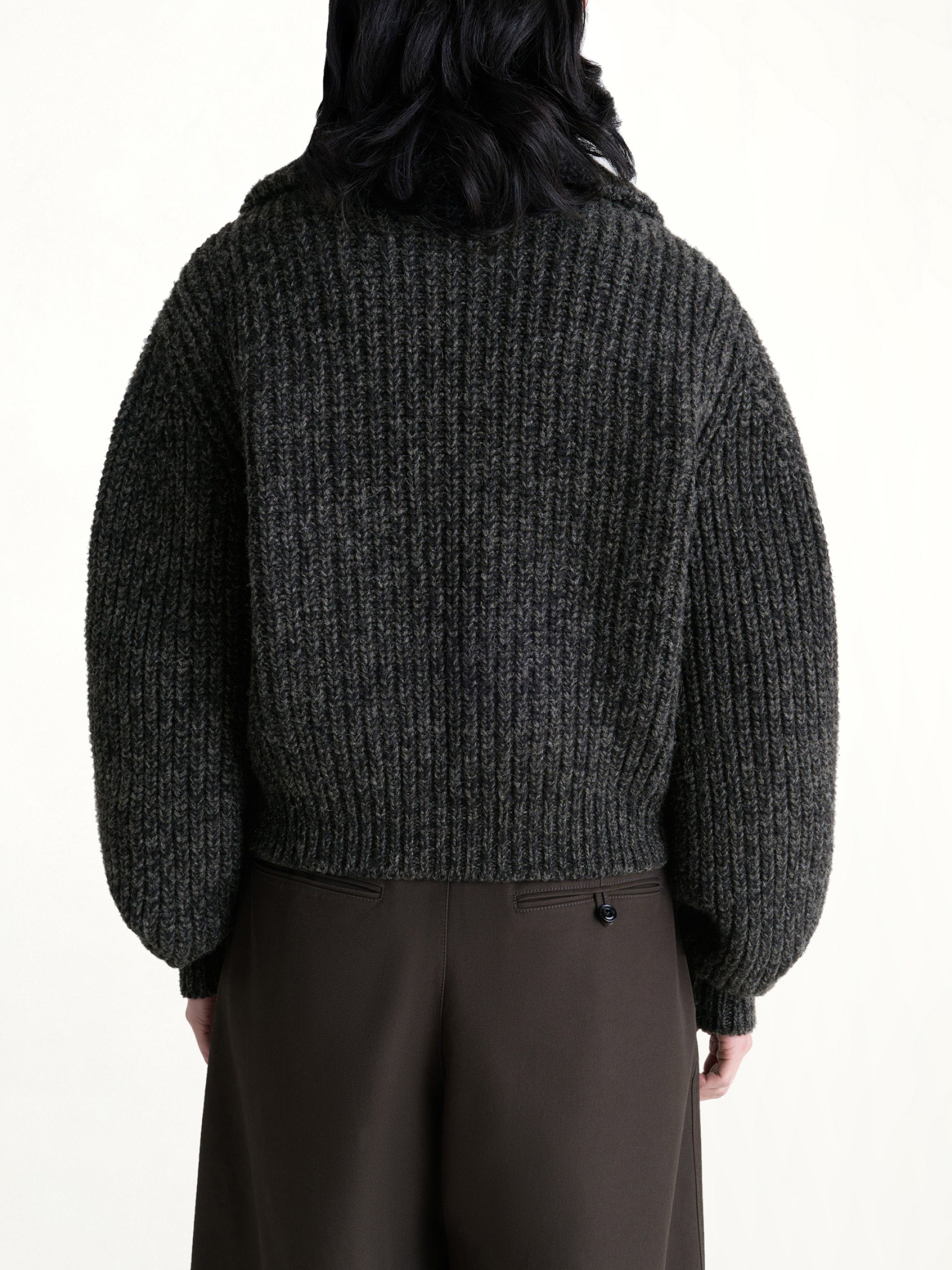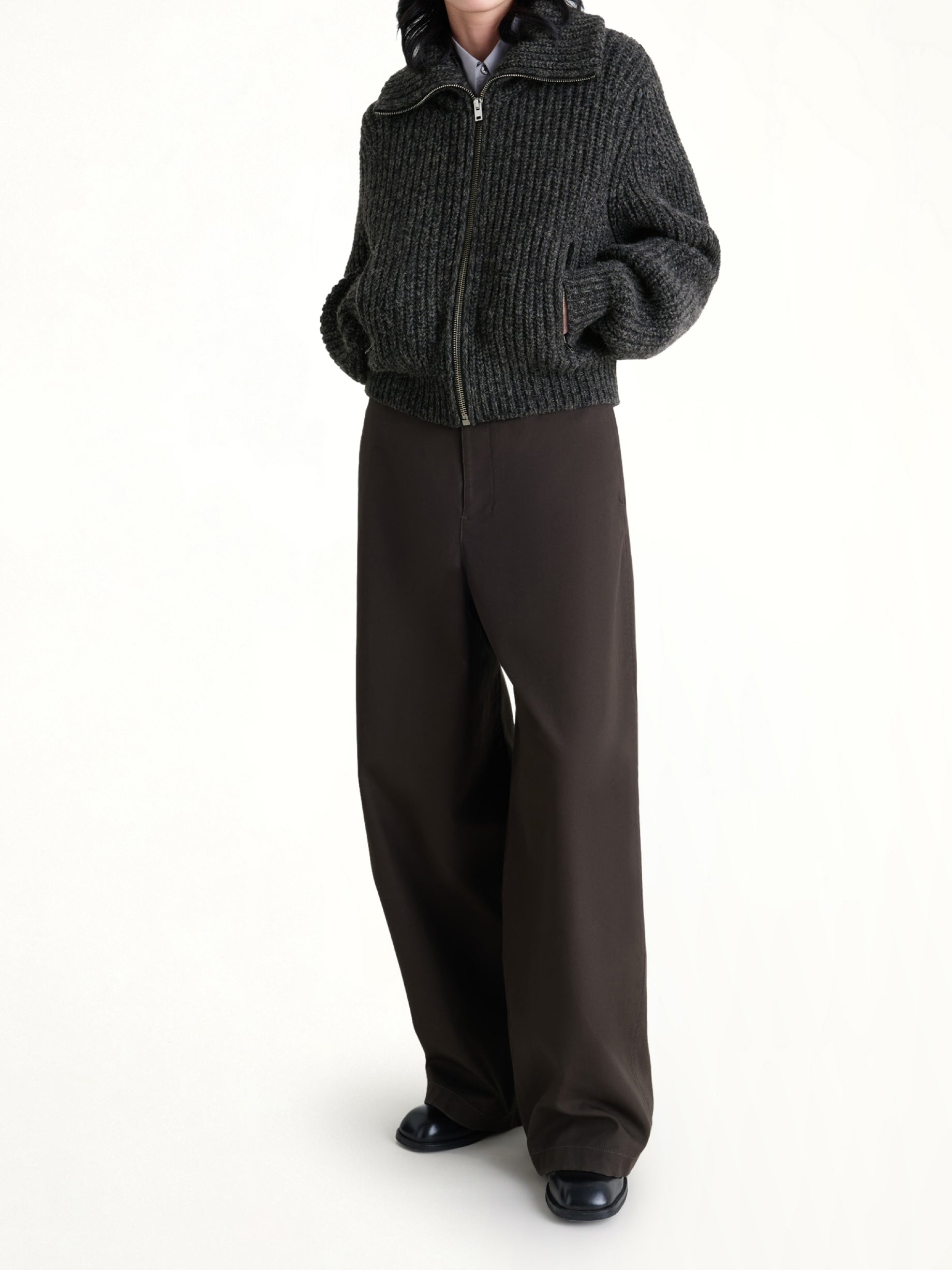 Lemaire's Zipped Cardigan in Black / Mink Brown is a versatile and stylish addition to any wardrobe. This cardigan combines a sleek design with practical features for everyday wear.