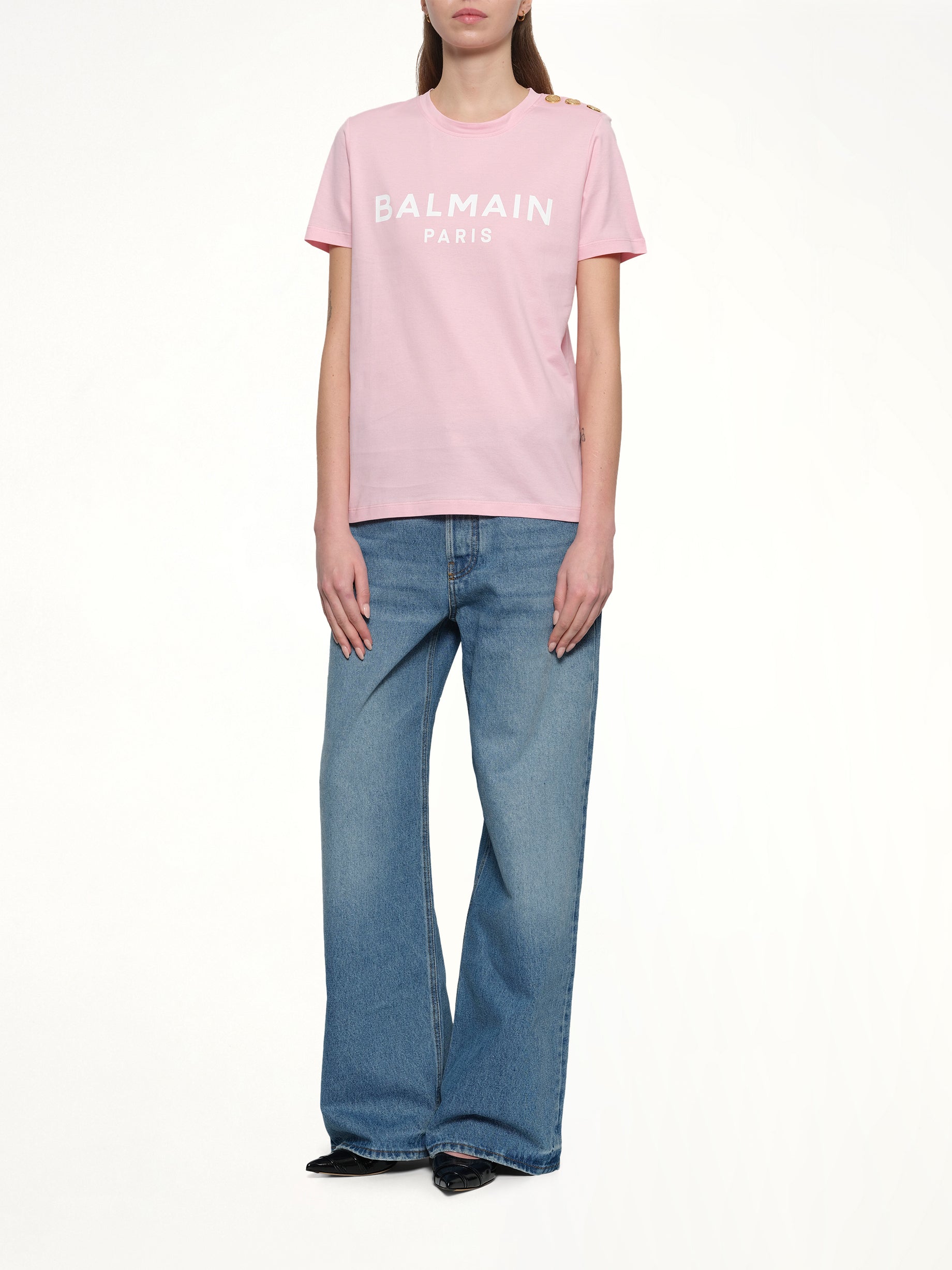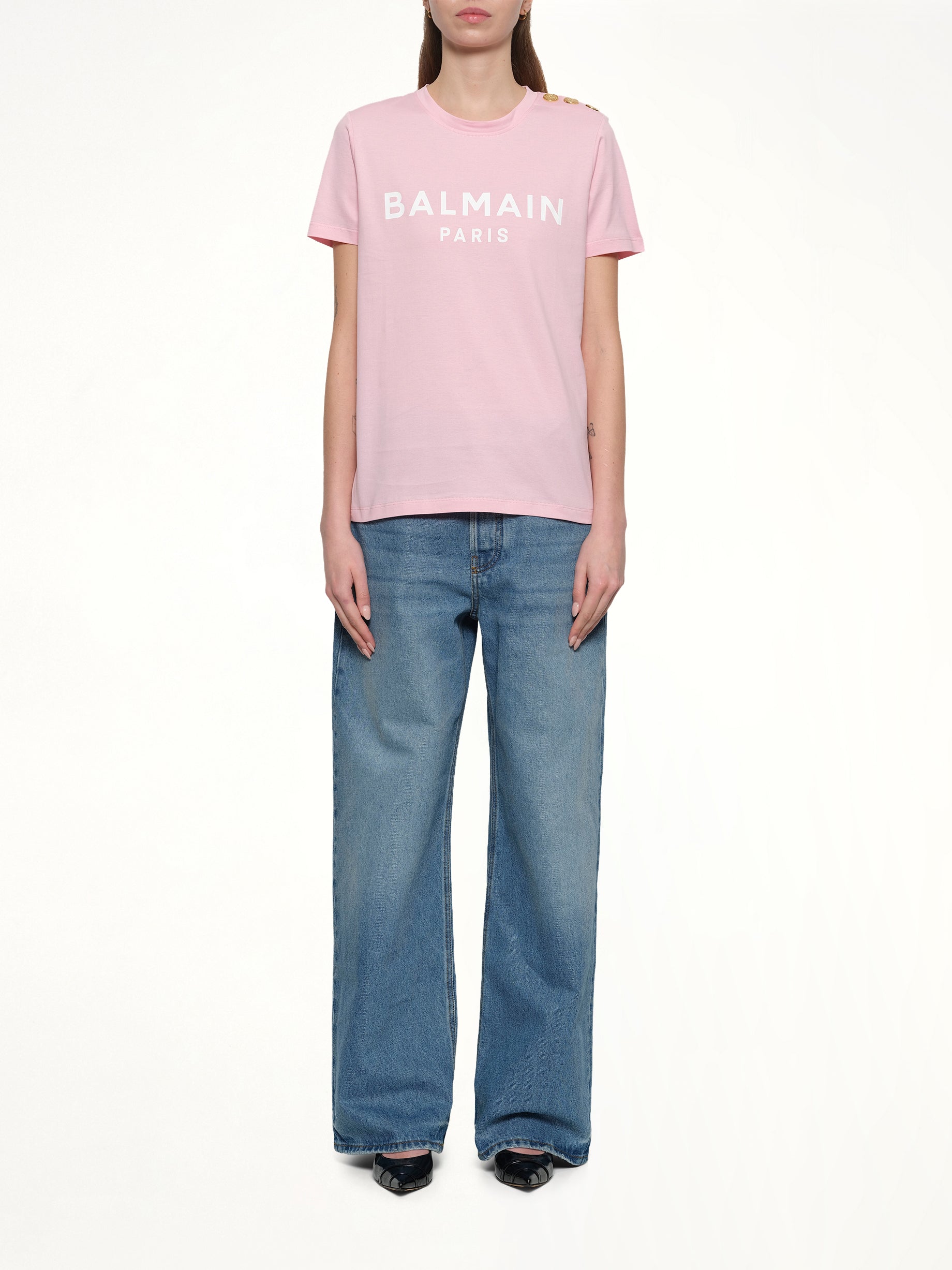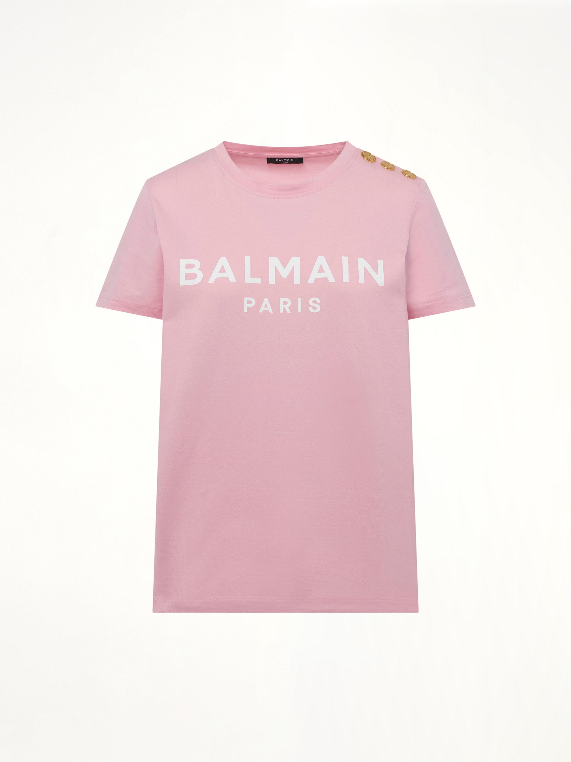 Balmain's 3 BTN Balmain Printed T-Shirt in Rose/White is a stylish and versatile addition to any wardrobe. This t-shirt features a bold print and a comfortable fit, perfect for casual outings or layering.