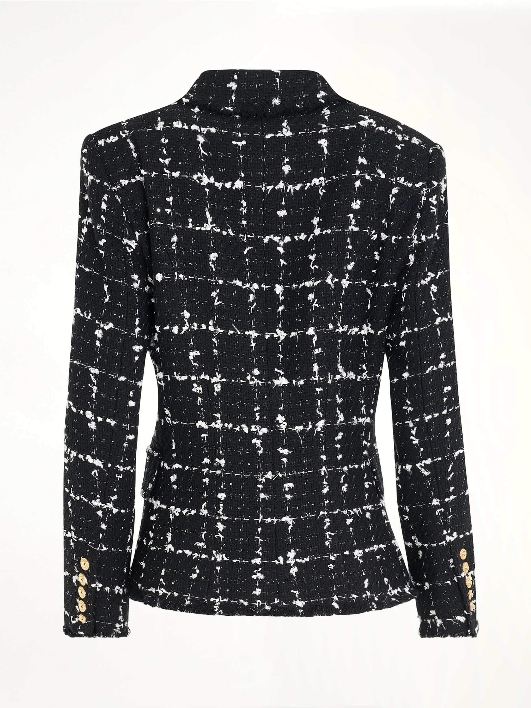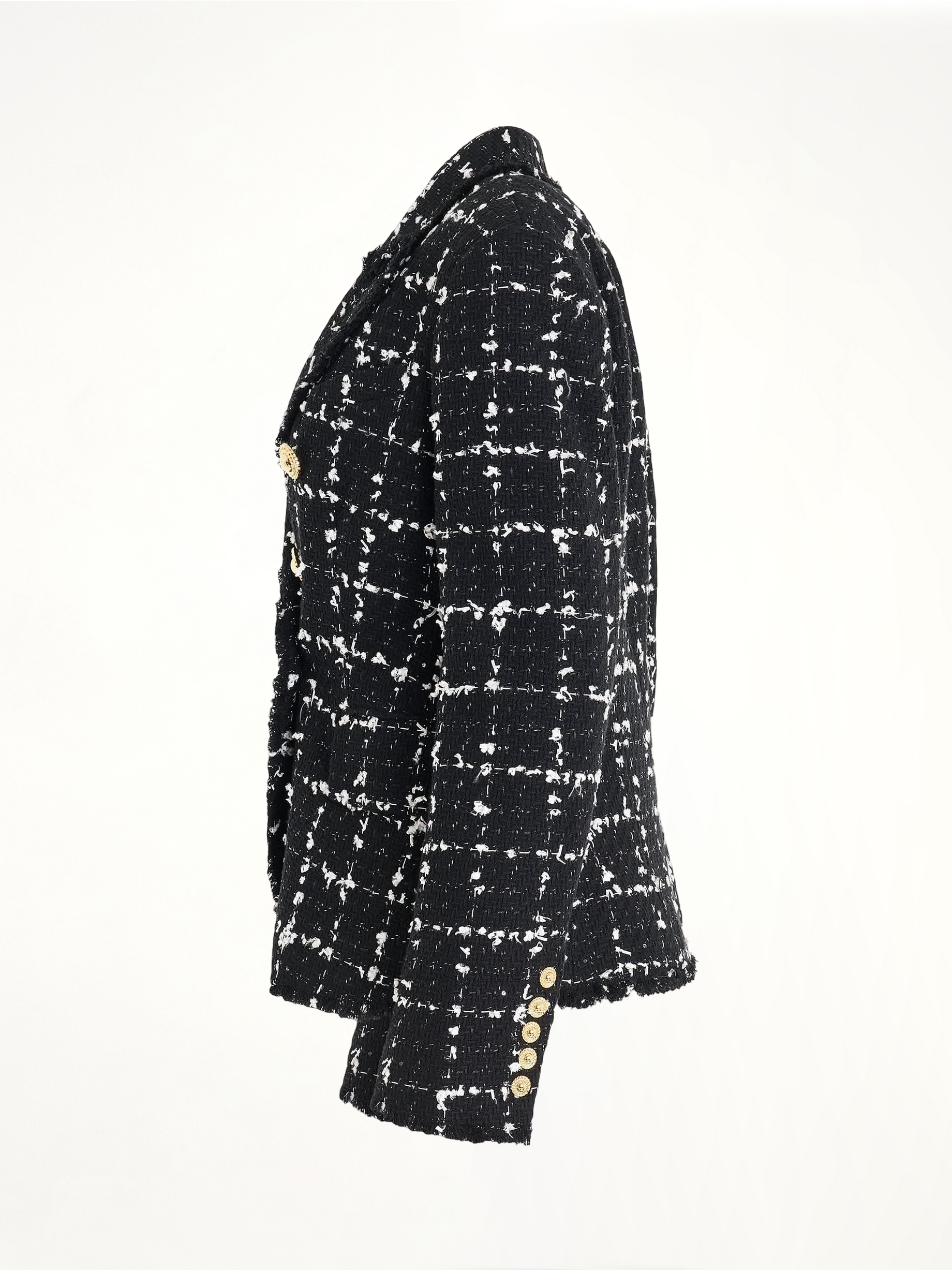 6 Button Double Breasted Tweed Jacket in Black/White/Silver