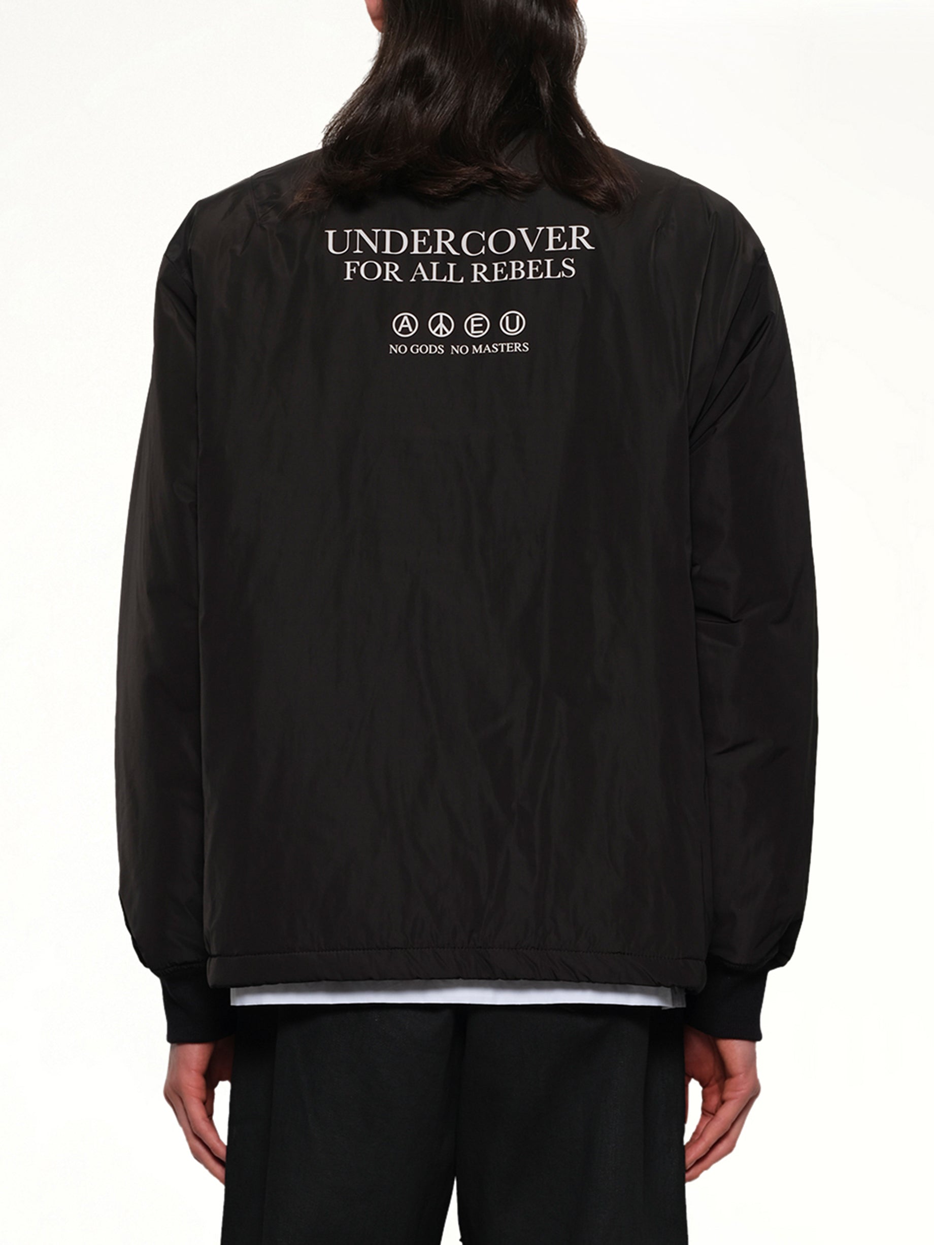Undercover's All Rebels Coach Jacket in Black is a stylish and versatile outerwear piece that embodies a rebellious spirit. Perfect for adding an edge to any outfit, this jacket combines functionality with a sleek design.