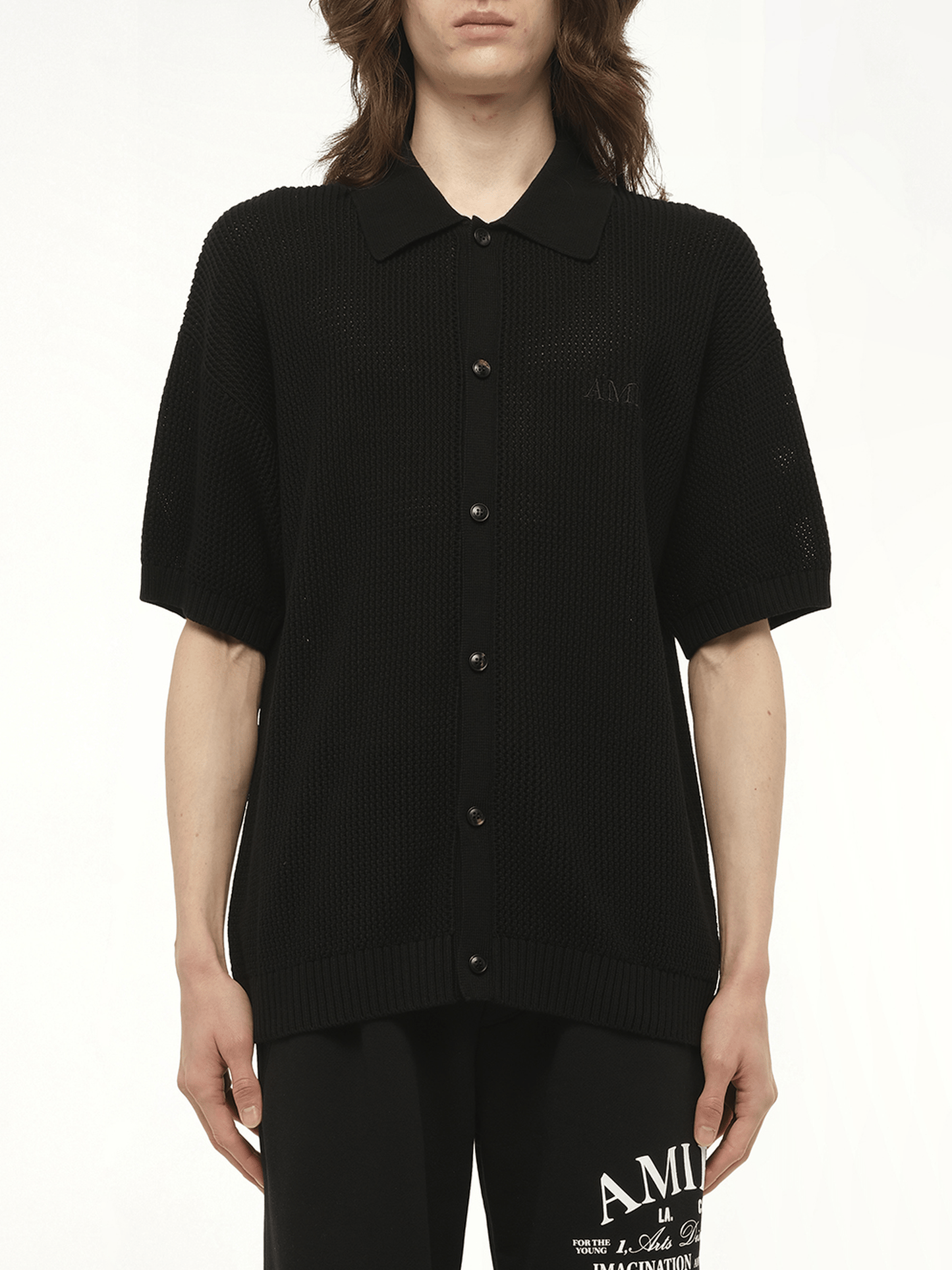 AMIRI's Amiri Crochet Mesh Shirt in Black is a statement piece that combines intricate crochet detailing with a modern silhouette. Perfect for elevating any outfit, this shirt is a must-have for those who appreciate unique fashion.