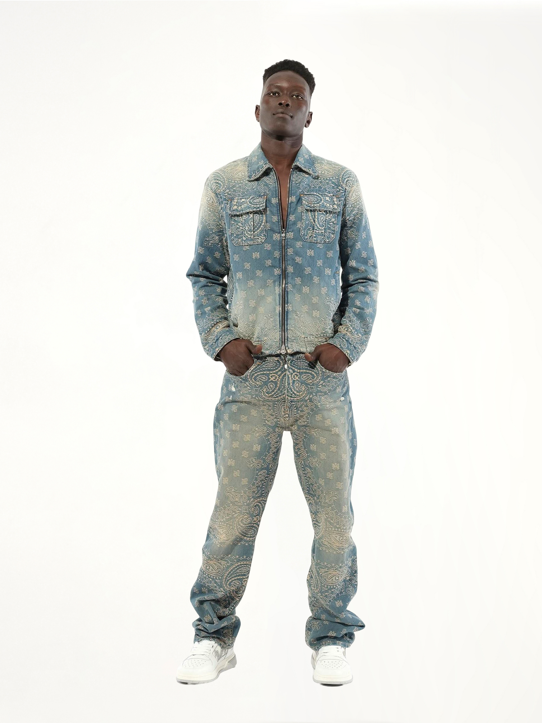 Bandana Jacquard Straight Jeans in Crafted Indigo